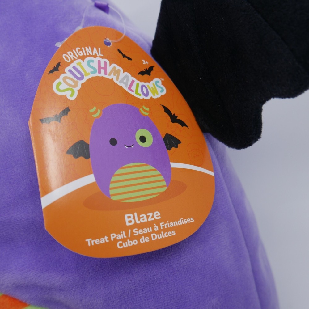 12” Blaze Bat Monster Treat Candy Pail Purple Squishmallow Halloween Plush Toy NEW