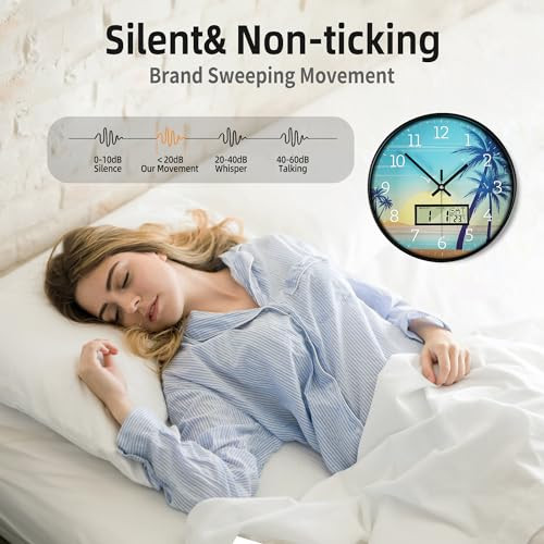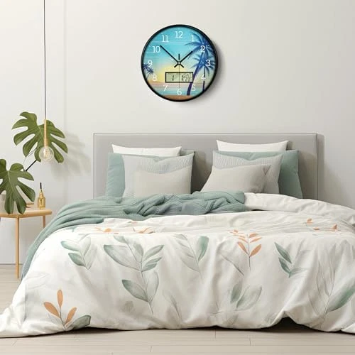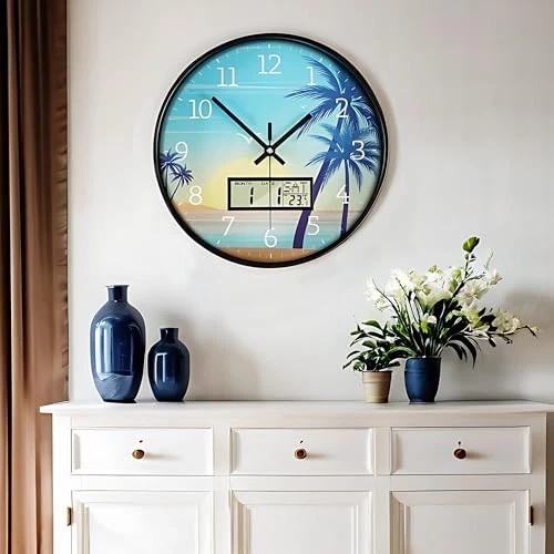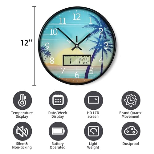 1. This sleek 12-inch wall clock is a game-changer! The silent movement is perfect for bedrooms, and the LCD display showing calendar and temperature is super handy. Love the modern design—it fits beautifully in my living room. Easy to read, battery-operated, and looks way more expensive than it is. Definitely recommend for anyone wanting both style and function!