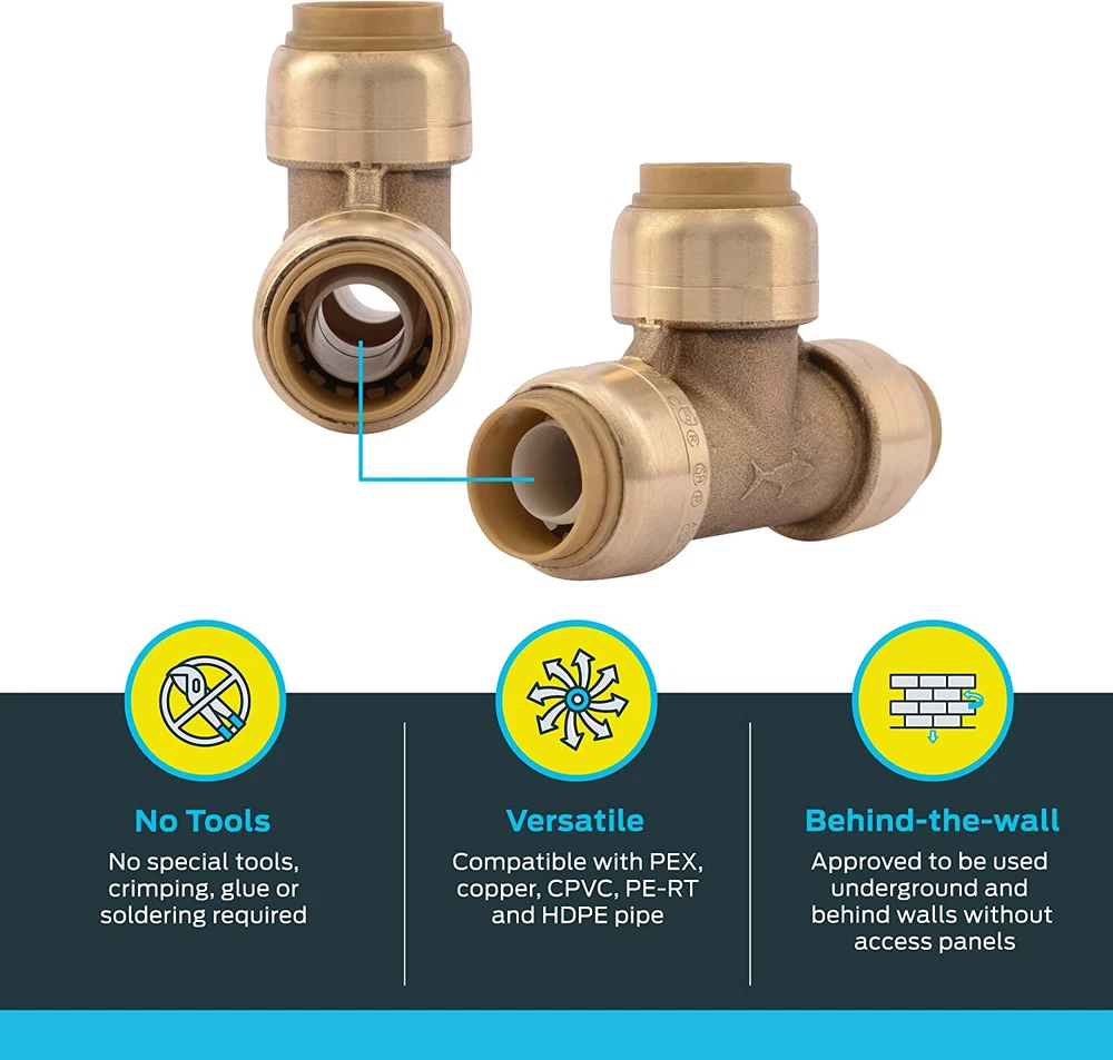 Store New Arrivals Add to Favorite View Feedback Contact 1/2 Inch Tee, Push to Connect Brass Plumbing Fitting, PEX Pipe, Copper, CPVC, PE-RT, HDPE, U362LFA Description Item model number 1/2 in. Warranty Description Lifetime Batteries Included? No Measurement System inch Number of Pieces 1 Batteries Required? No Material Brass Thread Type DZR Is Discontinued By Manufacturer No Item Package Quantity 1 Item dimensions L x W x H 3.5 x 2.1 x 1 inches Connector Type Union Item Weight 27.22 g Exterior Finish Brass Part Number U362LFA Certification NSF 61 Color Brass Global Trade Identification Number 00697285465978 Shape tee Included Components Brass Push to Connect Tee Product Dimensions 3.5 x 2.1 x 1 inches Size 1/2 in. BRASS TEE: Tee Fitting features innovative push-to-connect design makes for quick and easy installation when joining same-size pipe; ideal for use in tight spaces VERSATILE: Tee coupling is compatible with PEX, copper, CPVC, PE-RT and SDR-9 HDPE pipe; approved for underground and behind-the-wall applications with no access panels (Wrapping required when burying underground) **Requires a stiffener when conencting to PEX pipe (Sold separately) EASY TO INSTALL: SharkBite plumbing fittings do not require any soldering, glue, or crimping for installation; can be installed in wet lines LEAD FREE: Tees are composed of durable lead free DZR brass CERTIFIED: Tee connectors are rated for 200 degrees F (93 degrees C) Product Description Easily connect same-size pipe in seconds using the SharkBite Push-To-Connect Tee Pipe Connector. SharkBite plumbing fittings provide the easiest way to join copper, CPVC, HDPE, or PEX pipe in any combination. With no soldering, clamps, or glue required, it's as simple as inserting your pipe into the fitting. This SharkBite plumbing fitting is designed for potable water and radiant heating applications (including underground and behind-the-wall applications). The tee connectors requires a stiffener (sold separately) when connecting to PEX pipe. SharkBite tees are composed of lead free DZR brass, and are rated for 200 degrees F (93 degrees C). From the Manufacturer SharkBite is the push-fit connection system that's really taking hold. It's the easiest way to join copper, CPVC or PEX pipe in any combination - with no soldering, clamps, unions or glue. Just insert the pipe and the stainless steel teeth bite down and grip tight, while a specially formulated O-ring compresses to create a perfect seal. Disassembly is just as fast using the simple disconnect tool. So fittings and valves can be easily changed and reused. They can even be rotated after assembly for easier installation in tight spaces. Get SharkBite, and get a grip on your next plumbing project. These fittings are lead free and meet all requirements for plumbing in California and Vermont. ABOUT US We offer the best prices around on high quality products. Our E-store includes media such as books, movies, music and games while offering electronics, toys, sporting apparel, clothing, tools, general home, garden items and more. SHIPPING We are always working hard to ensure your package arrives as soon as possible. Please understand that some factors like weather, high postal traffic, and the performance of shipping companies are outside of our control. We offer free shipping to the lower 48 states and ship within 2 business days of payment, usually sooner. We do not accept P.O. Boxes. Please provide a physical address. For shipping outside of the continental USA, we only use eBay's Global Shipping Program.The item is shipped to KY and then sent to the rest of the world. International customers are responsible for all duties and taxes. Continue to check out in order to calculate costs for shipping the item to your country. Messages regarding eBay's Global Shipping Program MUST be directed at eBay EXCLUSIVELY. RETURNS We offer a 30-Day Return Policy on items which you are not completely satisfied with. You have the option for a full-refund or an exchange of the item. No returns are available on items shipped outside of the USA. PAYMENT We accept PayPal. CONTACT US This page content is yet to come Please ad us to your favorite seller and visit again later Thank You CUSTOMER SATISFACTION We try our very best to make sure every customer is completely satisfied. If there's a problem, message us! We're happy to help. WE ACCEPT Copyright © 2021 AutoDS. | All Rights Reserved
