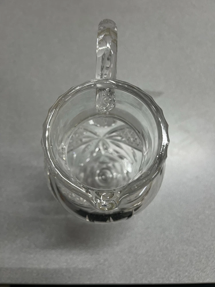 Backstamp:n/aProduction Style:Hand CutMaterial:CrystalProduct Line:ViolettaModel:Mini Pitcher ( Syrup Pitcher ? )Number of Items in Set:1Finish:GlossyType of Glass:24% Lead CrystalOriginal/Licensed Reproduction:OriginalBrand:ViolettaTheme:ElegancePattern:PinwheelCountry of Origin:PolandVintage:YesType:PitcherColor:Crystal Clear