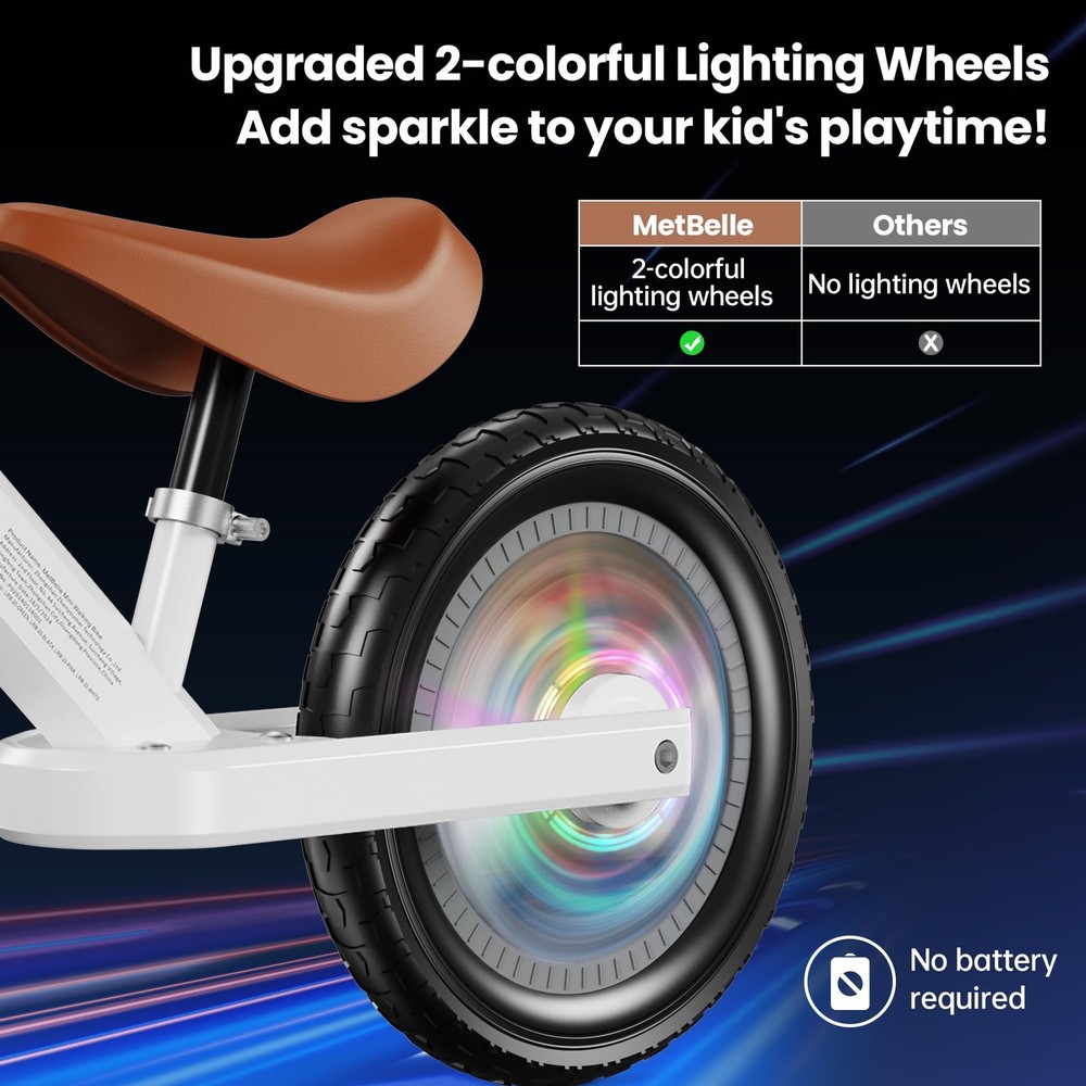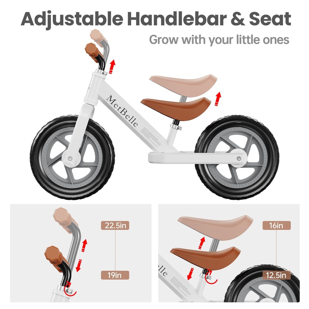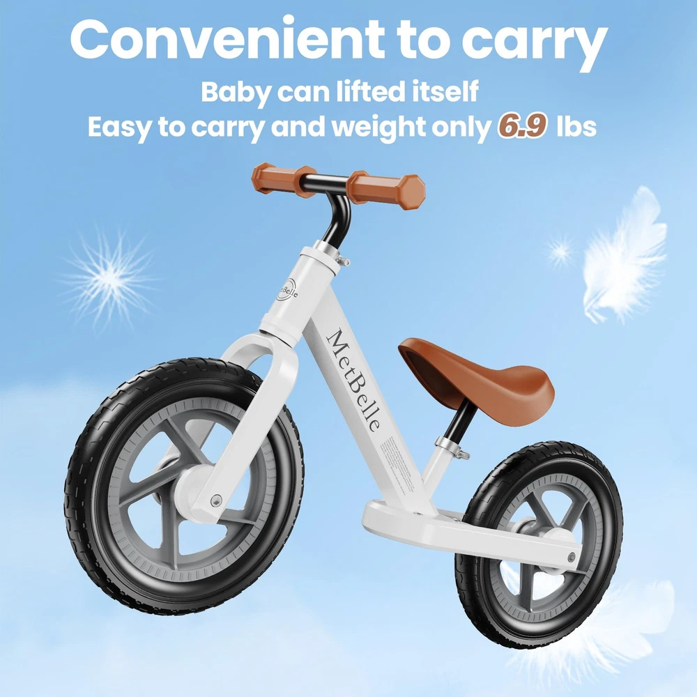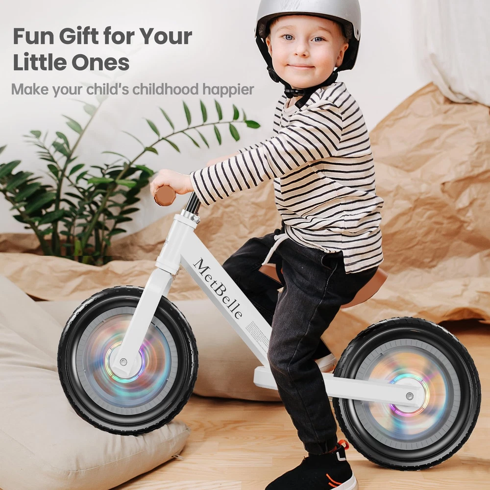 **Why Parents Choose Us?** Every child deserves a safe first ride! Our 4-wheel balance bike eliminates the fear of falling, transforming "learn to ride bike no pedals" into joyful play. Perfect for backyard exploration or indoor playrooms! **Key Features:** - **Indoor/Outdoor Ready**: Non-marking EVA wheels protect floors and glide on pavement. - **Designed for Growth**: Adjustable seat grows with your child (2-5 yrs), skipping training wheels! - **Gift-Ready**: Ships in premium gift box – surprise birthdays with the #1 balance bike for 4 year old girls & boys! Perfect 1st Birthday Gift & Toddler Essential: Designed as the ultimate one year old boy birthday gift! This balance bike builds confidence for 18mo+ toddlers, making it a top-rated 1st birthday gifts boy and toddler balance bike choice. Real Bike Feel with 2-Wheel Design: Unlike bulky 4-wheel bikes, our lightweight baby bike mimics a real bicycle! Develops true balance & coordination for seamless transition to pedal bikes – ideal for active balance bike 2 year old riders. Tool-Free Height Adjustment (No Tools!): Grow with your child! Adjust seat height in seconds (12"-16") to fit ages 1-5. The only toddler bike that adapts as they grow – perfect from first steps to confident cruising. Lightweight and Durable Frame: Weighing just 7.7 lbs, this toddler balance bike is light enough for little ones to maneuver easily while also being durable enough to withstand both indoor and outdoor play. Non-slip EVA wheels provide stable riding on any surface. Safety-First & Parent-Approved: Limited 135° steering, non-slip grips + airless tires prevent wipeouts. Certified non-toxic materials make it the safest baby bike for indoor/outdoor adventures. Why Choose a Balance Bike? Balance bikes teach children the fundamentals of balance and steering faster than traditional training wheels, giving your child the skills needed to transition to a pedal bike with ease. Ideal for both boys and girls, this bike promotes confidence and independence. Perfect Birthday Gift for 2-5-Year-Old Boys & Girls: Not just a toy, this toddler bike is a developmental tool, helping improve balance, coordination, and leg strength. It’s an excellent gift for a 2-5-year-old’s birthday and provides hours of active, healthy fun while supporting physical growth.