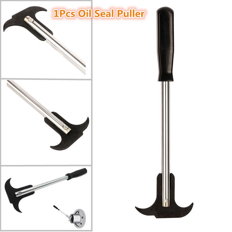 Professional Seal Puller Features : Removes oil and grease seals in no time! Black oxide finish to resist corrosion. Easy to use without scoring surfaces. Two size tips, reaches most seal applications. Length: Approx. 295mm (12'') How to Use : Jack-up vehicle on jack stands. Remove dust up cap, cotter key and nuts from axle. Remove bearings and wheel assembly. Insert tip of puller behind the oil or grease seal. Press and pull to remove. Package include : 1x Seal Puller Tool (Due to different product batches, please allow a little differences)