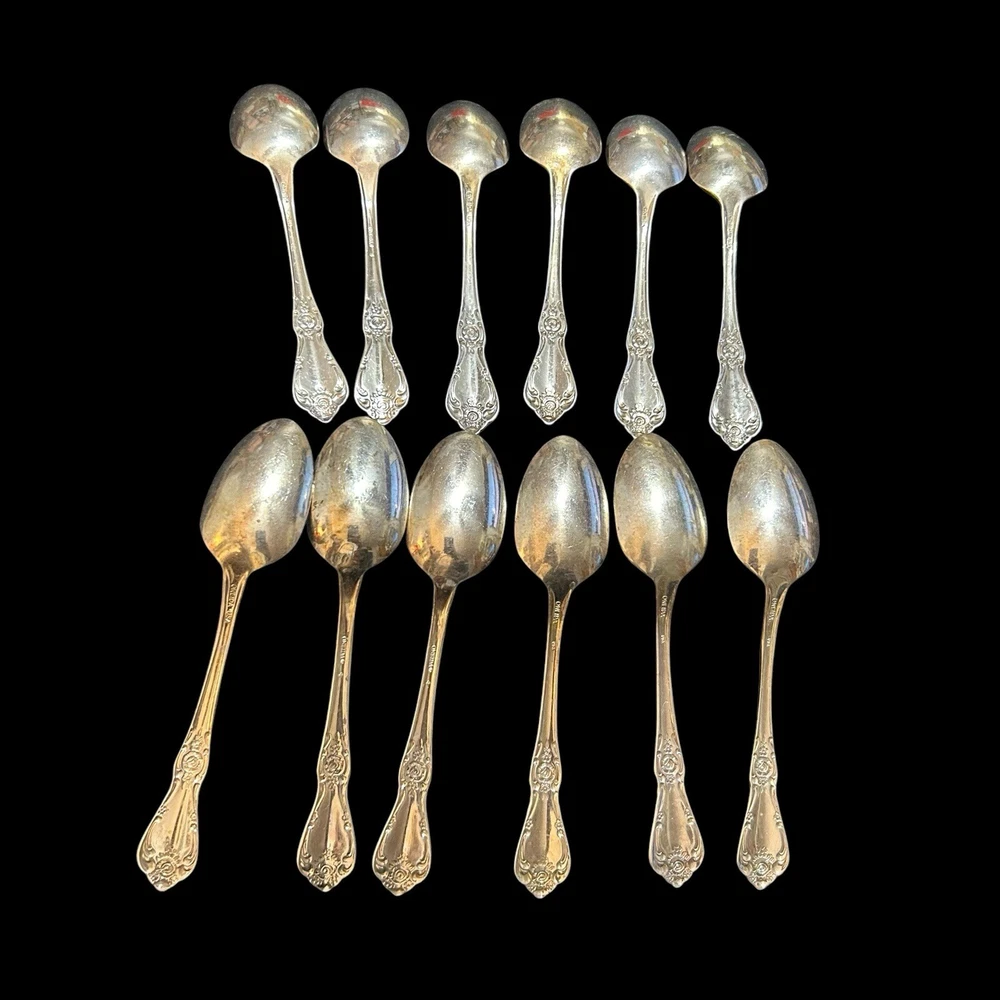 12 Oneida Rogers Francesca Vanessa Teaspoons 6” Dessert Spoons Silver Plate 1965 Good used condition. Normal signs of wear and tear. Minor scuffs and scratches, and discolorations. Please study pictures carefully before purchasing Feel free to ask us any questions. Thank you for visiting our store! Bag33A