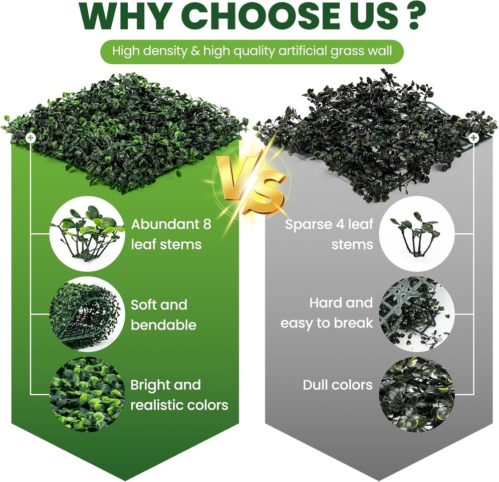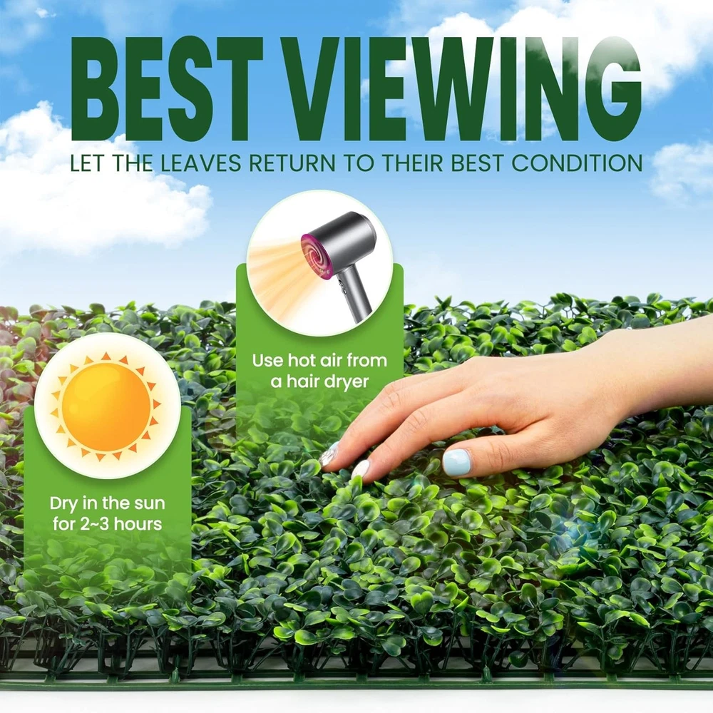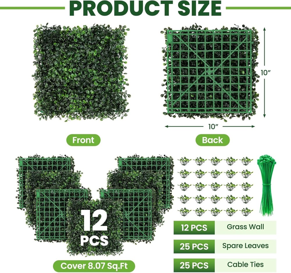Package Include: Comes with 12 piece 10’’ x 10’’ grass wall panels, 25 spare leaves, 1 customer manual, 25 zip ties. With rich package content, you can easy to install the artificial boxwood hedge and enjoy your greenery wall decoration. Friendly Size & Easy installation:The size design of this artificial grass backdrop with 10*10 inches is very friendly, which will make it more convenient to install by interlocking connectors or zip ties(included) . Although the size is small, you can also join them together to make a larger size. Can be spliced or disassembled freely, can be adjusted at will according to your own needs, fit and shape to any space! Happylistings Grass Wall 12 Pack 10"X10" Artificial Boxwood Hedge Wall Panels Privacy Hedge Screen Faux Boxwood For Outdoorindoorgardenfencebackyardgreenery Walls Package Include: Comes with 12 piece 10’’ x 10’’ grass wall panels, 25 spare leaves, 1 customer manual, 25 zip ties. With rich package content, you can easy to install the artificial boxwood hedge and enjoy your greenery wall decoration. Friendly Size & Easy installation:The size design of this artificial grass backdrop with 10*10 inches is very friendly, which will make it more convenient to install by interlocking connectors or zip ties(included) . Although the size is small, you can also join them together to make a larger size. Can be spliced or disassembled freely, can be adjusted at will according to your own needs, fit and shape to any space! Multiple Usage Grass Wall: Faux plant wall can be used to decorate outdoor areas or the interior of the room, for greenery wall background, and other places like balcony, living room, office work area; Outdoor applications for a patio privacy screen, use in porch, fencing, yard, walkways, etc.. A prefect decoration of wall greenery decor. Panels Material: Durability lightweight and nontoxic. Artificial boxwood hedge plants are made of new PE, which is weather resistant, low-maintenance. It has UV protection and will not fade due to outdoor use, suit for indoor and outdoor applications. Warm tips: When you open the package, find the leaves is slight deformation, you only need to sweep the leaves on the surface by your hand or shake the panels for a while, and then the Boxwood Panels can be restored to its original state. We provide 25 spare leaves for installation when the leaves fall or become sparse. The artificial grass panel are dyed with chemical dyes. It is normal that the leaves smell. Please leave it in a ventilated place to air out the smell for 2-3 days. Item Specifics Brand Unbranded Type Decorative Fences Color Green Size 10"X10" 12P Plant or Animal Product Type boxwood Color Green Material Polyethylene Indoor/Outdoor Usage Outdoor, Indoor Package Information Box Number of Items 12 Item Weight 2.98 Pounds Special Feature Lightweight, Weather Resistant, Tear Resistant Included Components 25 Pcs Spare leaves, 25 Pcs Zip Ties, 12 Pcs Grass Shape Rectangular Unit Count 12 Count Seasons All Product Dimensions 10 x 10 x 6 inches Item Weight 2.98 pounds Contact Us 1.Dear customers, we appreciate your business, our aim is to provide Top Level Customer Service,if you are satisfied with our service, please leave us a 5 star positive feedback . 2.If you have any question or concern about your eBay order, please feel free to let us know. We will try our best to reply all questions within 24 hours. However, no answer will be replied during weekends or holidays. Please allow up to 48 hours delay in receiving our response after long weekends or holidays. 3.Please via eBay Message for a solution for resolutions before leaving negative feedback, we strive to providing the greatest service and bringing the highest satisfaction to all of our customers. Shipping 1.We usually ship within 3-5 business days of receiving cleared payment., and we provide Free Shipping for most items. 2.Fast shipping is very important for us. We use multiple fulfilment warehouse around the United States. We only ship to the lower 48 States and do not ship to PO Boxes. 3.Please make sure the correct Ship-To address is entered before checking out. Once the payment is completed, you may not be able to change the shipping address. We shall not be held responsible for any wrong or undeliverable addresses. Returns 1.We provide 14 days return upon the buyer received the item. It must be in good condition and you will undertake the returned shipping cost. 2.We will offer replacement or refund for all DEFECTIVE items (not including damage resulting from accidents / abuse / misuse / improper care), but a photo is needed for our reference beforehand and should be reported to us within 7 days from purchase date. 3.All items are brand new and have been passed the quality check. All are packed in a good condition before item dispatch. Payment We accept PayPal payment,PayPal Credit,Credit card or debit card and so on. Payment should be completed within 4 (Four) days of auction closing. Or unpaid dispute will be filed for closing auction. We will leave a positive feedback immediately after payment is received. We appreciate a positive feedback as much as you do. If for some reason there is any issue with the purchase, please contact us prior to leaving feedback, we will be glad to work together and provide a satisfying solution. Happylistings DESCRIPTION PAYMENT SHIPPING RETURN POLICY CONTACT US Help & Info Payment Policy Shipping Policy Return Policy FAQ About Us Grass Wall 12 Pack 10"X10" Artificial Boxwood Hedge Wall Panels Privacy Hedge Screen Faux Boxwood For Outdoorindoorgardenfencebackyardgreenery Walls Package Include: Comes with 12 piece 10’’ x 10’’ grass wall panels, 25 spare leaves, 1 customer manual, 25 zip ties. With rich package content, you can easy to install the artificial boxwood hedge and enjoy your greenery wall decoration. Friendly Size & Easy installation:The size design of this artificial grass backdrop with 10*10 inches is very friendly,