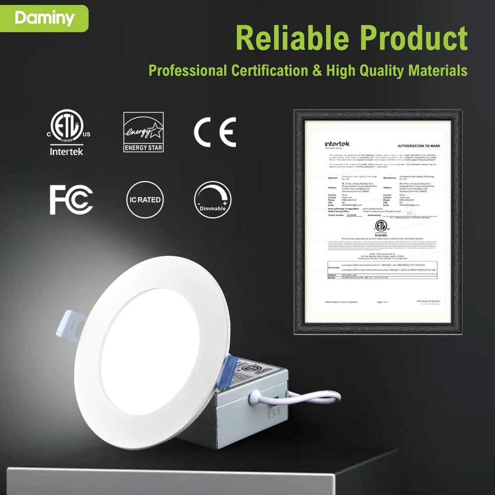 【5 CCT-in-1】recessed lighting 6 inch has five color temperature options (2700K/3000K/3500K/4000K/5000K) for different the application scenarios, wafer lights give you a unique home.Do not worry about what color temperature to buy, eliminates the hassle of returning or exchange products due to inappropriate color temperature. 【Easy Installation】The canless recessed lighting 6 inch is suitable for renovation and new decoration: a hole is cut in the ceiling with a 1:1 hole template; Connect the Jbox to the cable; Attach it to the ceiling with spring clips. Easy and efficient,recessed led lights installation can be completed in minutes. Suitable for all kinds of ceilings and joists, canless lamps will be your new choice. 【High Brightness】The canless recessed lights use the world's leading LED chips with higher lumens and lower power. recessed lighting led 1080LM consumes 12 watts of power, equivalent to 110W of incandescent lamps, saving you up to 92% of energy costs. 【Dimmable】6inch recessed led lights has 5%-100% smooth dimming, compatible with most dimmers, moisture-proof and heat-resistant, wide brightness adjustment to meet the needs of various space use, living room, bedroom, bathroom, kitchen, workplace, outdoor soft eaves, etc., led recessed light dimmable lights up your life. 【IC Rating】 led recessed lighting 6 inch are IC rated and ETL certified, have passed strict safety certification, and are suitable for a wide range of ceiling and joist mounting lights without fire risk, so you can use them without worry.5-Year Warranty is our confidence in led recessed light.