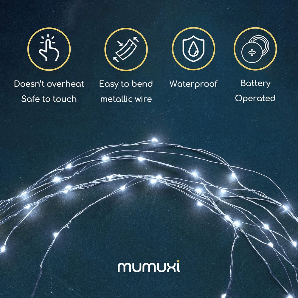 Light up your home - The 12-pack of 7.2ft mini fairy lights is a pretty addition to any home, bringing cozy and warm vibes. Add a string of 20 cool white fairy lights to a mason jar to create a lantern or a magical centerpiece table decoration for a wedding or any other party. Durable Material & Easy to bend - Our battery lights are made of high-quality strong silver wire and LED bulbs that can last up to 20 years or more! That’s a whole lot of light to brighten up your space! Place these easily indoors and bend them to your liking, and shape them around plants, furniture and walls. These small string lights come with long-life batteries as well and the fairy bulbs are made with vibrant LED lights. Easy To Use & Safe To Touch - Each of our products is high quality at and this is no exception. Save time and effort with replaceable batteries and a tiny on/off switch to turn them on for parties and switch 'em off when everyone leaves. Incredibly low voltage makes these battery fairy lights super safe in your home or place of work and carries no risks. Highly Efficient Long Lasting Batteries & Easy to Use - With the included batteries, you can supply these fairy lights to stay lit for over 72 hours! With an easy way to turn them on or off by pressing the button, these fairy lights are the perfect way to quickly change your environment from cold to cozy. Comes with a small and easy-to-hide battery box. Take them Indoors or Outdoors - Enjoy these beautiful glowing mini Christmas lights inside your bedroom or outdoors on your patio, or balcony. A waterproof and portable option so you can take it with you to your next event. Gift these to your family and friends to appeal to anyone who wants to spruce up their surroundings.