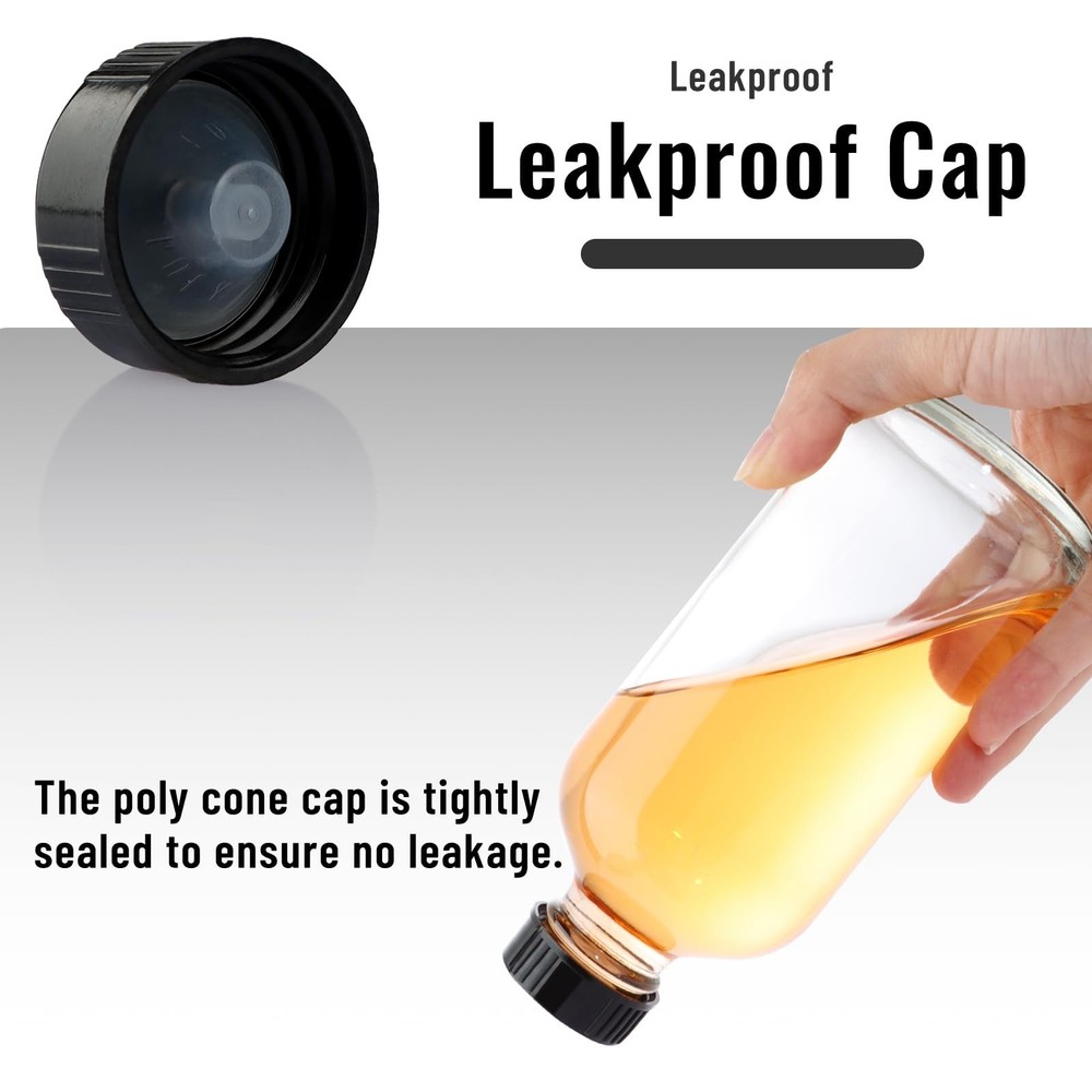 12 Pack 8 oz Clear Glass Bottles, 240ml Boston Round Sample Bottles with Black Poly Cone Caps, Labels and Funnels Product Details Color: Clear Brand: PINIWON MPN: Does not apply UPC: Does not apply EAN: Does not apply Brand: PINIWON Material: Glass Bottle Type: Boston Round Bottles Color: Clear Capacity: 8 ounces Brand: PINIWON Material: Glass Bottle Type: Boston Round Bottles Color: Clear Capacity: 8 ounces Special Feature: Leak Proof Product Dimensions: 2.4"W x 5.43"H Product Care Instructions: Hand Wash Only Number of Items: 12 Reusability: Reusable Shape: Round Finish Type: Sealed Unit Count: 12.0 Count Package Information: Boston Round Bottles Item Weight: 2.29 Kilograms Item Weight: 5.04 pounds Finish: Sealed Special Features: Leak Proof Batteries Required?: No Date First Available: April 7, 2024 What's Included: 12 Pack 8oz (240ml) Clear Boston Round Bottles with 14 black poly cone caps, bonus 2 plastic funnels and 20 pcs labels. Quality Material: These bottles are made of strong thick clear glass, BPA-free, durable and reusable. The high transparency wall allows you to identify the liquid easily. Airtight Sealed Caps: The black plastic screw cap is tightly sealed with the bottle mouth to ensure no leakage, prevents air from entering and makes the liquids not easy to deteriorate, keeping your liquids stay fresh and safe. Multiple Uses: Perfectly designed for bottling homemade vanilla extract, essential oils, perfume oils, tinctures, alcohol, syrups, flavorings, juices, beverages, herbal extracts, chemistry lab chemicals, and more. Ideal Travel Bottles: With its portable size, you can carry any liquid you want with this bottle, conveniently fits in your bag. They are packaged carefully with a foam barrier to reduce damage, if they still get broken, please feel free to contact us.