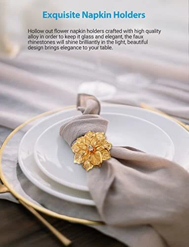 URWOOW 12 Pack Flower Napkin Rings Holders Clear Rhinestone Décor Dinner Party Wedding Christmas Gathering -Dress up your cloth napkins and your table with flower napkin rings. Tastefully traditional napkin ring crafted in alloy with gold finishing and charming Rhinestone brings elegant shine to table settings. -Turn any meal into a dinner party with our flower napkin ring that bling bling in the candlelight. Flower in hallow out design adds the perfect finishing touch to a thoughtfully set table. -Wonderful decors to dinner tables: pretty table napkin rings will dress your table top up for a formal affair or down for a casual gathering, add the finishing touch to complement your place settings -These napkin rings are perfect for different occasions such as Weddings, Parties, Picnics, Holidays, Thanksgiving, New Year, Christmas, Receptions, etc. -Product dimension: 2” X 2” X 2” (L X W X H) SHIPPING Domestic Buyers - We ship within 3 business days of payment, usually sooner - We offer FREE shipping on all orders! - We only ship to the lower 48 states, no APO/FPO addresses or PO Boxes allowed - We have confidence in our products, but if you are not fully satisfied please contact us within 30 days of purchase and you will get full refund. International buyers – please note: Import duties, taxes, and charges aren't included in the item price or postage cost. These charges are the buyer's responsibility. - Please check with your country's customs office to determine what these additional costs will be prior to bidding or buying. * Order Cancellation Policy ** You can return a product for up to 30 days from the date you purchased it. 1. The seller reserves the right to cancel the special case only due to eBay cancellation fee. 2. The decision of seller is the final. 3. The seller will respond to the cancellation request within 2 business days. Please wait for the result of cancellation. 4. In case the cancellation is not completed by some reasons, the buyer can follow the options below to get the refund. 4.1 The buyer can reject the item when it arrives. 4.2 The buyer can send the item back to the seller within 30 days If the buyer receives item (USA Shipment ONLY). The seller will provide the FREE return label to the buyer when the buyer opens " Return Item" case on eBay by using the reason as "Change my mind" ONLY. 5. When buyer has placed the order. The order will be processed and completed by automatic warehouse system within 5 minutes. In case that buyer sends the cancellation request after 5 minutes of placing the order, the request will be rejected. **Sending direct message to cancel the order is not allowed for every case.* Return Policy For the return case - If buyer would like to return the items for refund or replacement, please CONTACT SELLER to receive the free return label from seller. The refund or replacement will be processed with the tracking number of return label which is provided by seller only. The other ways of return which are not approved by seller will not be processed for the refund or replacement.