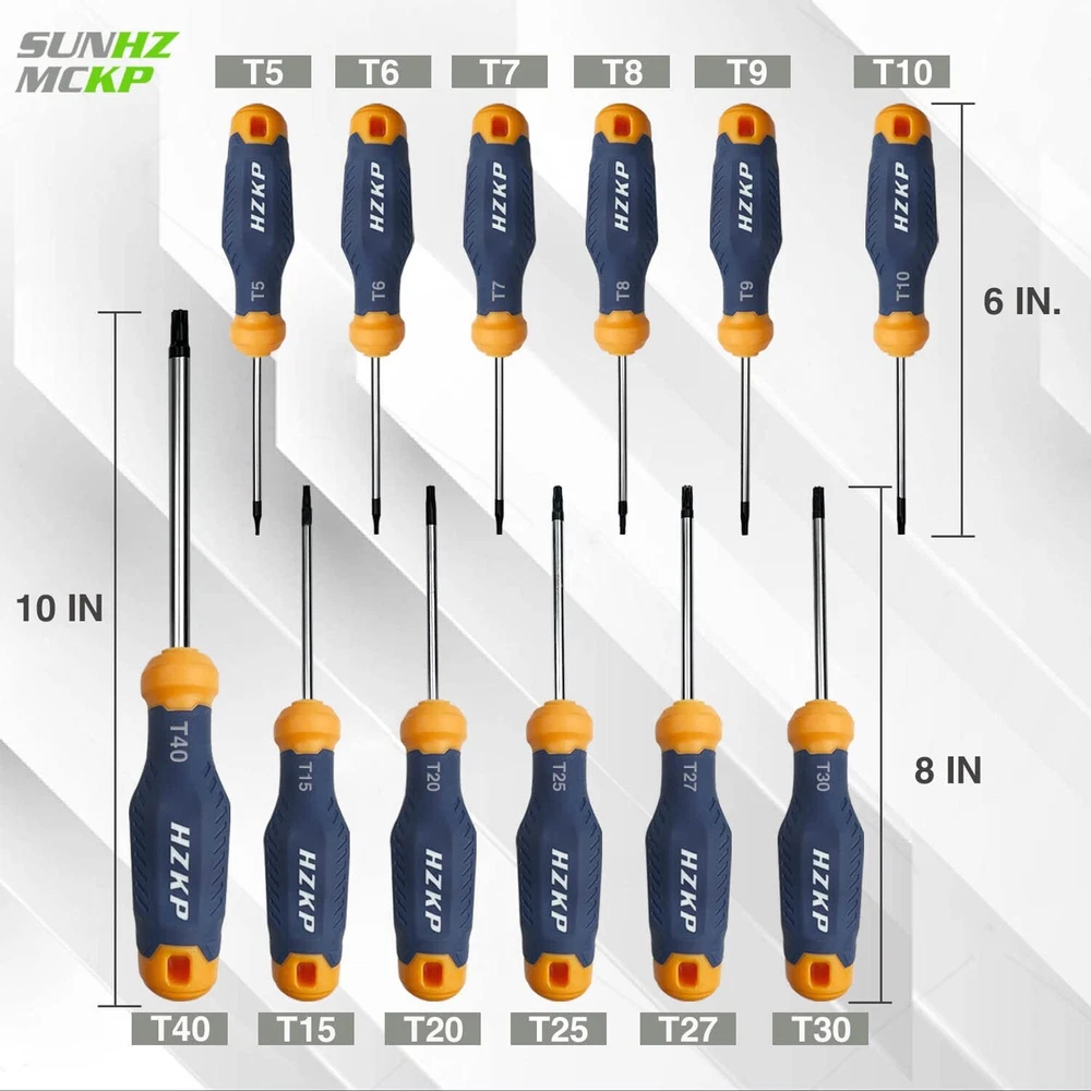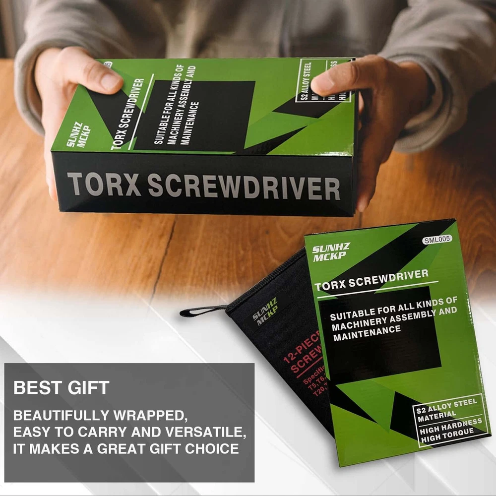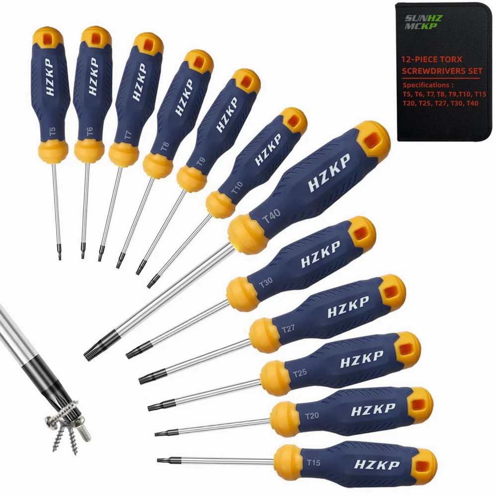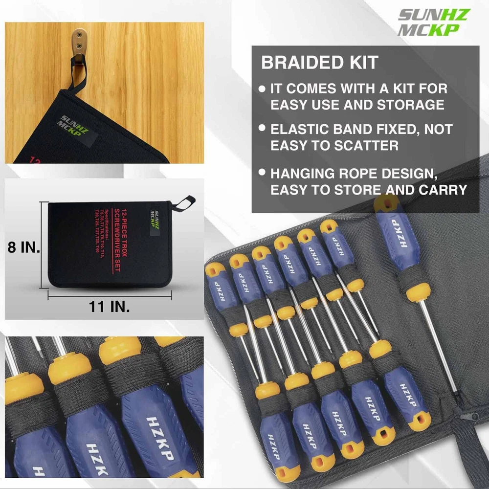 12 Pcs Magnetic Torx Screwdriver Set, T5 -T40 Star Screwdrivers Ergonomic Handle MULTI-PURPOSE SIZE: Well made torx security screwdriver set, including T5, T6, T7, T8, T9, T10, T15, T20, T25, T27, T30, T40 torx driver(lengths between 6" and 8"). The 12pc screwdrivers in the set have you covered for anything from small Torx screws found in repairs electronics to large Torx fasteners in repairs vehicles, are capable of meeting your various needs. MAGNETIC SCREWDRIVER: Torx screwdrivers made of top material S2 steel. All of the tips are magnetized which could conveniently attracts screws. The phosphate-coated tips protects against rust, help ensure a tight grip on fasteners to prevent damage to both the fastener and the tool head. TORX SCREWDRIVER WITH HOLE: The hole in the center in each star driver screwdriver bit causes it to be tamper resistance, perfectly matched to most standard tamper-resistant German-made star 6-point screws. Tamper proof torx screwdriver set sizes are: T10, T15, T20, T25, T27, T30, T40 NON-SLIP HANDLE: The star screwdriver ergonomic handle design helps reduces muscle aches in your hand and wrist when working for long periods of time. The durable TPR material provides a strong rubbery grip easy to grip well, while being chemical-resistant and wear-resistant. Hanging hole design, convenient storage, SCREW DRIVERS TOOL SET: Our professional screwdriver kit comes in a convenient carrying case to help keep all torx driver star screwdrivers neatly organized, well-organized set. The exquisite gift box makes it an excellent gift for your dad, mom, and friends. Shipping The shipping time might be shorter than what apears beacause the Delivery dates already include possible delays . We are always working hard to ensure your package arrives as soon as possible. Please understand that some factors like weather, high postal traffic, and the performance of shipping companies are outside of our control. We offer free shipping to the lower 48 states and ship within 3 business days of payment , usually sooner. We do not accept P.O. Boxes. Please provide a physical address. For shipping outside of the continental USA, we only use eBay's Global Shipping Program.The item is shipped to KY and then sent to the rest of the world. International customers are responsible for all duties and taxes. Continue to check out in order to calculate costs for shipping the item to your country. Messages regarding eBay's Global Shipping Program MUST be directed at eBay EXCLUSIVELY. Return We offer a 30-Day Return Policy on items which you are not completely satisfied with. You have the option for a full-refund. No returns are available on items shipped outside of the USA. Payment We accept payment by multple methods such as: PayPal, Google Pay, VISA, Mastercard, American Express and Discover . Please pay as soon as possible after winning an auction, as that will allow us to post your item to you sooner! Feedback Customer satisfaction is very important to us. If you have any problem with your order, please contact us and we will do our best to make you satisfied. Contact Us If you have any queries, please contact us via ebay. We usually respond within 24 hours on weekdays. Please visit our eBay store to check out other items for sale! Thank you for shopping at our store.