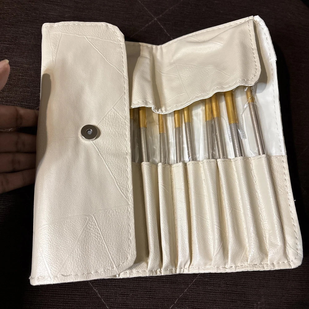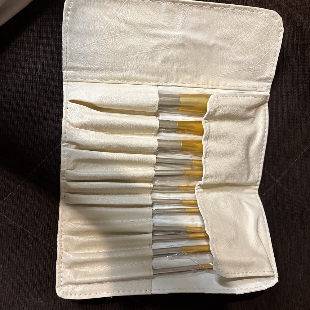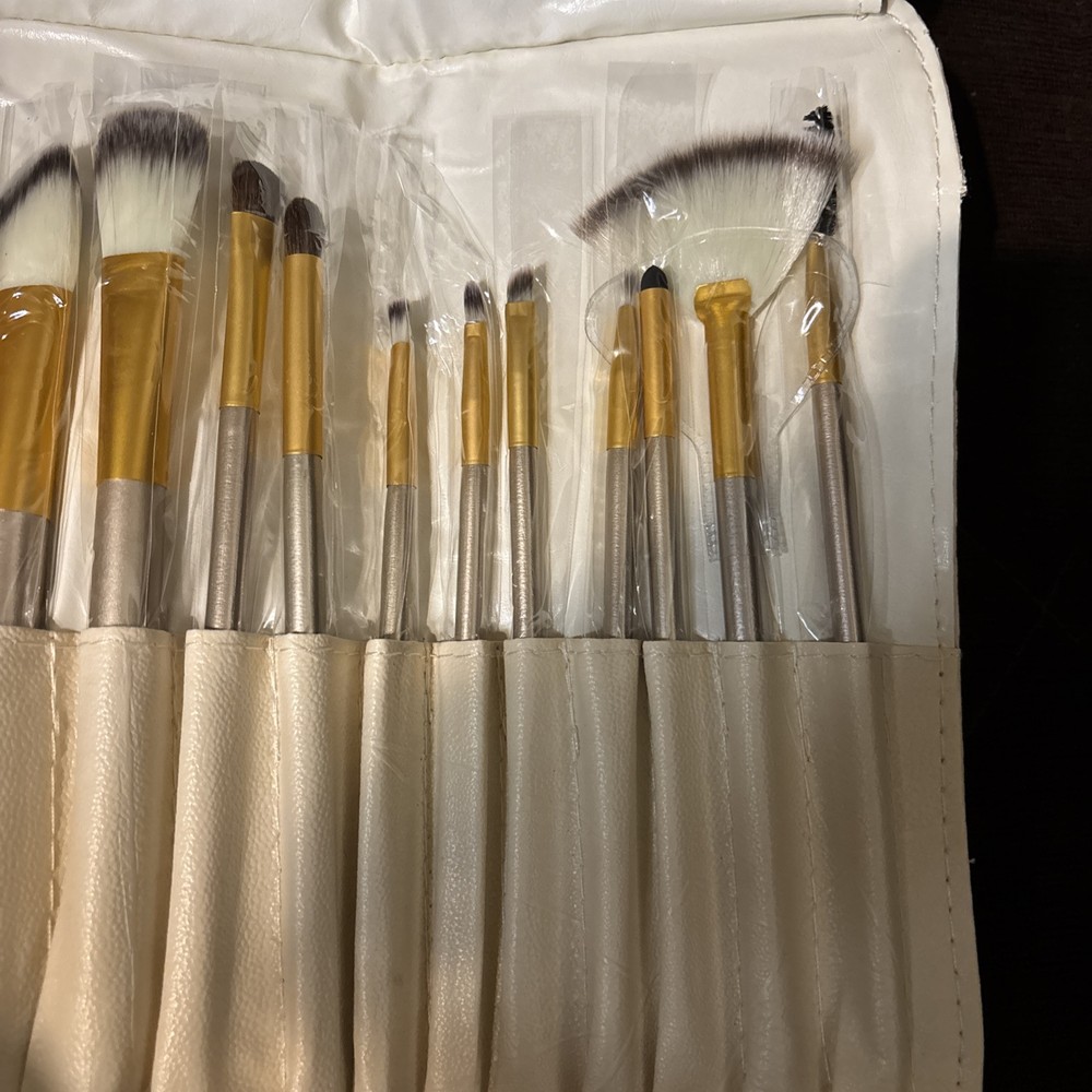 12 Piece Brand NEW OptiTurn LP Makeup Brushes w/ White Leather-like Case.