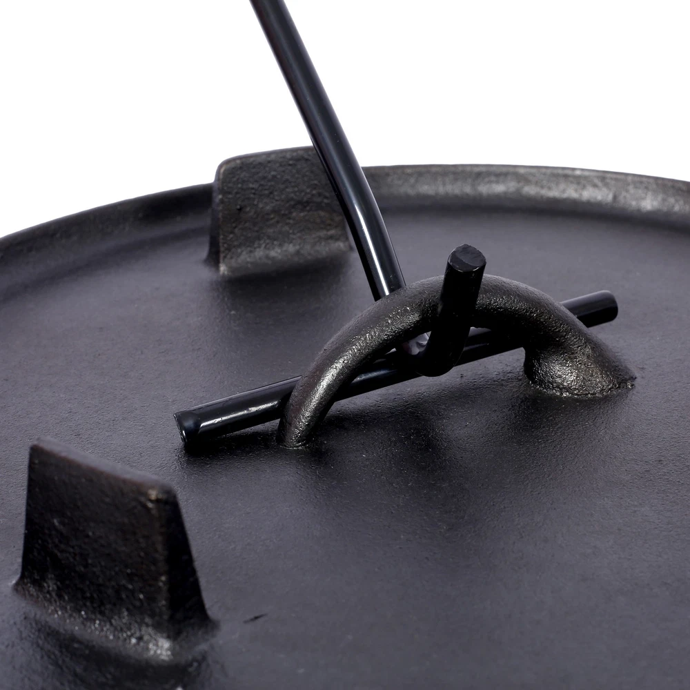 12 Quart Pre-Seasoned Cast Iron Dutch Oven wSkillet Lid,Outdoor Camping Deep Pot Features Crafted to endure the harshest of outdoor conditions, this is a camping essential. Whether you're simmering a hearty stew over an open campfire, baking a delicious cobbler in hot coals, or slow-cooking a savory meal during your wilderness escapades, this Dutch oven's excellent heat retention and even distribution ensure culinary success every time. It's the ultimate companion for creating unforgettable camping feasts. The Dutch oven's ingeniously designed lid is a true marvel of functionality. Fitted with sturdy legs, it seamlessly transforms into a skillet or griddle, unlocking a whole new realm of culinary possibilities during your camping trips. Whether you're craving crispy bacon for breakfast, searing succulent steaks for dinner, or flipping fluffy pancakes under the open sky, this dual - purpose lid has you covered. Designed with convenience at its core, this cast iron Dutch oven features a robust built-in carrying handle, enabling you to effortlessly tote it from your vehicle to the campsite. Moreover, the oven can be securely suspended from a tripod stand on level surfaces, providing you with unparalleled flexibility in your cooking setup. With its seamless combination of portability and adaptability, this Dutch oven is the ultimate companion for any outdoor cooking enthusiast. Your well-being and convenience are our top priorities. That's why we include a specialized dutch oven lid lifter, engineered to ensure a secure and hassle - free experience when handling hot lids. This essential accessory minimizes the risk of burns and accidental spills, allowing you to confidently maneuver the lid while cooking. It's a thoughtful addition that enhances your outdoor cooking adventure, giving you peace of mind with every use.