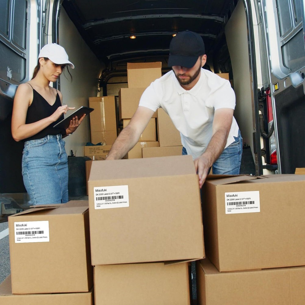 Specifications: 9.84 x 6.7 x 5.11 inches Labels replacement for DK-2205 labels, 12 Rolls white die-cut standard address labels with 1 refillable cartridge, 100 ft per roll, 12 Rolls per Case, total 1200ft. Compatible: Works with all QL Label Printers, including but not limited to QL 500, QL 550, QL 570, QL 570VM, QL 580N, QL 650TD, QL 700, QL 710W, QL 720NW, QL 800, QL 800W, QL 810W, QL 820NWB, QL 1050, QL 1050N, QL 1060N, QL 1110NWB. Multipurpose: Perfect for bar-code labels, UPC labels, address labels, return address labels, postage labels, file folders, and product identification for home, office, warehouse, and supermarket. Widely used on packages, envelopes, mails, letters, parcels, signs, and temporary name tags. Product Quality: Smudge-Free, Scratch-Free, and Fade-Resistant, preventing time-consuming printer issues. Produces darker and sharper postage labels easily. Smooth and tidy rolls enable smooth printer operation. Product dimensions: 9.84 x 6.7 x 5.11 inches.