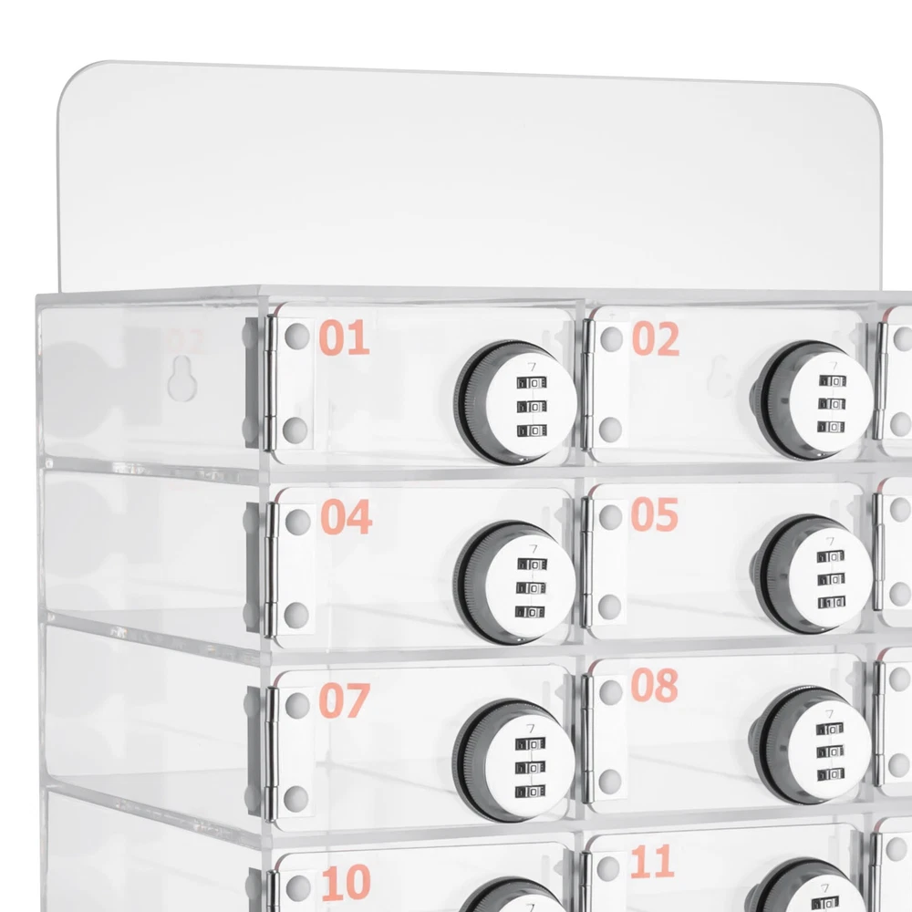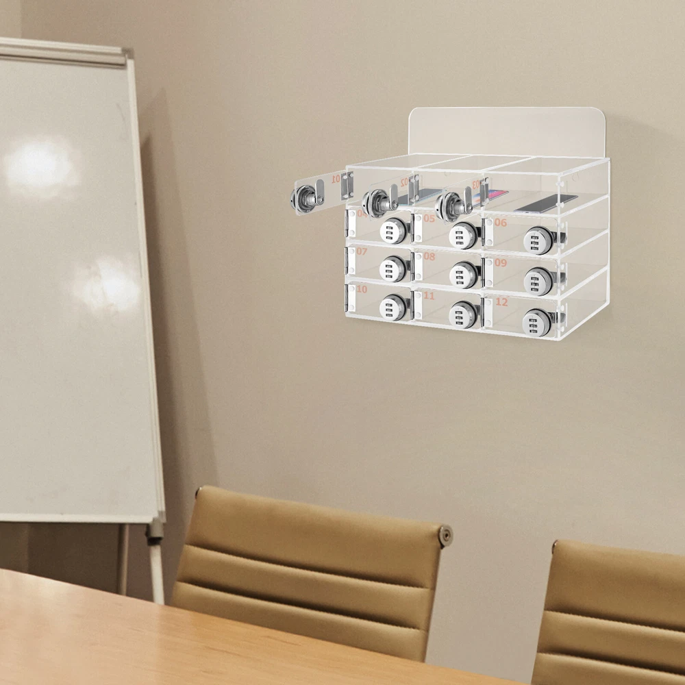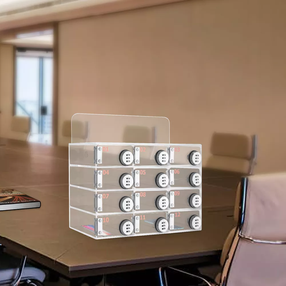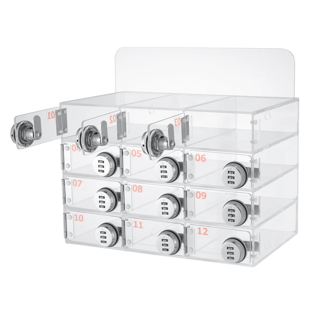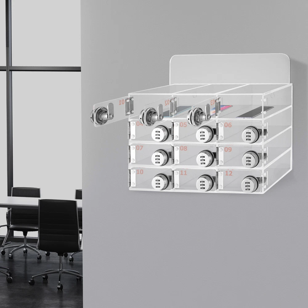 12 Slots Cell Phone Locker Box Transparent Acrylic Storage Box W/Locks TOP Description In this digital age, our mobile phones are not only a communication tool for everyone, but also a personal asset. That's why this mobile phone locker is designed to protect your favorite phone. It offers password protection, so you can rest assured that your mobile phone is safe and secure from theft and accidental damage. Its large-capacity design not only stores your mobile phone properly but also organizes keys, headphones, and other small items, keeping the space in order. Give your mobile phone a five-star home by choosing our mobile phone locker. Key Features Build to Last: The product is made of high-quality acrylic, using polishing technology, with high strength, wear resistance , and long service life. Safe and Secure: The three-digit combination lock has 1000 different combinations, providing a high level of confidentiality, keeping your mobile phone safe at all times, and also avoiding the hassle of carrying or losing your keys all the time. Large Capacity: Each of the 12 compartments measuring 1.97*3.94*7.09 inch es can not only store multiple mobile phones, but also keys, cards and other small items. It is suitable for storing 99% of mobile phone models on the market. Thoughtful Design: Each storage compartment has its number identification (1-12), allowing you to quickly pinpoint the location of your mobile phone. The clear body of the box makes it easy for you to observe the condition of your mobile phone and other items, avoiding accidents such as accidental taking. Productive Environment: With our mobile phone locker for storing mobile phones and wallets, you can stop letting your mobile phone cause a distraction during classes, meetings or sports, allowing your team to focus and create a productive environment. Easy Installation: Upon receipt, you do not need to assemble it to use it. The pre-drilled holes on the back of the product and the provided screws allow you to mount this product on the wall for your different needs. Easy to Clean: The smooth surface and simple structure allow you to easily clean it with a towel. Space-saving: I t has a small footprint (12.32*7.28* 8.7 inches) and can be placed on the desk without delaying the rest of your work. Customer Service: We aim to provide high-quality products and services. If you have any questions, please feel free to contact us. We will reply as soon as possible and solve the problem for you. Details Top Board: It gives you extra space to post reminder signs and more. Rectangular Base: It enables the product to stand steadily on the desktop. Application This product is ideal for use in classrooms, exam rooms, gyms, conference rooms, factories, labs, libraries, and more. How to Change a Password 1. Open the door and change the password to the initial password: 000 2. If the code is correct, press the metal (not included) against the right side of the lock hole. 3. Hold the right lock hole with metal while turning the numbers to the code you need. 4. After the password is changed, release the metal on the right side of the lock hole, and you are done. Specifications Style: Modern Shape: Rectangular Color: Clear Material: Acrylic Surface Treatment: Polishing Mount Type: Wall Mount, Tabletop Assembly Required: No Thickness: 3.5 mm/0.14 in Number of Compartments: 12 Lock Type: Combination Lock Weight: 3.4kg/ 7.49 lbs Net Weight: 3kg/ 6.61 lbs Product Size: 31.3*18.5*22.1 cm/12.32*7.28* 8.7 inch Each Compartment Size: 5*10*18cm/1.97*3.94*7.09 inch Package Size: 39*26*30cm/ 15.35*10.24* 11.81 in Package Included 1* Mobile Phone Locker Other Accessories Required for Installation Notes Please keep in mind your unlock code and storage location. Please note this product does not include other items. Please pay attention to the size before purchasing. Please allow the slight color difference caused by the shooting light and 1-3cm error due to manual measurement, and make sure you do not mind before you order. Payment Delivery details Terms of sales About us Contact us Payment We accept ebay payment 。 Fees such as import duties, taxes are not included in the item price or shipping costs. These charges are the buyer's responsibility. Delivery details Shipping: 2-9 working days to: USA Terms of sales We maintain high standards of excellence and strive for hundred percent customer satisfaction. Feedback is very important to us. We hope that you contact us immediately before you give neutral or negative feedback, so that we can address your concerns. It is impossible to address issues if we do not know about them! About us Your satis faction is our ultimate goal. We work hard to earn your trust and future business. Our certified technicians have tested each item before shipping. The unit comes with 1 year limited warranty on all manufacturing defects. a) If you receive a defective item, you may return it or ask for a discount. Please contact us within 14 days after you receive the package. b) What you returned must be intact and in its original packaging as re? u. Customer is responsible for shipping costs of the returned item. c) We will cover the cost of shipping back t with the shipping rate indicated in the registration page. We will send you a new unit or refund the full payment you paid. Thank you. Contact us Business Hour Business Hour: Monday To Friday: 8:30 AM to 5:00 PM (Beijing China time) Due to time zones, our reply to your questions may not be immediately. But within above working time, we will reply your email within 24 hours. If it's non-workdays, please kindly be patient and wait till Monday. Please contact us with ebay message. Please feel free to contact us if you have any questions. Monday To Friday: 8:30 AM to 5:00 PM (Beijing China time) Due to time zones, our reply to your questions may not be immediately. But within above working time, we will reply your email within 24 hours. If it's non-workdays, please kindly be patient