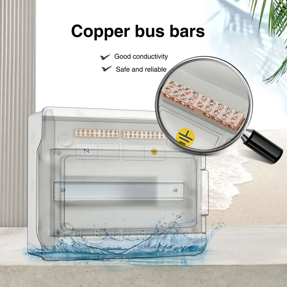 Description IP65 Waterproof Home Electric Vehicle Charger Box Specifications * Way: 12 way * Material: PC plastic * Waterproof Rating: IP65 * Size: 273x230x110mm/(10.7"x9"x4.3") Application Electric Vehicle Charger, Communication, Firefighting, Lighting, etc 【SUPERIOR FIRE SAFETY】- The material for this circuit breaker box has been upgraded to the finest V0 PC/ABS alloy plastic now, which has demonstrated flame resistance through a rigorous 960℃ hot wire test. This premium material provides enhanced durability, superior resistance to high temperatures and pressures, and longevity that's second to none. It's the perfect solution for high-end projects that demand the highest-quality equipment. 【FULL SLOT COVERS】- upgrades all outdoor breaker boxes with full slot sovers for snused spaces. This ensures protection from electrical shock, prevent the accumulation of dust and debris and reduce the risk of damage to the electrical components. 【BUS BARS INCLUDED】- Easy for neutral and ground wiring, made from high quality copper to ensure a good conductivity, safety and reliable for your applications. 【IP65 GRADE】- The power distribution boxes are waterproof & weatherproof designed, effectively block splashing water, rain, dust, snow, oil, UV rays and more. You can rest assured to use the box in both indoor and outdoor applications. 【EFFORTLESS SETUP, EXTENSIVE VERSATILITY】- The reserved hole position of our din rail enclosure can help you mount the box to the wall very easily. It can be widely used for solar power systems, electric vehicle charging stations, networks, communication infrastructures, and other utility applications. 【EXTERNAL DIMENSIONS】- 10.7"x9.1"x4.3" (273x230x110mm). Ensure a perfect fit: Please double-check dimensions before purchasing to ensure a seamless match that saves you time and costs. If you have any doubts about the dimensions, please don't hesitate to us. 【UNIQUE SERVICE】- At , we're more than just a brand, we're a community that puts your satisfaction at the heart of everything we do. We understand that perfect experiences are crafted with care, so we offer an exceptional extended after-sale service for effortless returns, even beyond 's return window. Please don’t hesitate to us if you have any issues. Our dedicated after-sale team is here to turn every concern into comfort, ensuring your journey with us is nothing short of perfect. Your voice helps us grow and refine, guiding us to serve you better. 【WHY CHOOSE 】- We're exclusively focused on industrial products, bringing electrifying expertise to your projects. While words can easily be duplicated, true excellence shines through in comparison. Guided by the invaluable insights from our valued customers, we commit to thinking differently, redefining standards of quality and service. Try , you're choosing more than a provider; you're gaining a partner committed to enhancing your efficiency and reducing costs.