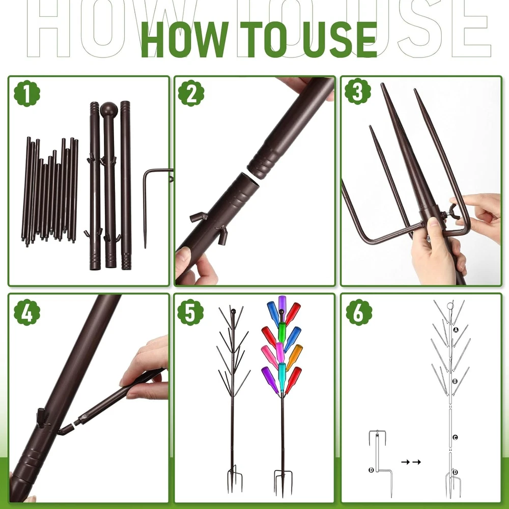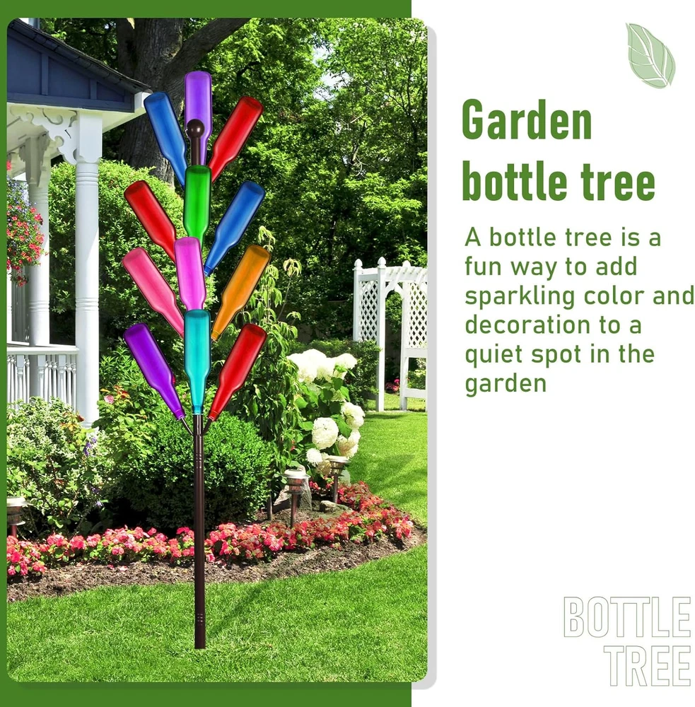 Sturdy Design: the wine bottle yard tree adopts thread assembly parts structure and proven design, easy to assemble and install, safe and secure; Equipped with a triangular stable structure ground plug, which is more convenient to insert into the ground and secure Well Crafted and Durable: the height of the wine bottle tree for the garden is about 5.25 feet/ 160 cm; It has 17 parts, bottom triangular ground plug structure, equipped with 12 branches assembled with threaded teeth, divided into 3 different size lengths to create a real tree trunk feel, respectively 9.84 inch (6 pcs), 7.87 inch (3 pcs), and 7.09 inch (3 pcs), it can hold 12 bottles in total; Please note, wine bottles are not included with product Versatile and Elegant Decoration: the wine tree for empty wine bottles is designed like in copper paint to color realistic tree trunks appearance, you can fill it with different kinds of glass bottles, and decorate with light string or other accessories, to make it look attractive and exquisite Undefined: the bottle tree stand adopts quality welded solid metal, hard and stable, not easy to deform or break, durable and long lasting Eye catching and Low maintenance Accent: you can plug your favorite glass bottles to decorate your wine bottle tree and delight your garden or backyard, ideal decoration for weddings, birthday parties, bridal showers, baby showers, housewarming events, and more Product Description