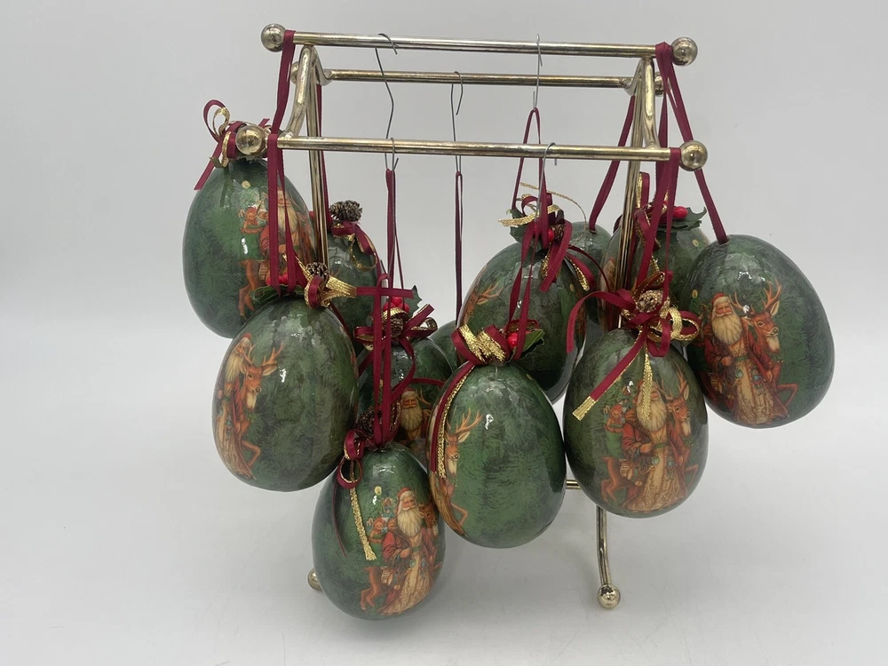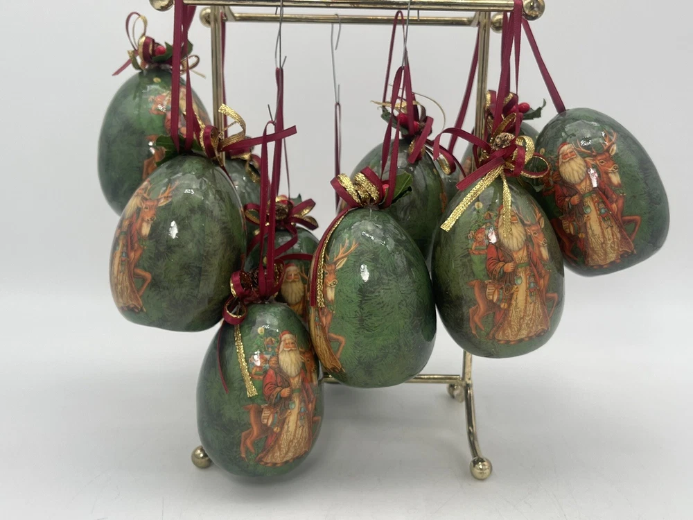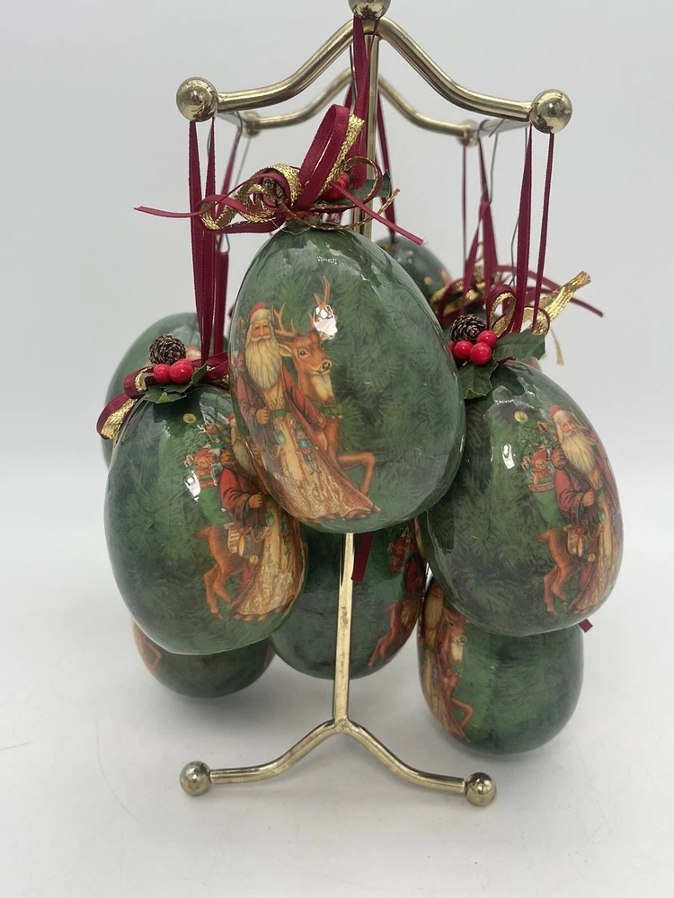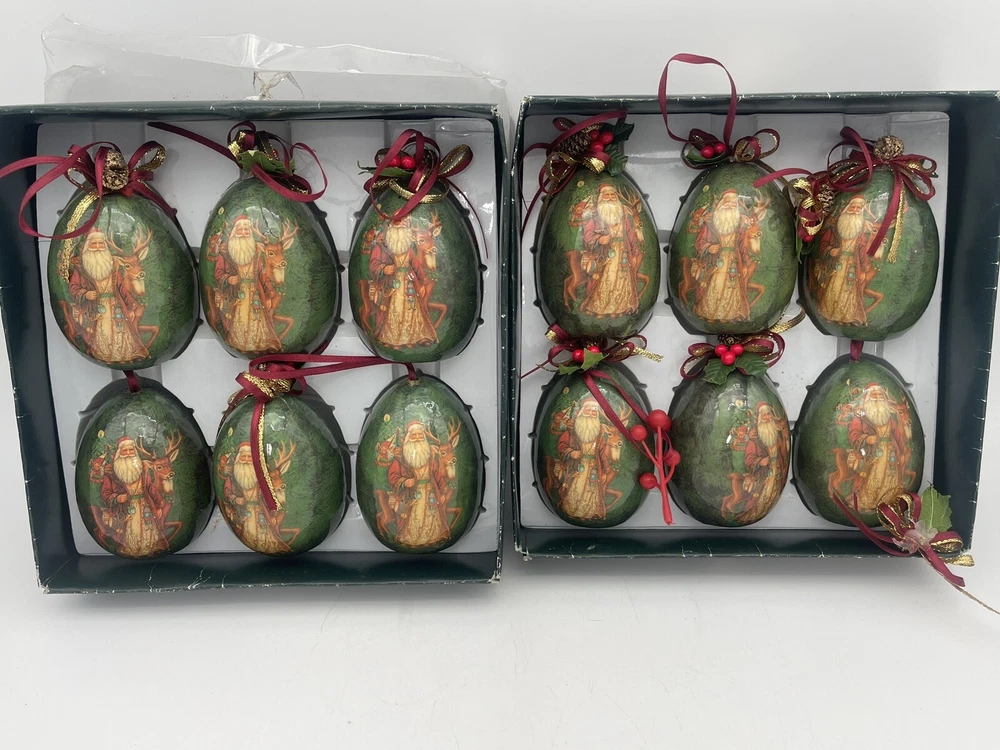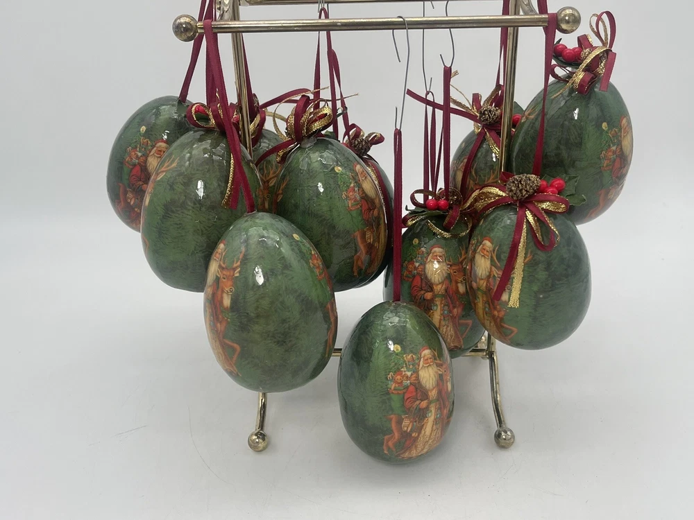 12 pcs | Vintage Egg Shaped Decoupage Santa With Reindeer Christmas Ornaments | Paper Mache Christmas tree Ornaments | Mache Christmas See my other listings π£ππβοΈ Please view and zoom in all images for item condition and what the item consists of. Colours may be slightly different than shown due to screen variations. Keep in mind this is a pre owned item and there is visible wear all over from years of loving using. There are scratches, stains, dents, breakage, missing pieces, crazing, rust and colour discolourations. Everyone has a different perception of item quality, thus we leave it up to the buyer to decide and evaluate on an itemβs condition. No original boxes. No chargers/adapters/batteries included. Questions, more pictures, videos? ask us π Happy shopping! *No staging elements are included in this sale* *sorry, no refunds, returns, cancellations or exchanges. For electrical items, please ensure wiring, plugs, batteries, and lightbulbs are compliant/safe before usage. Light cord is for USA-CANADA. Lightbulb not included. Please ensure cables or wires are away from children and pets. Adult supervision is required. I accept no responsibility or liability for the items that I sell. When purchasing jewelry, please ensure claps/connecting hooks are well closed before inserted a chain, charm, etc, or wearing your piece of jewelry purchased. All items are sold AS IS WHERE IS, with no guarantees or warranties (express or implied). I always ship with a tracking number and this number will be provided to you. You are responsible for tracking your order. For orders over $300 CAD for each item (shipping and taxes not included) a signature on delivery will be requested, therefore please ensure that you are available to receive your parcel(s). Unfortunately, I am not responsible for any lost, stolen, missing, undeliverable or unclaimed parcel(s) and no refund or any other type of compensation will be given should this happen. In addition, no recourse towards me will be possible should your parcel(s) be lost, stolen, missing, undeliverable or unclaimed. Once the package leaves our possession, we are not responsible for any damages incurred while transit or reception of opening package. If your package is delivered damaged, please reach out to us immediately (the day of delivery of package- not any other moment), to see if we can help you and assist you with filing a claim with the carrier. You must retain original box, item, and packaging material. Helping you or assisting you with filing a claim does not in any way constitute recourse towards us for your damaged item or that you will be compensated for your item.