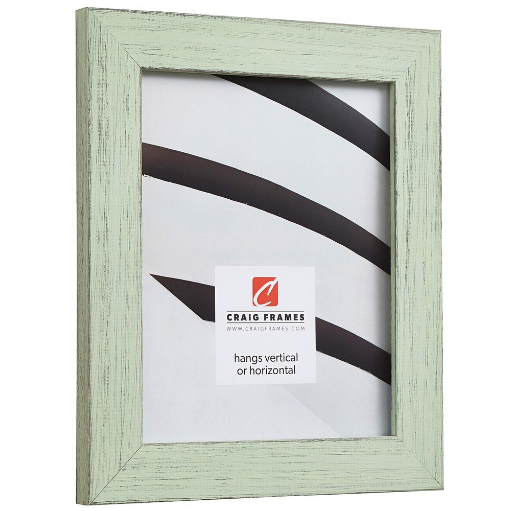 Rustic style; weathered light green with visible wood grain; painted finish **IMPORTANT** THIS IS A NATURAL WOOD PRODUCT. WE CANNOT CONTROL VARIATIONS IN COLOR OR GRAIN PATTERN. Frame includes: clear acrylic facing, rigid cardboard backing and wire hanging hardware kit (some assembly required) Frame holds a 12 by 18-Inch photo/print/poster (viewable area reduced by .25" on each side due to frame lip) Frame moulding is 1.5 inches wide; solid wood construction Frame is designed for WALL HANGING only (hanging hardware allows for portrait or landscape orientation)