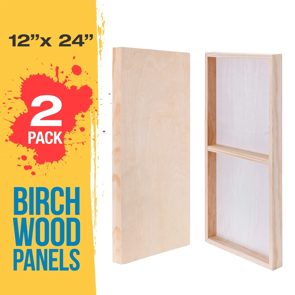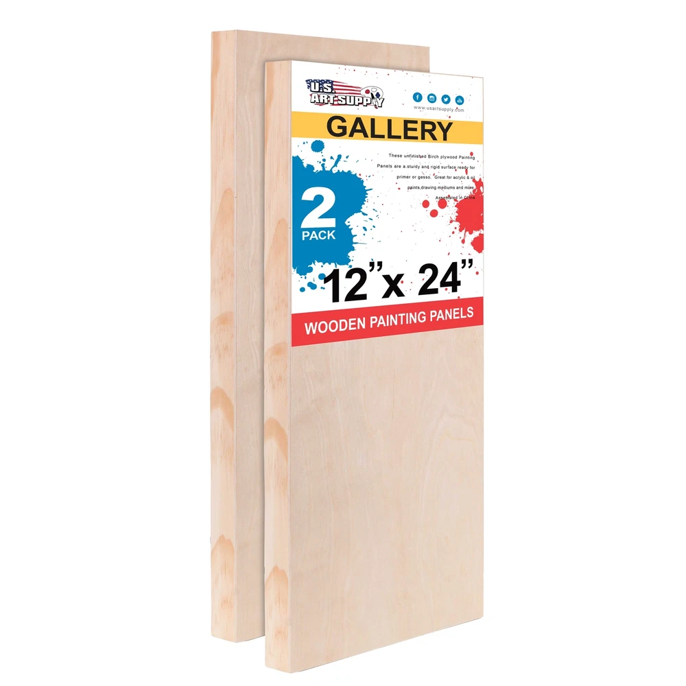 ]]> U.S. Art Supply Ebay Storefront Ordering | Shipping | Returns | International Product Information Part# USA WCG12X24-2PK Unfinished Cradled Wood Panels for Painting, 2 Pack of 12x24 inch - Gallery Birch Wooden Canvas Boards 1-1/2" Deep - Mixed-Media Craft, Acrylic, Oil, Encaustic, Paint Pouring 1-1/2" Gallery Depth Canvas Wood Art Panels: 2 Pack of premium artist quality 12" x 24" x 1-1/2" deep gallery depth cradled wood paint pouring panel boards. Premium sturdy unprimed smooth birch surface panels that are ready for primer or gesso. Alternative to Canvas: Provides a firm smooth painting surface that will not stretch, flex or bend like traditional canvases. Unfinished panels have smooth sanded birch faces with solid wood cradles that ensure strength, so there will be no warping. Easy to hang, as no frames are necessary. Ideal for Mixed-Media: 12x24 Wood Canvas boards for painting. Wooden Panels are excellent for paint pouring and most art and craft projects, as they can be used with all types of mixed-media including oil, acrylic, watercolor, tempera, encaustic, collage, decoupage, impasto, photos, drawing etc... Available in Multiple Wood Panel Size and Depths: Our cradled wood panels are available in multiple sizes from 4" x 4" up to 24" x 36" and with cradle depths of either 1-1/2" Gallery Panels or 3/4" Studio Panels. Quantity of panels per package also vary from 2 to 5. Our wood panel boards are used by professional artists, as well as the young aspiring artist for creating unique artwork. U.S. Art Supply is a national industry leader in Art Supplies. Buy with Confidence: Backed by a trusted brand dedicated to your satisfaction, we ensure a hassle-free experience every time. U.S. Art Supply 12x24 wood panels are great for painting and other crafts. Discover the perfect foundation for your artistic creations with our premium artist birch wood panels for painting. These wood canvas boards for painting offer an ideal surface for artists seeking durability and a smooth texture. These wooden canvases for painting are great for other crafts. Our wooden canvas provides exceptional support, ensuring your paintings stay vibrant for years. Choose from a variety of wood painting panels that combine the natural beauty of wood with a finely sanded finish, perfect for both oil and acrylic paints. Whether you're working on a small project or a large masterpiece, our wooden canvases for painting deliver a reliable and versatile medium.