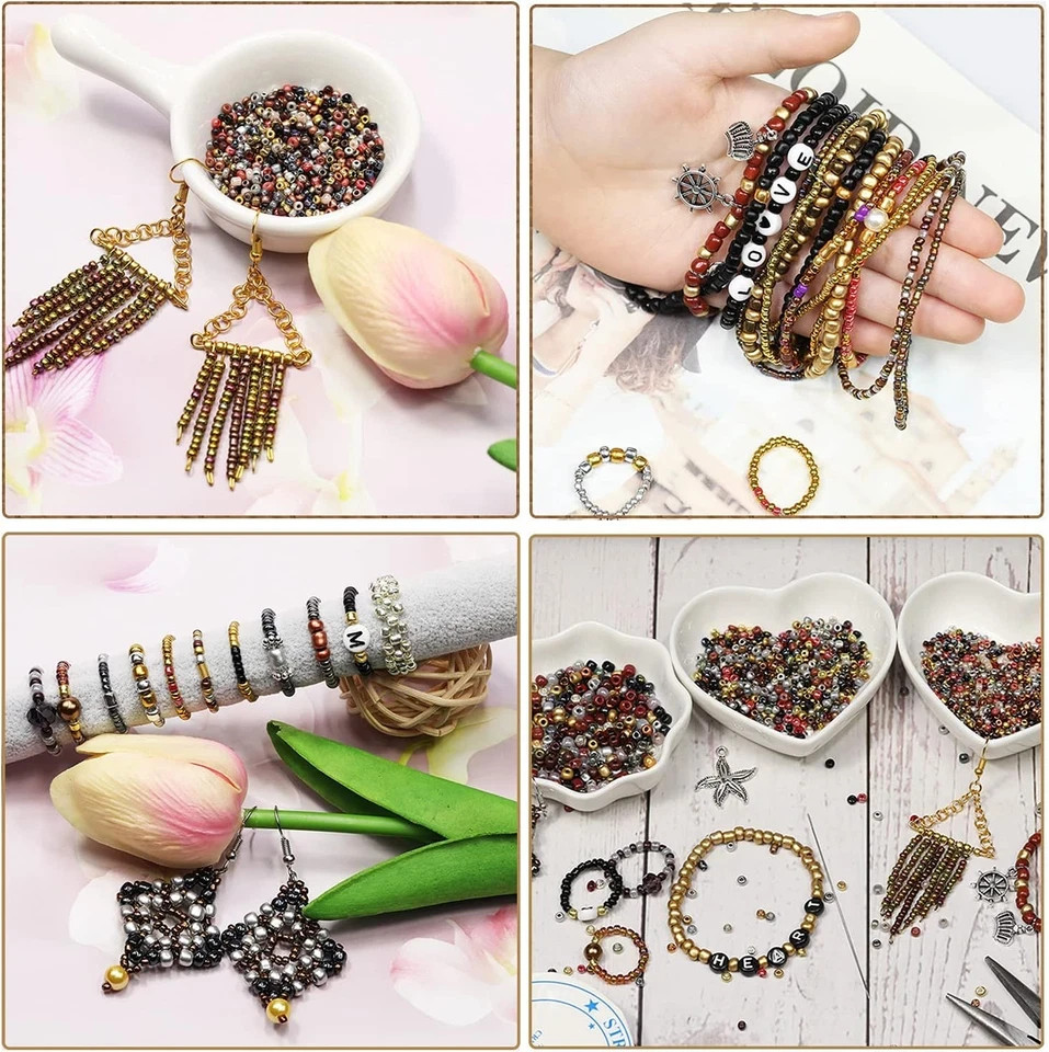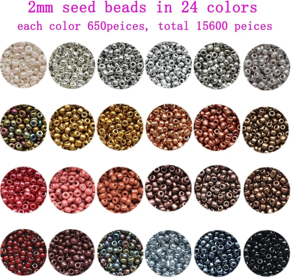 Quantity:Totally about 15600pcs tiny seed beads include 24 colors and each color have 650 pieces. Material:Seed beads material is glass, the material is durable and sturdy Size:Seed beads size is 2mm in diameter, hole is 0.6mm Widely Used :There are 24 colors in box, wide variety of colors can provide more choices for your jewelry making, like women’s chokers necklaces, earrings, anklets, rings, brooches, and so on. Glass seed beads for Jewelry making suitable for DIY bracelets, necklaces, costume decoration, jewelry accessories, gifts, and crafts.