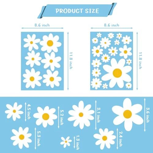 Return Policy Fast Delivery Trusted seller 120 Pieces 10 Sheet Large Daisy Wall Decals Daisy Flower Wall Stickers Vinyl Peel and Stick Floral Wall Decal Daisy Wall Decor for Nursery Playroom Bedroom Living Room Wall Product Description Versatile Decor: Set of 120 large daisy wall decals (10 sheets) to brighten up any room with a cheerful floral touch. Easy Application: Peel-and-stick vinyl decals allow for quick and hassle-free installation on walls, doors, or furniture. Customizable Design: Arrange the individual daisy stickers in your desired pattern or formation to create a unique wall mural. Ideal for Various Spaces: Perfect for nurseries, playrooms, bedrooms, living rooms, or any area needing a vibrant accent. Dimensions: Each daisy measures approximately 4-8 inches in diameter for an eye-catching, oversized floral display. Shipping Returns Payment Shipping Shipping is FREE to all addresses other than APO/PO boxes in the lower 48 states. All our stock ships from US-based warehouses. Shipped via USPS or UPS (depending on location and package weight) Unless stated otherwise, all orders will ship within 24-72 hours of your payment being processed. Check our feedback to see the great reviews of FAST shipping we offer. Returns Seller does not accept returns Payment We currently accept payment via eBay managed payments only. Once payment is cleared, we will dispatch your shipment within 1-3 business days. Please refer to the "Shipping" tab for more information regarding shipping speed to your destination.