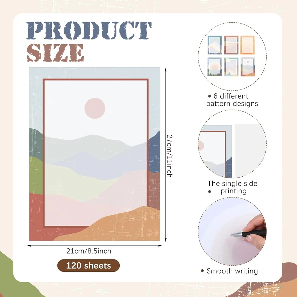 120 Sheets Stationery Paper Decorative Printer Paper 8.5 X 11 Inch Border Design