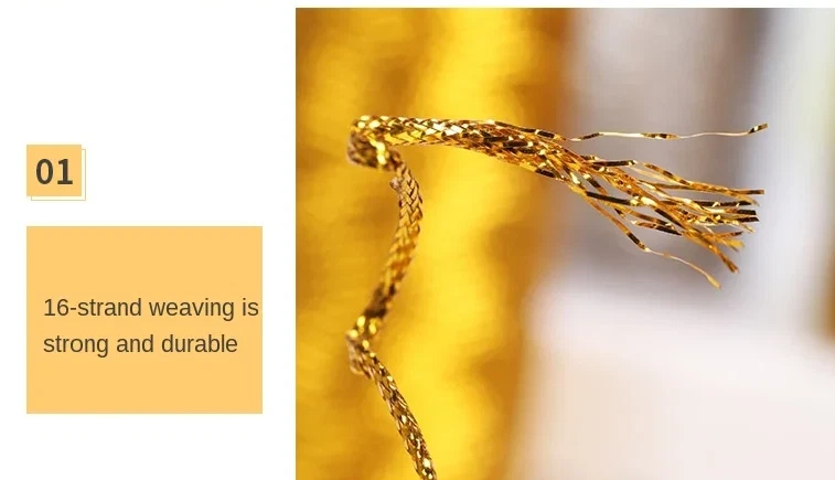 Listing for 120 yards Metallic Lurex Rope Twisted Thread Macrame Cord Rope 1.5mm. Unique yarn/rope/cord! Thickness: 1.5 mm Gold Cored lurex Rope: 1.5 mm Round Rope for Craft Jewelry Making, Thread Cord, Garment Sewing. Bobbin size: 10 cmX5 cm Each bobbin contains 120 yards. Material: The rope is made of high-quality lurex, ensuring strength and durability for long-term use. Gift Idea: This rope makes a perfect gift for your family and friends. You can use it to create handmade jewelry. These beautiful ropes are versatile additions to various projects, including home decor, wedding bouquets, crafts, handmade cards, scrapbook pages, and nursery items. You can also use them to trim a bassinet, decorate lampshades, or add interest and soft sheen to almost any project. Get creative and make tiny hair wreaths for dolls with these adorable ropes Once you try, you will love!