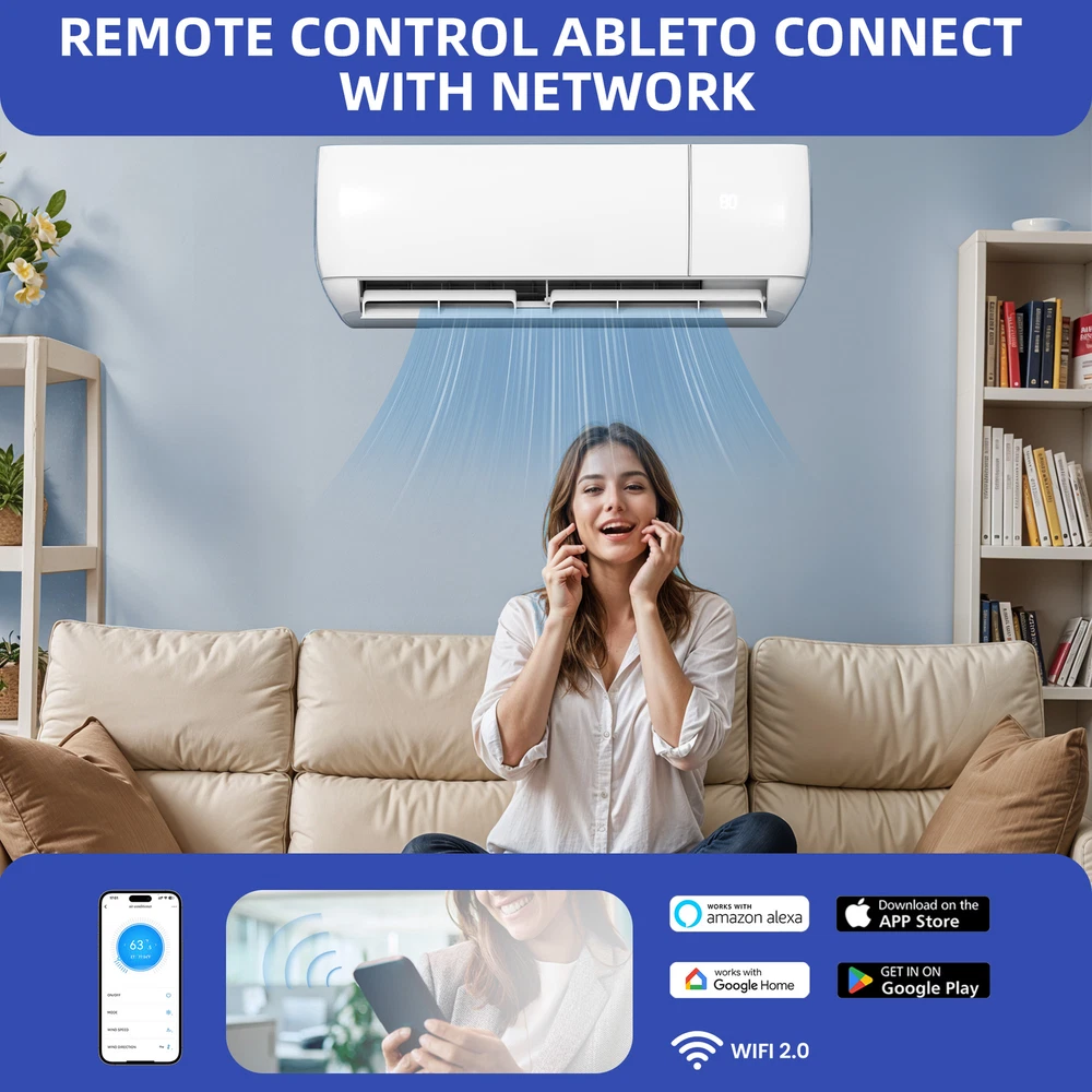 12000 BTU Mini Split Air Conditioner Heat Pump System Ductless Wifi 110V SEER20 Product Description NOTE: Professional Installation would be Highly Recommended. Descriptions: 1. Material: Iron, Stainless Steel, Plastic 2. Color: White 3. Mounting: Wall-Mounted 4. Special Design: Mini Split AC, R32 Compressor, WiFi/App Compatible, SEER20, 110 Voltage, 750 SQ Ft Coverage, 41 dB Noiseless, Air Flow 50ft, Heat Pump 1 Ton, 5-AC Mode 5. Suitable For: Home, Office, Bedroom, Living Room, Work Space, Cafe, Restaurant, Hotel Room Features: 1. Smart Energy-Efficient Comfort: Enhance your living space with this 12,000 BTU wall-mounted air conditioner, designed to cool and heat areas up to 750 sq ft efficiently. Featuring an advanced inverter compressor and a high SEER2 rating of 20, it delivers powerful performance with minimal energy consumption. With app control via Amazon Alexa and Google Home, you can conveniently adjust settings from anywhere. Operating at a quiet 41 dB, this unit is perfect for creating a comfortable environment in homes, offices, and living rooms. 2. Versatile Climate Control: Experience year-round comfort with this energy-efficient air conditioner offering 4 operating modes: cool, dry, fan, and heat. Its inverter technology ensures consistent temperature control between 60°F and 90°F while keeping noise levels as low as 41 dB. With smart compatibility through Amazon Alexa and Google Home, you can personalize your indoor climate effortlessly. Perfect for residential and office spaces, this unit combines style and functionality for a superior cooling and heating experience. 3. Noiseless -Quiet Operation: Enjoy a peaceful atmosphere with this wall-mounted air conditioner, engineered with a quiet 41 dB operation. The 12,000 BTU cooling/heating capacity efficiently covers spaces up to 750 sq ft, providing reliable climate control throughout the year. Its inverter compressor and SEER2 rating of 20 ensure energy savings without sacrificing performance. Control your comfort conveniently with voice commands using Alexa or Google Home, making it a smart addition to your living or working space. 4. Reliable Performance for Every Season: Designed for long-lasting comfort, this air conditioner features a durable iron, stainless steel, and plastic construction with a powerful 1-ton heat pump. Whether you need to cool or heat your space, the 12,000 BTU capacity ensures efficient operation within a temperature range of 60°F to 90°F. With a timer function ranging from 0.5 to 24 hours, you can schedule cooling or heating based on your lifestyle. Smart app control adds convenience, making it an ideal solution for homes and offices alike. 5. Effortless Installation: This wall-mounted air conditioner comes with a complete package, including an indoor unit, fan compressor, and remote control for easy operation. With app compatibility for Amazon Alexa and Google Home, you can manage your climate settings with ease. The inverter compressor delivers efficient cooling and heating while operating at a low noise level of 41 dB. Covering up to 750 sq ft, this unit is perfect for home and office environments where comfort and energy efficiency are essential. Dimensions: 1. Air Conditioner: 31,2"L x 7.9"W x 11.5"H 2. Compressor: 27,8"L x 11"W x 20,9"H Package Includes: 1. 1x Air Conditioner Unit 2. 1x Fan Compressor 3. 1x Remote Control Shipping 1. Normally the item will be dispatched within 1 business day if payment is cleared before 12pm PST. 2. Please verify the correct shipping address in your PayPal account before making the payment. We only dispatch the item to the address that is sent to us at the time of checkout. 3. We don't ship to Hawaii, Alaska, Puerto Rico, APO/FPO/PO Boxes. 4. We don't provide local pick-up service. 5. Normally we will use USPS, UPS, FedEx & LTL to dispatch items. Payment 1. We accept PayPal and credit card. 2. We will ship to the confirmed Paypal shipping address that is provided with the payment only. Return 1. 30 days Money Back Guarantee. 2. Please contact our customer service to receive a RMA form first if want to return the item. 3. All returned items MUST in new condition with the original package. Contact If has any problem, please contact us by sending an ebay message. Our customer service will resolve the problem as soon as possible. On Dec 3, 2024 at 01:51:16 PST, seller added the following information: On Dec 4, 2024 at 02:25:43 PST, seller added the following information: On Dec 9, 2024 at 03:32:17 PST, seller added the following information: On Dec 17, 2024 at 05:27:11 PST, seller added the following information: On Jan 22, 2025 at 04:55:03 PST, seller added the following information: On Jan 31, 2025 at 01:54:28 PST, seller added the following information: