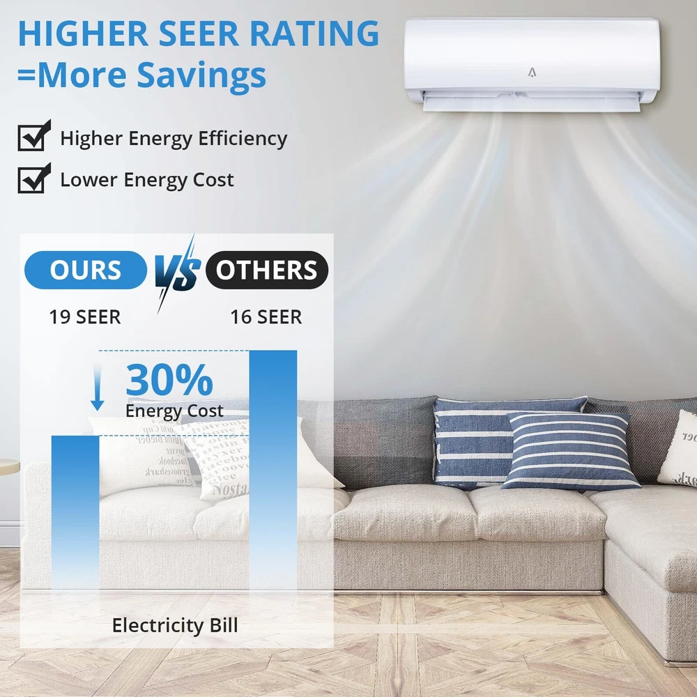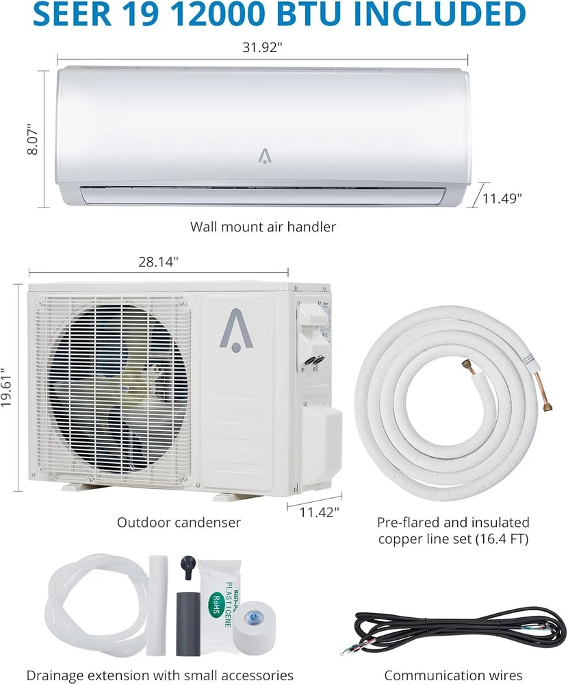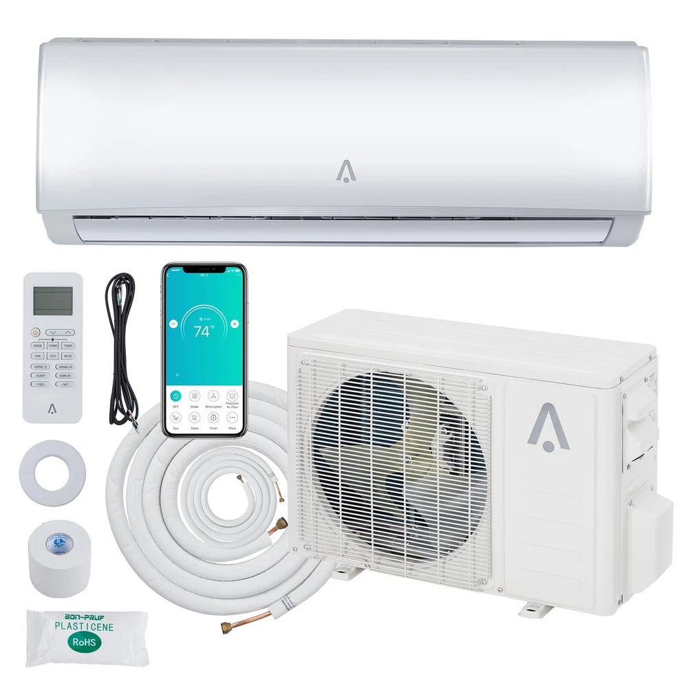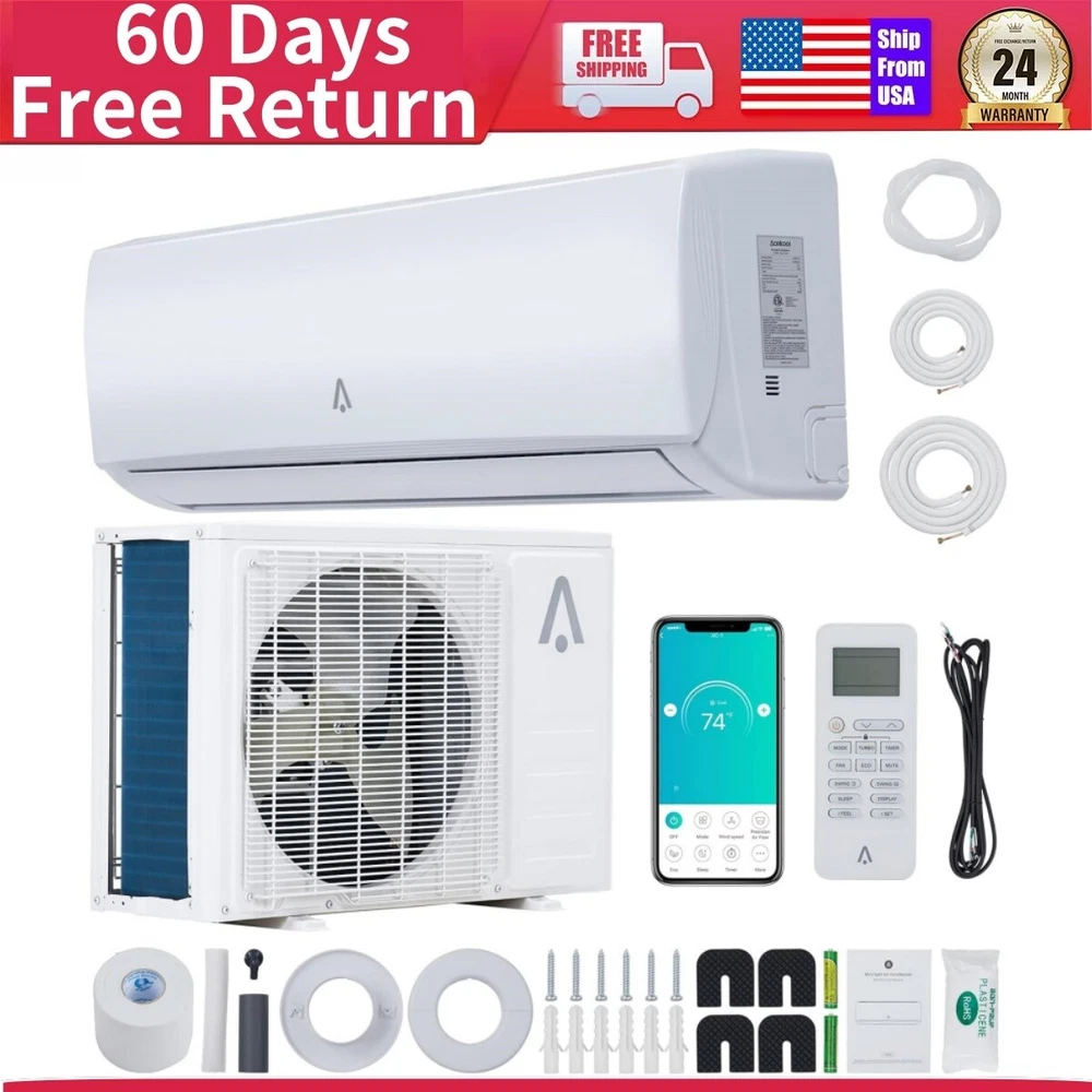 About this item Versatile & Convenient: Our mini-split A/C system offers 5 modes (Cool, Fan, Dry, Heat, Auto), 4 fan speeds, sleep mode, ECO mode, IFEEL, and turbo function for personalized comfort. With the backlit LCD remote controller, controlling the system is a breeze. Experience year-round comfort with cooling, heating, and dehumidification capabilities. Enjoy temperatures as low as 61°F or as high as 88°F. Stay comfortable and in control with our powerful and compact ductless mini-split system. Efficient Mini Split AC Cooling & Heating System: With 12,000 BTUs and a 19 SEER rating, 230V, our split air conditioner provides cooling and heating capabilities, ensuring optimal temperature control in any season. This pre-charged air conditioner unit features a ductless mini split inverter plus system with a heat pump and DC Inverter technology providing up to 30% power savings. Smart Control: This smart mini split air conditioner is compatible with Alexa and Google Home, allowing you to conveniently control your mini split air conditioner through the accompanying app. Adjust the temperature remotely while you're away to save energy, and come home to a cooler environment. Easy-to-Use Remote Control & Timer: This split-system AC unit is equipped with a user-friendly remote control, providing effortless control over various functions. Additionally, it features a convenient 0.5-24 hours timer, that can be set to turn the unit on and off based on your specific requirements. When the remote control is not in use, its display screen will automatically turn off, ensuring it won't disturb your sleep. Professional Installation: This system comes with a complete installation kit including an Outdoor/Indoor Unit, 16.4 ft Copper Line Set, Communication Wires, Small Accessories, and a Drainage Extension. Our high-quality products are backed by excellent manufacturer support for long-term reliability. To ensure optimal safety and performance, we advise seeking the assistance of a licensed refrigeration professional for the installation of this HVAC system. What's in the box 1* Indoor Unit 1* Outdoor Condenser 1* Copper & Aluminum Connection Pipe 1* Wall Mounting Bracket 1* Drain Hose 1* Communication Wires 1* User Guide Product Description Specification Type: cooling&heating Control type: remote Power supply: 220V~/60Hz/1P Rated Cooling(95F/35C) Rated cooling capacity (95F/35C) : 12000 Btu/h EER2 (95F/35C): 12.5Btu/W.h SEER2: 19 Btu/W.h Rated Heating Rated Heating capacity(47F/8.3C): 12000 Btu/h Rated Heating capacity(17F/-8.3C):7500 Btu/h Max. Heating capacity(19F/-7C): 10000 Btu/h Max. Heating capacity(5F/-15C): 8700 Btu/h Percentage: 72.5% HSPF2 Rating (Region IV): 9.0 Btu/W.h HSPF2 Rating (Region V): 7.8 Btu/W.h COP2 (47F/8.3C): 3.5 W/W COP2 (5℉/-15℃): 1.8 W/W Rated Input Consumption Cooling:920 W Heating:910 W Rated Current Cooling: 8.2 A Heating:8.2 A Min. Circuit Ampacity: 17 A Max. Fuse size:25 A MXimum Operation Pressure:550 PSIG Moisture removal:1.6 Liters/h Indoor airflow:800/650/500 m3/h;471/382/294 CFM Indoor noise level Turbo/High/Med./Low/Mute:45/39/34/29/27 dB(A) Outdoor airflow: 2100 m3/h;1235 CFM Outdoor noise level:52 dB(A) Payment Delivery details Terms of sales About us Contact us Payment We accept payment either via PayPal or any of the following credit cards; Visa, MasterCard, Discover, and American Express. Wishing you a happy life! Delivery details We will provide you with the tracking number on the same day or the next day, and transport your package through UPS, DHL, FedEx and other courier methods. If you have any questions, please feel free to contact me and I will do my best to help you solve the problem. Wishing you a happy life! Terms of sales We offer a one month free return and exchange service, and you don't have to bear any losses. We will provide multiple solutions for you to choose from. If you have any questions, please feel free to contact me and I will do my best to help you solve them. We offer a two-year warranty period. If you have any quality issues with the product you purchased within two years, please feel free to contact me. I will provide you with a free replacement service. If you have any questions, please feel free to contact me. I will do my best to help you solve the problem. Wishing you a happy life! About us We are committed to becoming the best eBay seller, with high-quality suppliers, providing the most sincere service, including pre-sales and after-sales service, to give you a satisfactory shopping experience. If you have any questions, please feel free to contact me, and I will do my best to help you solve the problem. Wishing you a happy life! Contact us If you encounter any problems, please contact me by email at the first time, I will provide you with a solution as fast as possible so that I can give you a satisfactory shopping experience, wish you a happy life! Number of Cool Speeds 3 Number of Fan Motors 1 Blower Motor Speed Multi Speed High Efficiency Power Source Corded Electric Number of Compressors 1 Power Phase 1 Phase Control Style Remote Control, App Control Number of Zones 1 BTU Cooling Rating 12000-12999 BTU Energy Efficiency Ratio (EER) 13.1-14 Manufacturer Warranty 10 Years + 60 Days return Voltage 220 V Area Covered UP to 750 sq ft Compressor Type Rotary & Impeller Brand Acekool Type Ductless Mini Split Air Conditioner Tonnage 1 tons Air Flow Volume Indoor Unit:471/382/294 CFM,Outdoor Unit:1235 CFM SEER Rating 19 Mounting Location Wall Power 910 W / 8.2 A Material Metal, Plastic Energy Star 5 Stars Adjustable Temperature 60℉~89℉ Timer Control 0.5-24 Hours EC Range A+++ - G Capacity 12000 BTUh MPN TSC-12HA1/I3TI22 Model TSC-12HA1/I3TI22 Features Digital Display, Indoor/Outdoor, Waterproof Color White Refrigerant R 410A Item Weight 29.8 pounds Noise Level 52 dB Special Feature Fast Cooling Item Width 36.22"W Item Depth 72.83"D Item Height 29.53"H