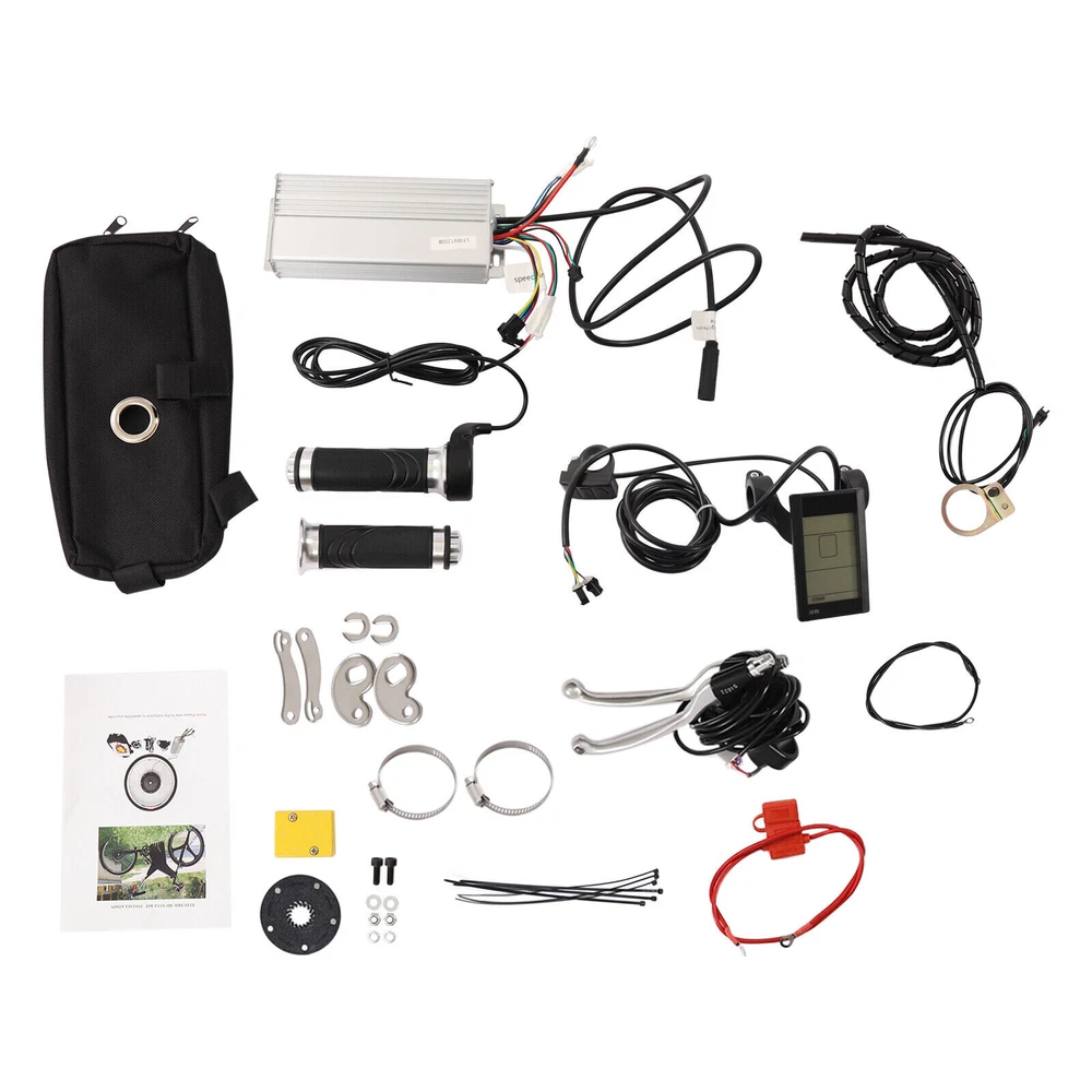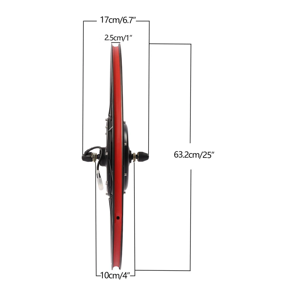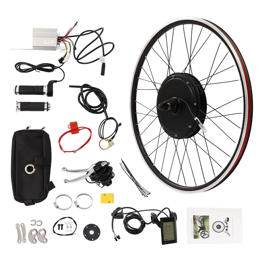 1200W 48V 25'' E Bike Motor Hub LCD Front Wheel Electric Bicycle Conversion Kit Note: This set does not include tires and needs to be purchased by the customer. The suitable tire size is 700*32-42c/28*1 3/8inch Description Stepping on the pedal for a long time is tiring. Maybe you need an easy way to ride. This electric bike conversion kit is made of high-quality aluminum alloy, which is strong and durable. This product can convert ordinary bicycles into electric bicycles, so that you can feel the speed of the wind and climb hills without difficulty, giving you a good riding experience. Key Features High-quality Material: This product is made of high-quality aluminum alloy, which is wear-resistant, corrosion-resistant, strong, durable, and not easy to deform. Fast Speed: The speed of the motor wheel can be up to 55km/h (180446ft/h), which is very fast and can give you a good riding experience. LCD Function: The LCD meter has the function of fault display, speed display, mileage display, voltage display, five-speed booster speed control, and fixed speed cruise. It is very convenient for you to use. Adjustable Speed: It has five gears to adjust, which can bring you an unprecedented riding experience. Excellent Performance: It has a high efficiency of more than 82%, which can save you a lot of electricity. Moreover, the brushless gear motor produces low noise when used, which can create a quiet environment for you. Safe and Reliable: This conversion kit is equipped with a powerful controller, which is conducive to ensuring the smooth operation of other parts, making your entire process safer and easier. Besides, it is equipped with a power-off brake handle, which can cut off the power of the motor in case of emergency braking so that the bike can stop in time and reduce potential safety hazards. Labor-saving: You don't have to pedal your bike laboriously anymore with this product and only need to gently rotate the turner to control the speed flexibly, which is very labor-saving and convenient. Easy to Install: The structure of the product is simple and the accessories are complete. You only need a few simple steps to install it, which is very simple and convenient. Guaranteed Customer Service: We aim to provide quality products and services. If you have problems, please feel free to contact us. We will reply and solve the problem for you as soon as possible. Details Anti-slip Pattern: There are anti-slip patterns on the handle of the turner, which can play a good anti-slip effect. You can use it more comfortably and safely. Pedal Assistant Sensor: It senses the rhythm of the pedal and adjusts the speed of the motor accordingly. This helps on long trips and avoids wrist pain caused by constant pressure. Controller Bag : This can be convenient to store the controller. It is also very good-looking and stylish. Application It is suitable for retrofitting the front wheel of a two-wheeled bike. It is suitable for bikes with 700*32c-42c wheels. Specification Color: Black, Silver Material: Aluminium Alloy Shape: Round Style: Modern Voltage: 48V Power: 1200W Meter Type: LCD Power Type: Lead-acid or Lithium Battery (Not Included) Installation Position: Front Bike Type: Electric Bike Motor Type: Brushless and Gearless 205 Series Hub Motor Rated Speed: 500rpm Rated Torque: 45nm Braking Method: Disc Type Corresponding Controller: 48V 1200w Controller Available Wheel Size: 700*32c-42c Instrument Function: Fault Display, Speed Display, Mileage Display, Voltage Display, Five-speed Power Steering, Fixed-speed Cruise Control Efficiency: ≥82% Motor Wheel Speed: Max 55km/h (180446ft/h) Net Weight: 11.2kg/24.69lbs Gross Weight: 13kg/28.66lbs Package Size: 65*65*23cm/25*25*9inch Wheel Diameter: 63.2cm/25inch Motor Shaft Length: 17cm/6.7inch Rear Fork Distance: 10cm/4in Wheel Size: 700C Package Included 1* Front Motor Wheel 1* Turner 1* Turnbuckle Cover 1* Controller 1* LCD Meter 1* Brake Handle 1 Set* Pedal Assistant Sensors 1* Wiring Box 6* Tie Stickers 1* Controller Bag 1* English Manual Other Accessories for Assembly Notes The speed is related to wheel size, road condition, battery condition, guest load, wind Speed, and other factors. It is suitable for the front wheel of a two-wheeled bike. It cannot be used for three-wheelers or multi-wheelers. Please prepare 4 lead-acid batteries or a lithium battery of corresponding voltage in advance. Please make sure a solid connection between the motor and the controller. Please make sure that the inner core of each plug is not damaged, broken, or bent. If your kit has been in use for a while and then suddenly stops working. It could be that your motor plug is soaked in water. Please unplug it and let it dry. Then put it back in place and it will work fine. You need to connect the machine correctly and firmly during installation so that the product can work properly. If there is a mistake during the installation process, the product will not work properly. After the installation is completed, you can check whether the error code is displayed on the LCD screen. Please read the manual completely before installation and use, and pay particular attention to the safety instructions included. Please allow the slight color difference caused by the shooting light and 1-3cm error due to manual measurement, and make sure you do not mind before ordering Payment Delivery details Terms of sales About us Contact us Payment We accept ebay payment 。 Fees such as import duties, taxes are not included in the item price or shipping costs. These charges are the buyer's responsibility. Delivery details Shipping: 2-9 working days to: USA Terms of sales We maintain high standards of excellence and strive for hundred percent customer satisfaction. Feedback is very important to us. We hope that you contact us immediately before you give neutral or negative feedback, so that we can address your concerns. It is impossible to address issues if we do not know about them! About us Your satis fa