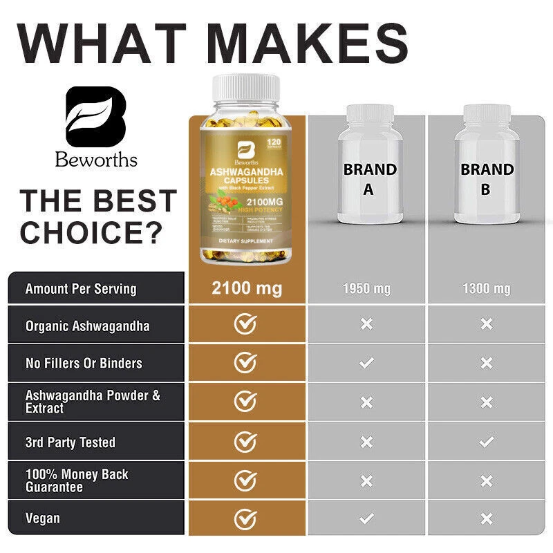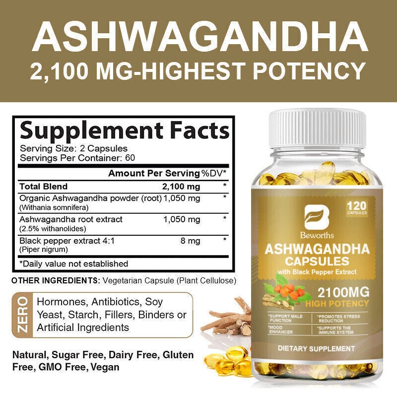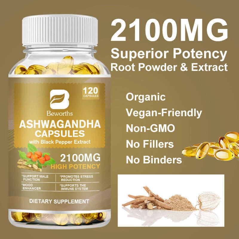 About the item: Product: Ashwagandha Capsules Brand:B BEWORTHS Ingredients: Ashwagandha Extract, Vitamin D, etc. Supplement Facts: Serving Size :2 Capsules Serving Per Container :60 Total Blend 2100mg Organic Ashwagandha power(root)1050mg (Withania somnifera) Ashwagandha root extract (2.5% withanolides) 1050mg Black pepper extract 4:1 (Piper nigrum)8mg *Daily value not established Effect: 1. Antioxidant, enhance immunity; 2. Relieve stress and help sleep; 3. Lower fat, lower blood sugar; 4. Enhance brain function and reduce anxiety; 5. Lose weight; 6.Improve the passion of men and women. Features: * The adaptogenic properties of Ashwagandha have been used to help relieve stress and aid relaxation, helping to lower levels of the ''stress hormone'' cortisol in our body to encourage those suffering from chronic stress to feel calm. * Antioxidants that help protect the body from cancer-causing free radicals and cell damage. *Nourishing and strengthening the body: It is used to recover energy when overwork or mental fatigue, and has a significant effect on chronic fatigue syndrome. *Improve the passion of men and women:The ultimate blend of natural and human passions is a perfect male libido booster and natural testosterone booster for men Our libido max supplements for men improve sexual wellness, metabolism, along with many other benefits. *For Women:It can improve the sexual function of healthy women; In addition, South African drunk eggplant is rich in phytoestrogens, which can alleviate menopausal symptoms. *The root of South African drunk eggplant has anti-inflammatory and antioxidant effects, and can promote the balance of immune system, endocrine system, cardiopulmonary system and nervous system. Instructions: 2-3 times a day, 2-3 tablets each time, after meals and before bedtime. What you can get? 3*120pcs Ashwagandha Capsules Contact Us & Feedback Your feedback is very important to us. We will leave positive feedback for you as soon as payment is received and hope you will take a moment to do the same for us. If u are satisfied with the item, please be kind to leave us positive feedback and a good rating. If you are not satisfied with the item or you have not received your parcel in the estimated time, we sincerely request from you contact us through the "My Message" section Or "Ask Seller Questions" BEFORE taking critical action. We will try our best to solve the problems to make our customers satisfied. All emails will be cos within 2 business day. If you do not receive our reply, please kindly re-sent your emails and we will reply to you ASAP. Payment The only acceptable payment methods are Payoneer, Credit Debit card & Paypal. Before your payments, please make sure you have a valid/active account. Our shipping services are valid only for verified eBay addresses. Therefore, please make sure to verify your eBay address. Moreover, your verified eBay address and the Paypal registered addresses are should be the same. Shipping We will ship the product about 2-3 days on confirmation of payment. The shipping method is Standard Registered Parcel Post. It includes 100% free shipping for most of our products. Nevertheless, this free shipping method might be changed for heavyweight items because of the huge amount of shipping cost. Returns 100% Satisfaction Guaranteed. We accept product returns within 30 business days from the delivery of the item. If you are not satisfied with the item or its condition, please feel free to contact us before taking action. We will try to solve any dispute and try our best to make our customers fully satisfied.