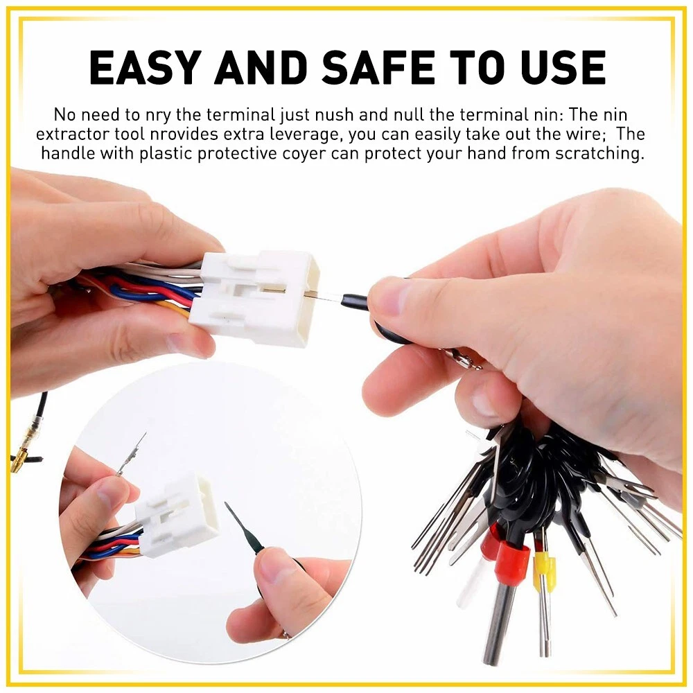 Specification: Material:Stainless steel+plastic Size: 1.Single-pin Width 0.8mm, 1mm, 1.2mm, 1.4mm, 3mm, Single needle tip. 2.Double-pin Inner(outer) Diameter 2mm(3.5mm), 3mm(4.5mm), 3mm(8mm), 4.5mm(6mm), 6mm(7.5mm), Double needle with round. 3.Casing Diameter 2mm 2.5mm 3mm 3.9mm 4.9mm 6.2mm Application: Ideal for various connector terminals in automobiles, motorcycles, and electronic vehicles, this terminal ejector kit is versatile and reliable. Features: *High-quality terminal Tool Made of high-quality stainless steel and durable plastic to ensure our long-term use without deformation. *Easy to use 120Pcs Car Wire connector Pin Release Extractor Puller Terminal Removal Tool Kit Specification: Material:Stainless steel+plastic Size: 1.Single-pin Width 0.8mm, 1mm, 1.2mm, 1.4mm, 3mm, Single needle tip. 2.Double-pin Inner(outer) Diameter 2mm(3.5mm), 3mm(4.5mm), 3mm(8mm), 4.5mm(6mm), 6mm(7.5mm), Double needle with round. 3.Casing Diameter 2mm 2.5mm 3mm 3.9mm 4.9mm 6.2mm Application: Ideal for various connector terminals in automobiles, motorcycles, and electronic vehicles, this terminal ejector kit is versatile and reliable. Features: *High-quality terminal Tool Made of high-quality stainless steel and durable plastic to ensure our long-term use without deformation. *Easy to use The electric needle removal tool is easy to use, push and pull the terminal pin with the connector needle removal tool, you can effortlessly remove from the wire harness connector without causing any damage. *Portable The pin removal tool set includes a protective bag for easy storage and portability. Small and lightweight, it is suitable for use anytime,anywhere. *Wide application Suitable for various connector terminals in automobiles, motorcycles and electronic vehicles, the terminal ejection kit is widely used and reliable. *All tested before shipment All products were tested for performance and to ensure the accurate parameter for your vehicle. Packaging include: single pin extractors*42 three pin extractor*4 double pin extractors*50 casing tool*24 (120pcs Terminals Removal Tools in total) Item Specifics Brand Unbranded Fitment Type Direct Replacement Manufacturer Warranty 1 Year Type Wire Terminal Removal Tool Universal Fitment No Performance Part Yes Vintage Part No Packaging include single pin extractors, three pin, double pin,casing tool Material Stainless steel plastic Features High-Quality;Easy to Use;Portable Manufacturer Part Number Does Not Apply Warranty 1 Year Applicable Regions automobiles, motorcycles, and electronic vehicles Color Black Application Mechanical repair, home, car repair Country/Region of Manufacture China FAQ ♥ If you have a decoding problem or any other problems, please contact us first, we will help you with it. We will reply you within 24 hours in working days. I'm a new seller, thanks a lot for your trust and convince! I will serve you with all my heart. ♥ Q1: Will this bulb fit my vehicle? A: We can match almost any vehicle to one of our bulb sizes. eBay only lets us include some vehicle fitments per listing, but if your vehicle does not show up on the compatibility table at the top of our listings, welcome you to contact us for free consulation before purchasing a product. Q2: My item has not arrived, what's taking so long? A: Sometimes items take longer than expected, especially if it’s going far or to rural area. Check with your post office to see if your item has been held up. Sometimes Royal Mail will not update a tracking number until it has arrived at its destination. If your item still don't arrive after a few days, let us know so we can double check for you and help solve it asap. Q3: My bulbs won't fit, help! A: Special bulb holder may be required. See if you can take the holder from the stock bulb. If not, let us know. The bulb size may be wrong, double check the item you received with the item you ordered. Do you have an aftermarket lighting housing? These may not be perfectly fitted for aftermarket bulbs and will require some manual modifications. Q4: Neither side lighting up? Both sides flicker, hyper flash, or work inconsistantly. A:Check the light fuses, and then check the ballast plugs to insure correct installation. If this doesn't work, there may be a voltage problem with the vehicle. You probably just need a relay or capacitor. Even though some bulbs are builtin resistors, they may still need a decoder. Pay & Ship (1). We gladly accepts payment via PayPal, We will ship your item(s) within 24 hours. (2). Before payment, please keep the consistency of Paypal address and ebay address. (3). Quantity orders are welcome! Returns (1). We offer 60 days free return policy. Please contact us within 60 days from the date you receive your order if you have any issues with the product or want return. Refund will be send after we got your resend package. (2). All returned items should be in the original packaging , return tracking information should be provided . Contact Us (1).Negative feedback will not help resolve any problems you have, please contact us via eBay messages before leaving negative feedback , our customer service will make best effort to help you with the issues. (2).We maintain high standards of excellenceand strive for 100% customer satisfaction! Feedback is very important to us. We request that you contact us immediately before you give us neutral or negative feedback, so that we can satisfactorily address your concerns. About us We're professional in car and motorcycle accessories, especially in LED bulbs. We have our own factory and R&D team. Our belief is to sell top quality items that fit your car and serve you with our heart. Anything please feel free to contact us! Our customer service is very responsibility. Come and follow us! DESCRIPTION NEW ARRIVED HOT SALE CONTACT US SAVE US Store Category Store Home Other Hot Item 100PCS Wire Terminal Removal Tool Car Electrical Wiring Crimp Connector Pin Key USD 12.99 120Pc Auto Wire Terminal Removal Co