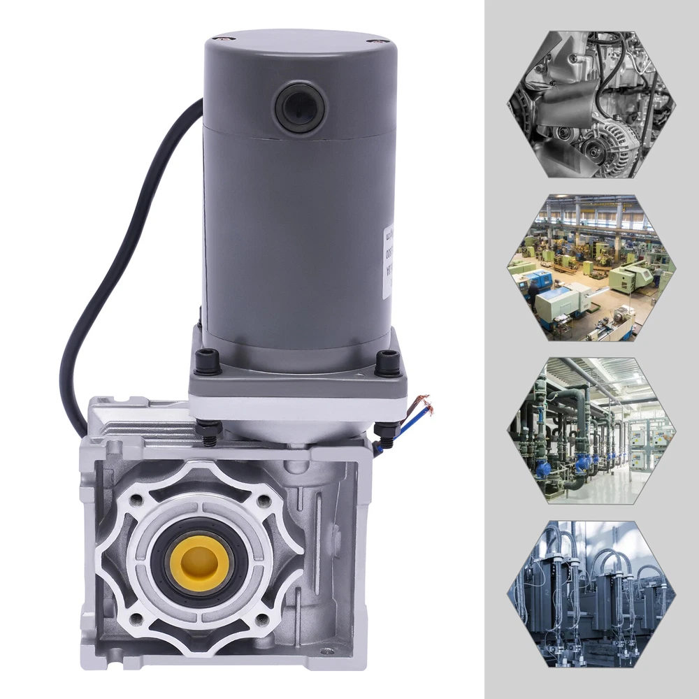 120W Gear Motor Worm Gear Gearbox Worm Gear Reducer RV Motor DC 24V 1800RPM welcome~ Key Features Build to Last: Our product uses high-quality cast aluminum and hollow steel tube material and is characterized by heat resistance , wear resistance , high quality, and long service life through die-casting and heat treatment. Powerful Motor : It adopts a single-phase pure copper motor, having the advantages of low calorific value, low loss, low noise, fast heat dissipation, and high return accuracy. Stable Operation: Both ends of the rotor are equipped with ball bearings, which can reduce friction and temperature during use to ensure stable operation. High Safety: The slow start function can effectively avoid current overshoot and protect the motor. Self-locking Function : With a self-locking function (clockwise/counterclockwise self-locking), the output shaft should not move even when the motor is power-off. High Flexibility: It has a reversing function that is flexible with normally open and closed control systems. Gapless Structure: Its gapless structure means free maintenance that is hermetically sealed. And it prevents the lubricant from easily losing, going bad, and being exchanged. Speed Adjustable : You can match it with a speed controller (not included) to adjust different speeds according to different products to achieve the desired effect. Flexible Installation: This product has been assembled when you receive it. And you can decide the installation place of this gear motor. Protective Package: To prevent the product from being damaged and bumped during transportation, we packed it with foam boxes and bubble pads to protect your products to the maximum extent possible. Buy with Confidence: We have been working hard to provide better service and quality for our customers, which is our goal. If there is any problem with our products, please contact us in time. Details Power Cable: The power cable uses pure copper coils, featuring good conductivity and a large current carrying capacity. Cap: The yellow cap can effectively protect the output bore when not in use. After removing it, you can insert the shaft in the hole. Application It is widely used in automatic barbecue/mixing/doors/windows, conveyor belts, conveyors, feeders, calender, extruders, peeling machines, blenders, cargo lifts, packaging machines, textile/printing/food machinery, vending machines, office/medical equipment, etc. Specifications Model: DM09 Gearbox: NLRV-040 Color: Gray Material: Cast Aluminum, Hollow Steel Tube Processes: Die-casting, Heat Treatment Shape: Square, Round Feature: Portable Type: DC Motor Gearbox Type: Worm Gearbox Motor: Pure Copper Motor Noise: About 50-60db Output Type: Hollow Bore Torque: 3.66kg/cm Voltage: DC 24V Power: 120W Speed: 1800RPM AMP: 6.8A Ratio: 1:50 (50K) Input/Output Flange Size: 9*9cm/3.5*3.5inch Output Bore Diameter: 18mm/0.7inch Installation Hole: 7mm/0.27inch Gear Motor Size: 9*8*14cm/3.5*3.2*5.5inch Connect Interface Size: 9*9cm/3.5*3.5inch Package Size: 30*14.5*10cm/11.8*5.7*3.9inch Net Weight: 5kg/lbs Gross Weight: 5.5kg/lbs Package Included 1* 120W Gear Motor Notes It is not suitable for positioning applications. Please note that the product does not include a speed controller. Based on the industrial standard, to meet the different needs of customers, our motor does not include a power cord. You need to purchase a power cord to connect. Please do not plug&unplug the power cable when the power is on. Please do not knock or beat the machine. The gear ratios available for this gearbox are: 10:1, 15:1, 20:1, 25:1, 30:1, 40:1, 50:1, 60:1, 80:1 and 100:1. The motor can run for a long time within the safe speed regulation range. The safety speed range of a small load: is 50% of full speed-full speed; The safety speed range of a large load: is 70% of full speed-full speed. Please allow the slight color difference caused by the shooting light and 1-3cm error due to manual measurement, and make sure you do not mind before you order. Payment Delivery details Terms of sales About us Contact us Payment We accept ebay payment 。 Fees such as import duties, taxes are not included in the item price or shipping costs. These charges are the buyer's responsibility. Delivery details Shipping: 2-9 working days to: USA Terms of sales We maintain high standards of excellence and strive for hundred percent customer satisfaction. Feedback is very important to us. We hope that you contact us immediately before you give neutral or negative feedback, so that we can address your concerns. It is impossible to address issues if we do not know about them! About us Your satis faction is our ultimate goal. We work hard to earn your trust and future business. Our certified technicians have tested each item before shipping. The unit comes with 1 year limited warranty on all manufacturing defects. a) If you receive a defective item, you may return it or ask for a discount. Please contact us within 14 days after you receive the package. b) What you returned must be intact and in its original packaging as re? u. Customer is responsible for shipping costs of the returned item. c) We will cover the cost of shipping back t with the shipping rate indicated in the registration page. We will send you a new unit or refund the full payment you paid. Thank you. Contact us Business Hour Business Hour: Monday To Friday: 8:30 AM to 5:00 PM (Beijing China time) Due to time zones, our reply to your questions may not be immediately. But within above working time, we will reply your email within 24 hours. If it's non-workdays, please kindly be patient and wait till Monday. Please contact us with ebay message. Please feel free to contact us if you have any questions. Monday To Friday: 8:30 AM to 5:00 PM (Beijing China time) Due to time zones, our reply to your questions may not be immediately. But within above working time, we will reply your email within 24 hours. If it's non-workdays, please kindly be patient and wait til