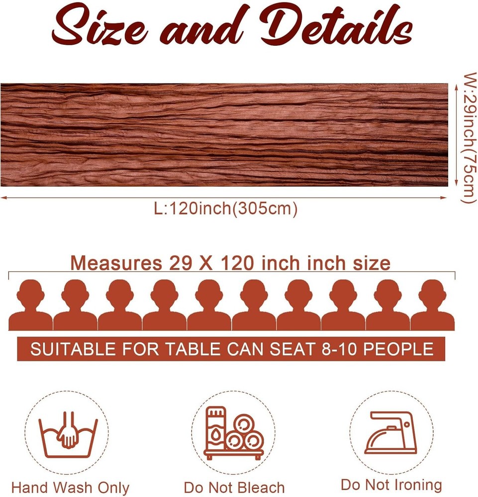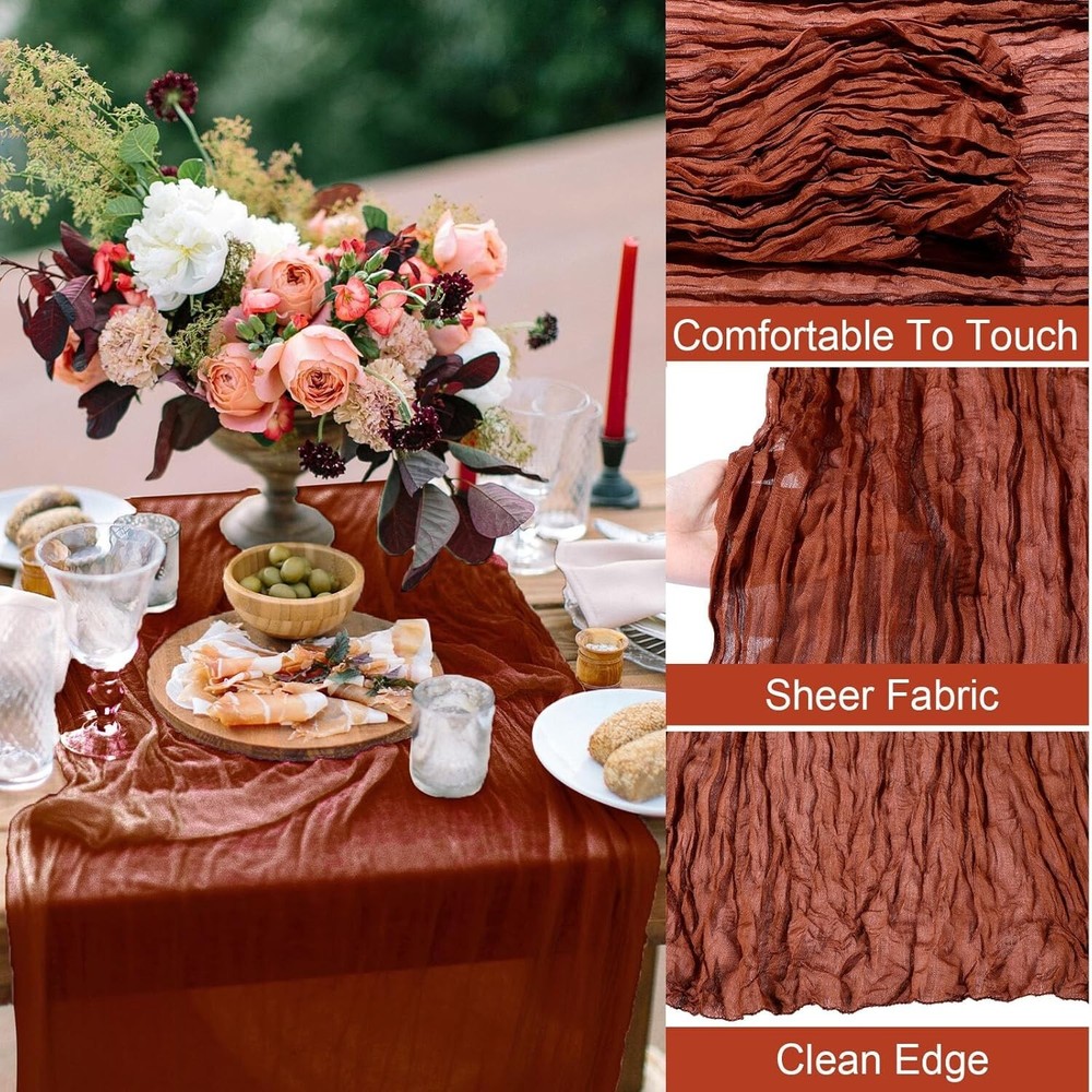 120"x29" Rustic Cheesecloth Set - 24 Light Weight Table Runners in Rust Color ‹ › ‹ › ‹ › ‹ › ‹ › ‹ › ‹ › ‹ › ‹ › 120" x 29" Rustic Cheesecloth Set - 24 Light Weight s in Rust Color Product Highlights: Sufficient Quantity: Enjoy a generous set of 24 exquisite cheesecloth s, each measuring 120 x 29 inches (10 ft long), perfect for all your decorating needs. Quality Material: Crafted from quality polyester, these boho s boast a sophisticated touch—lightweight yet robust, combining transparency with comfort. Table Decor: Edges are tightly stitched for durability, resists abrasion and maintains structure, making them ideal for various festive occasions. Gorgeous Colors: Choose from an enchanting array of colors including rust, light blue, and peach coral; harmonious combinations with fragrant flowers for a striking table presentation. Easy to Style: Versatile and chic, these runners enhance any theme—be it boho, rustic, country, or retro—delivering elegance whether for weddings or everyday dining experiences. Transform Your Events: Indulge in the beauty of your gatherings with the 120" x 29" Rustic Cheesecloth Set, designed to elevate any table setting with a touch of sophistication. Perfect for baby showers, weddings, holiday parties, or intimate dinners, these runners bring a romantic ambience that captivates guests at first sight. The romantic drape and delicate folds create a picturesque dining atmosphere. Hand-washable for easy maintenance, remember to keep them away from bleach and irons. Whether it’s an elegant wedding reception or a cozy candlelight dinner, these runners are the quintessential decor piece that emphasizes style and warmth. Why Choose Our Rustic Cheesecloth Runners? Stand out with our collection! The combination of functionality and aesthetic appeal makes these s a must-have for anyone looking to enhance their events and daily life. Add the final touch to your tablescape and let your gatherings shine with elegance—order your Rustic Cheesecloth Set today! Shipping Free & Fast Shipping - We offer free shipping to most of the USA with a normal delivery time of 3-7 days. However, due to the current situation, additional delivery time (up to 3 weeks) may be required for some items. Alternative Carriers - We may use alternative carriers (e.g. USPS, FedEx, UPS, etc.) to ensure your package arrives safely and on time. Due to the use of multiple carriers, we are unable to provide a tracking number automatically. Handling Time - Orders are processed and shipped within 1-2 business days of receiving cleared payment. Shipping Restrictions - Shipping to Alaska, Hawaii, Puerto Rico, Guam, and other US territories may incur shipping charges or delivery restrictions. Please contact us before ordering, or your order can be refunded/cancelled. State Restrictions - There may be restrictions based on your state of purchase. For example, certain items may not be shipped to California due to state regulations. Contact for Tracking Updates - If you require tracking updates or have any concerns about the delivery of your order, please feel free to contact us, and we will be happy to assist you. Return Please see our eBay Return Policy. Thank you. Payment We accept all major credit cards, PayPal, and Apple Pay for your convenience. Your payment information is secure and encrypted to ensure a safe and seamless transaction. Please complete your payment within 3 days of purchase to avoid any delays in shipping. Feedback Your feedback is extremely important to us. We strive to provide the best products and customer service possible. If you are satisfied with your purchase, please take a moment to leave us a positive review. If you have any concerns or issues with your order, please contact us before leaving negative feedback. We are committed to resolving any problems and ensuring your satisfaction. Contact Us If you have any questions or concerns, please feel free to reach out to our customer support team. You can contact us through the eBay messaging system. We are available Monday to Friday, 9:00 am to 5:00 pm EST, and we will do our best to respond to your inquiry within 24 hours. Thank you for supporting our small family business! UPC: Not Set Unit Quantity: 24 Material: 100% Polyester,Polyester,Cheesecloth Theme: Not Set Occasion: Anniversary,Apology,Baby Shower,Bar Mitzvah,Birthday,Christmas,Congratulations,Easter,Engagement,Funeral,Get Well,Good Luck,Halloween,International Women's Day,Labor Day,Mother's Day,Multipurpose,New Home,Party,Retirement,Romance,Surprise,Sympathy,Wedding,Thanksgiving Features: Hand Wash Only,Abrasion Resistant,Fade Resistant,Shrink Resistant,Deform Resistant,Light Weight,Comfortable Touch,Romantic Style Department: Adults,Boys,Girls,Kids,Men,Teens,Unisex,Unisex Baby & Toddler,Women Character: Not Set Brand: Unbranded Color: Rust Type: Table Runner Pattern: Solid Shape: Rectangular Style: Boho MPN: Not Set Item Length: Not Set Country/Region of Manufacture: Not Set Character Family: Not Set Item Width: Not Set Model: Not Set Unit Type: Unit Care Instructions: Hand Wash Only Personalize: Not Set