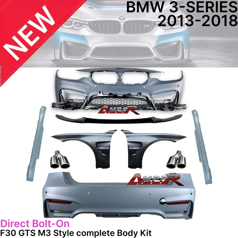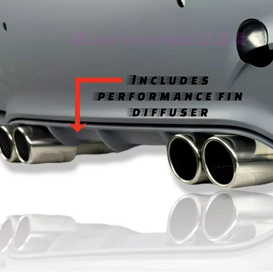 - Front bumper complete assembly - kidney grills not included - includes with fog, light holes, and without fog, light holes you can choose to use either one also comes with fog, light error, canceling resistors that plug right into your fog, light wires. If you decided not to use the fog, light covers and go with the fog light deletes to get a more authentic M3 look. - Rear bumper complete assembly - sides, skirts left and right - Muffler tips - front bumper, lower spoiler Matt black