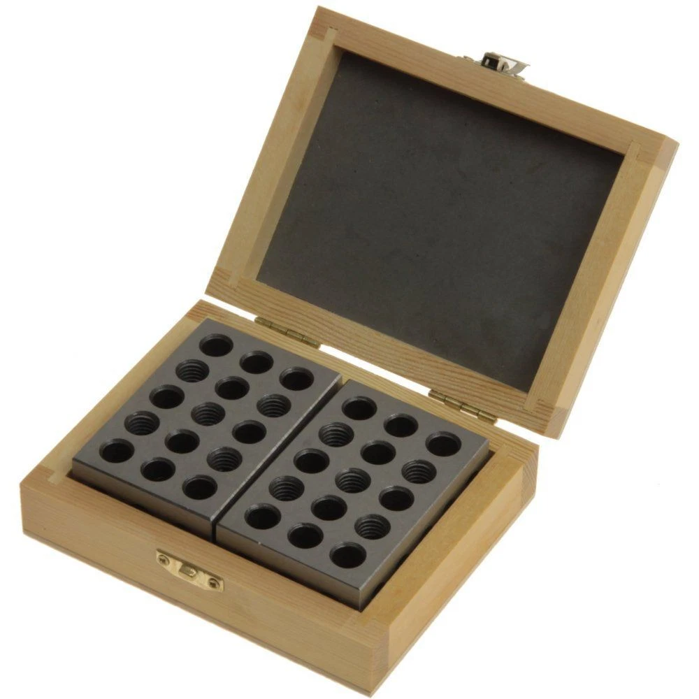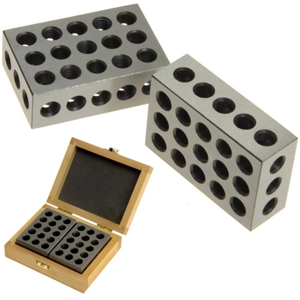 Precision 1" x 2" x 3" Block in Wood Case BRAND NEW * IN STOCK * Available For Immediate Shipping MATCHED PAIR in a FITTED PADDED WOOD CASE. Professional Quality Tool! Hardened and precision ground 1" x 2" x 3" Block Set. This matched pair of blocks is ground to tolerances of .0003". 23 holes (5 tapped 3/8"-16 TPI and 18 plain). Hardwood storage box included! Features: Precision ground and case hardened on all six sides Squareness on all sides within 0.0001" Surface finish from 6 to 16 microinches 23 through holes (5 tapped 3/8"-16 TPI and 18 plain) Complete with protective wood case. Important Information Shipping: WE SHIP FASTER and SAFER THAN MOST SELLERS! We stock all available items, and we ship from our warehouses. We never use drop shipping. Most orders are shipped the same or next business day after payment received. We ship with UPS ground or with the US Postal Service at our discretion. Some items may be shipped to PO Boxes, Please inquire before bidding. Please inquire before buying/bidding for shipping to AK, HI, PR, VI, GU, MP, APO/FPO or PO Box with city, state and zip code. Rate may be higher or shipping is not available at all. International shipping is not available Terms: Buyer assumes all risk of liability with respect to the purchase and use of the product/item. All of our pictures are photos of actual items. Colors or packaging of items delivered may vary from those photographed Payment is expected within 5 days of auction close. We can not guarantee availability of product if we do not receive payment within 7 days. Buyer is responsible for all shipping charges. We must collect sales tax if item is shipped to a California address.