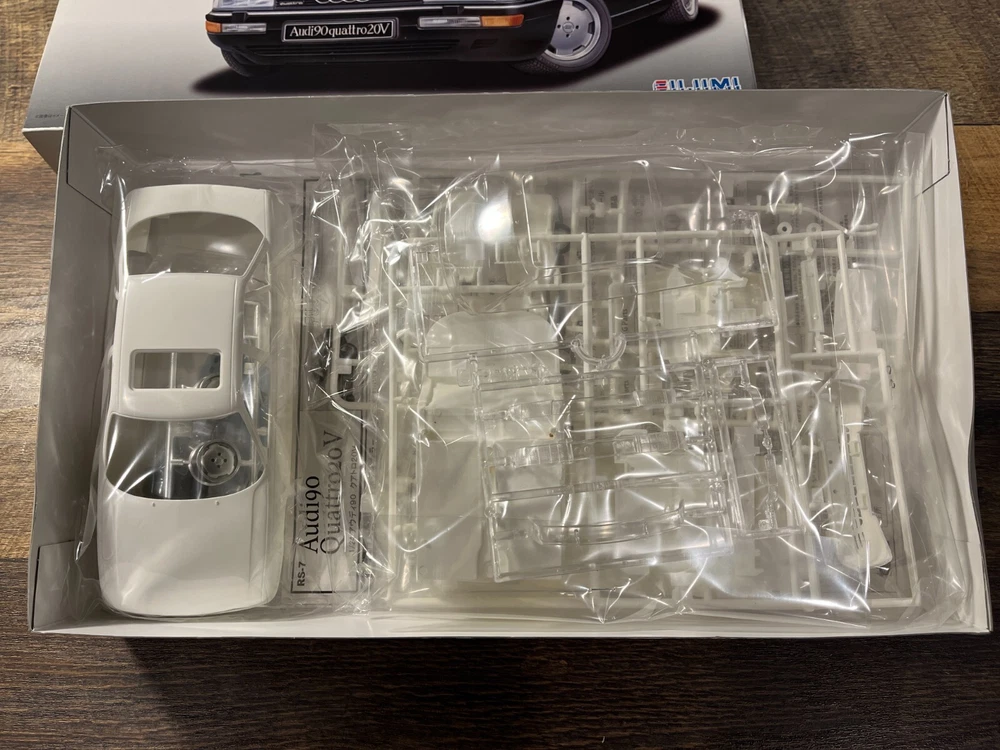 The item is a 1/24 scale Fujimi model kit of the Audi 90 Quattro 20V. It is brand new and unassembled.