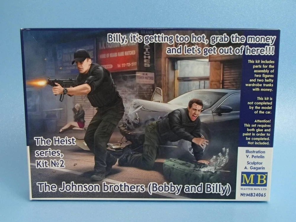 MASTER BOX MB24065 Scale Figure Kit 1:24 “The Heist series, Kit №2. Billy, it's getting too hot, grab the money and let's get out of here!!! - Plastic model kit ---------------------------- If you have a desire to procure a GREATER NUMBER OF ITEMS THAN WHAT IS CURRENTLY DISPLAYED, kindly let us know, and we will happily modify our offerings to suit YOUR EXACT QUANTITY NEEDS. ---------------------------- Scale: 1:24 Manufacturer: Master Box (Ukraine) Country/Region of Manufacture: Ukraine Condition: New in Box Features: Kit Series: Heist Series / Scale Figure Kit The kit consists of: - 2 figures in different poses Figures are not painted Glue and paint are not included The model is suitable for experienced and beginner modelers. ---------------------------- Scale model kits are a great way to create something truly unique and special. Whether you're a beginner or an experienced modeler, we have the perfect kit for you. Our kits are made from high-quality materials and come with detailed instructions, so you can be sure to create a masterpiece. We also offer a variety of accessories and tools to help you customize your model to your liking. With our scale model kits, you can bring your imagination to life. Build your favorite car, plane, or train. Create a replica of your favorite historical figure. Or even build something completely original. No matter what you choose to build, you're sure to have a rewarding and enjoyable experience. So what are you waiting for? Start building your masterpiece today!