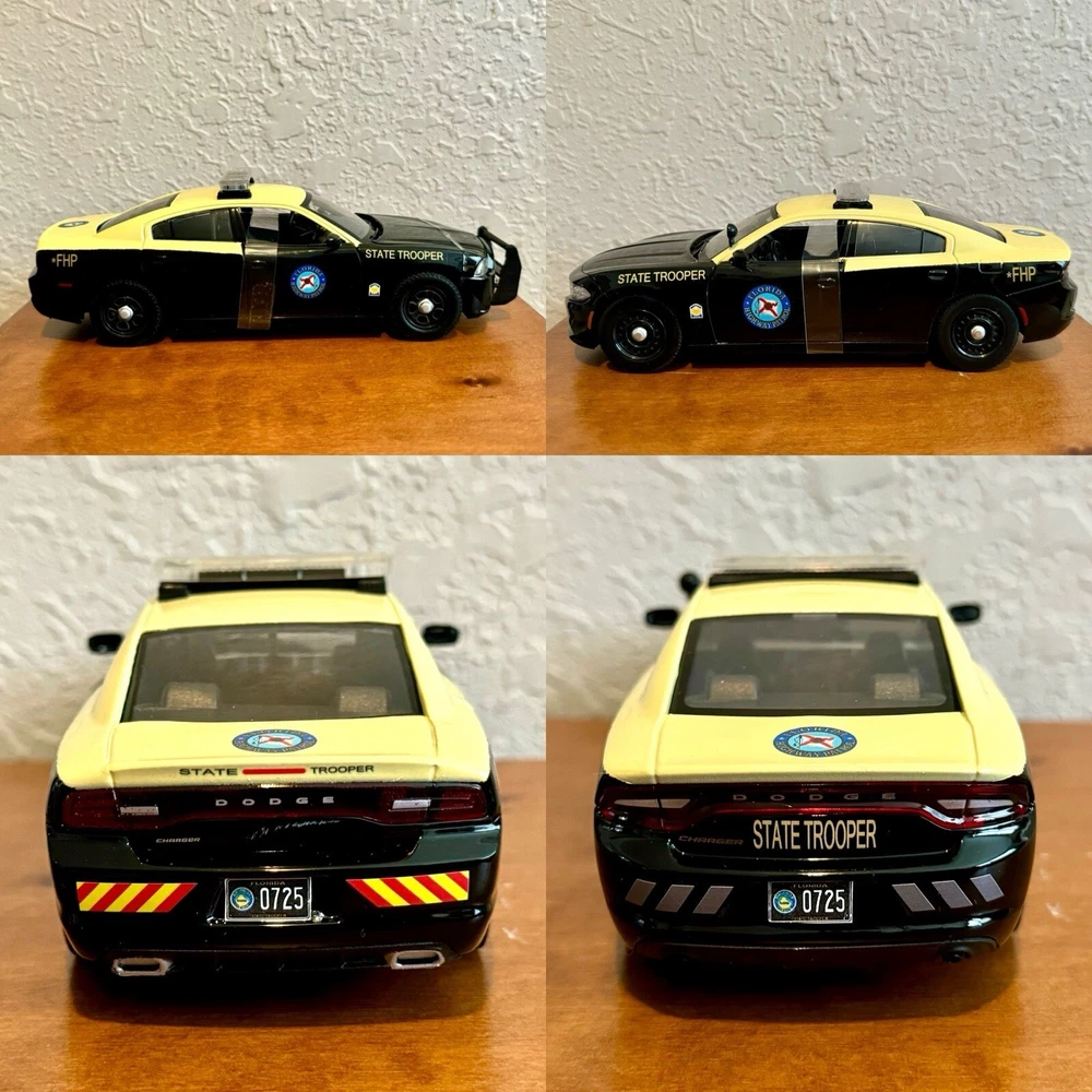 Update: 12/10/24 - Due to high volume of custom request and holidays, turnaround time may be longer than usual. Also to compensate the fees and price of material needed, price has gone back up to $129.99. Holiday sale offers maybe continue during December. IMPORTANT: these models are custom tailor made to per order request and custom build request of 3D parts and accessories added. Please note it could take up to 2 weeks time for turnaround and shipping depending on build request. Must send me a message after purchasing with details of how you want your build. Other year make and models may be available as well. I can do 2011 Dodge Charger, a challenger hellcat and the 2022 Ford Explorer as well. 1/24 - 1:24 scale Motormax brand 2023 Dodge Charger Pursuit custom Painted with FHP Florida Highway patrol decals. All decals are high quality made by PDS with high end laserjet printing, they are installed with two parts of micro solutions then clear coated by brush. This is a very detailed and accurate model input a lot of time and talent into. One of a kind unique handmade custom piece new in box. There are 3D resin printed accessories available for this model sold separately on eBay, the wraparound push bar FHP style and internal dash lights, I can purchase & install wraparound push bar upon request in agreement with a reasonable purchase offer. Priority shipping is an option upon request with appropriate shipping adjustments to your invoice if needed. Can make with or without light bar. Thanks