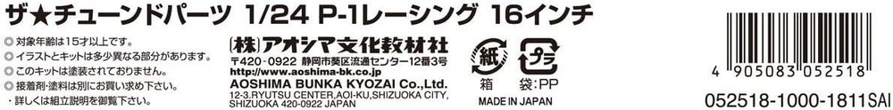 1/24 Qingdao Cultural Teaching P-1 Racing 16 Tuned Parts Model Kit #12 Description Thank you for visiting the page! Ships with careful packing from Japan. Aoshima 1/24 Scale Tuned Parts No.12 P-1 Racing 16inchJapan Import - Plastic Model Accessory Kit # 52518Highly detailed plastic model accessory kit by Aoshima. Cement, paint and tools required. Make sure this fits by entering your model number. This model accessory kit might require assembly and painting. Cement, tools and paint are not included. Contains small parts, recommended for ages 14 & up. Skill level 3. THIS IS NOT A TOY. Decals included for extra detail and realism. Highly detailed. Parts are plastic textured to resemble other materials. Illustrated assembly instructions and painting scheme included. This item ships to us direct from Japan, which means all packaging, promotional materials and booklets might be in Japanese only. Shipping FedEx, Japan Post, USPS (Not available for selection) Terms of Sale *As a rule, tracking numbers are uploaded within 10 business days of purchase. *In principle, the package will be delivered within 3 weeks after the tracking number is uploaded, but delays may occur depending on international conditions. Please contact your local post office for details. International Buyers - Please Note: Import duties, taxes, and charges are not included in the item price or shipping cost. These charges are the buyer's responsibility. Please check with your country's customs office to determine what these additional costs will be prior to bidding or buying.