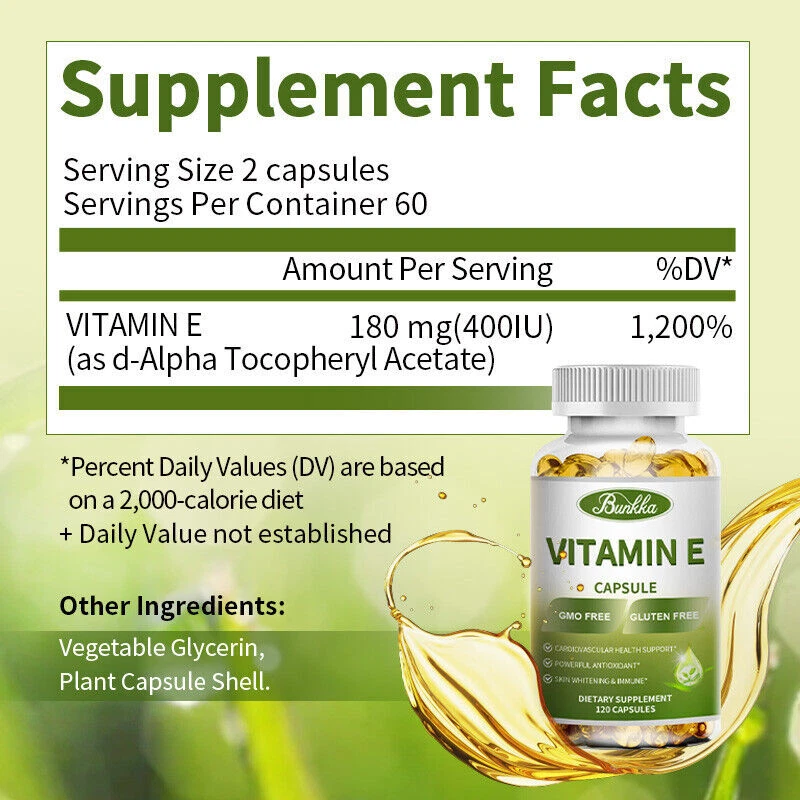 ☑ If you not received the package in shipping time, please email us, Instead of directly opening the item Not Received requestThanks for your understanding .we will definitely help you solve the problem ^ ^ Product Details: Type: Vitamin E Capsules Brand Name: Bunkka Shelf Life: 2 Years FDA Number:11821751536 Usage: Adults take two(2) of these capsules daily with water and a meal. Storage: After opening, please seal and store in a cool place away from direct sunlight. Features: ▶ Powerful Antioxidant; Vitamin E is the body's primary, fat-soluble antioxidant; As an antioxidant, it helps fight cell-damaging free radicals; Free radicals can cause oxidative stress in the body, which may contribute to the premature aging of cells. ▶ POTENT FORMULA: Quick-release softgels contains 1000iu (670mg) per serving of Vitamin E. ▶ Skin & Immune Support: Vitamin E provides nutritional support for the skin, and the immune system. ▶ Optimal Absorption:This formulation provides Vitamin E (as d-Alpha Tocopherol) and d-Gamma, d-Delta, and d-Beta Tocopherols; It is offered in oil-based softgels to support optimal absorption and assimilation. ▶ NATURALLY FREE OF: Gluten, Wheat, Yeast, Soy, Artificial Flavor, Artificial Sweetener & Non-GMO. What you can get ? 120pc vitamin E capsules Notes: These statements have not been evaluated by the Food and Drug Administration. This product is not intended to diagnose, treat, cure or prevent any disease. --------------------------------------------------------------------------------------------------------------------------------------------------------------- Note -- About the color:due to the different light and monitors, the real color might be a little different from the pictures. -- About the size:manual measurement, errors cannot be avoided. -- Other things in the pictures are not included. -- These statements have not been evaluated by the Food and Drug Administration. This product is not intended to diagnose, treat, cure or prevent any disease. -- Before purchasing this product, please check whether you are allergic to the ingredients of the product. If you have allergic symptoms, please stop using this product. --------------------------------------------------------------------------------------------------------------------------------------------------------------- After-sales service ☆ Our purpose is to provide quality services to buyers, if you have any questions, please contact us! ☆ If you are satisfied after receiving the product, hope you willing leave us a positive feedback . ☆ If there are any problems with the product or you have any confused, please contact us first , we will reply to your message as soon as possible, and do our best to solve the problem for you. (Non-working day messages may be replying a bit slow, please understand!) --------------------------------------------------------------------------------------------------------------------------------------------------------------- Payment ►Payment is needed to receive within 5 days after deal.If not we will close the transaction. ► We only accept PayPal . ► Please make sure you have a valid/confirmed PayPal account prior bidding. And please make sure that your PayPal registed address is the same with your eBay registed address. ► Import duties, taxes and charges are not included in the item price or shipping and handling. These charges are the buyer’s responsibility. --------------------------------------------------------------------------------------------------------------------------------------------------------------- Shipping ☆ We will arrange shipping for you within 24-48 Hours after payment cleared except the holidays . ☆ We always send the item to the address you give us on PAYPAL . If you have changed your address, or want us to ship to another address, please change to the new address when you pay us with PAYPAL, otherwise we will not be responsible if the package is lost. ☆ We hope it arrive on time. Sometimes,shipping time will be delayed by the courier company as for bad whether or othersituation. ☆ Sellers are not responsible for service transit time. Transit times are provided by the carrier, exclude weekends and holidays, and may vary with package origin and destination, particularly during peak periods. Thank you for your understanding :) --------------------------------------------------------------------------------------------------------------------------------------------------------------- Returns Policy ★Note: Please contact us via ebay message before starting a return request, we will deal with your issue quickly and efficiently. ☆ Items can be returned for exchange or full refund within 5 days from the date you receive your merchandise if they are defective. We are not responsible for any purchase after this 5-day period. ☆ Please obtain the RMA number & returned address for any return items. ☆Return items MUST have all ORIGINAL packaging and accessories. ☆Select a reason: please choose "It's the wrong size or doesn't fit" ☆We will replace items which are malfunctioning, for 20 days from the date you received. ☆Items which have physical abuse are not covered by the warranty. Refunds are only offered for defective products reported within 5 Working Days upon receipt. --------------------------------------------------------------------------------------------------------------------------------------------------------------- About us ☆ Please use the link "Ask the Seller Question" or send "eBay message" in you " My eBay " to contact us if you have problems , special requests or suggestions, we are very glad to help you anytime. Due to the 12 hours time difference between West and Asia we will reply you within 24-48 hour. ☆ Please leave us the positive feedback and good detailed seller rating after you received our package and satisfied with it. As you know, every seller works hard for the positive feedback a