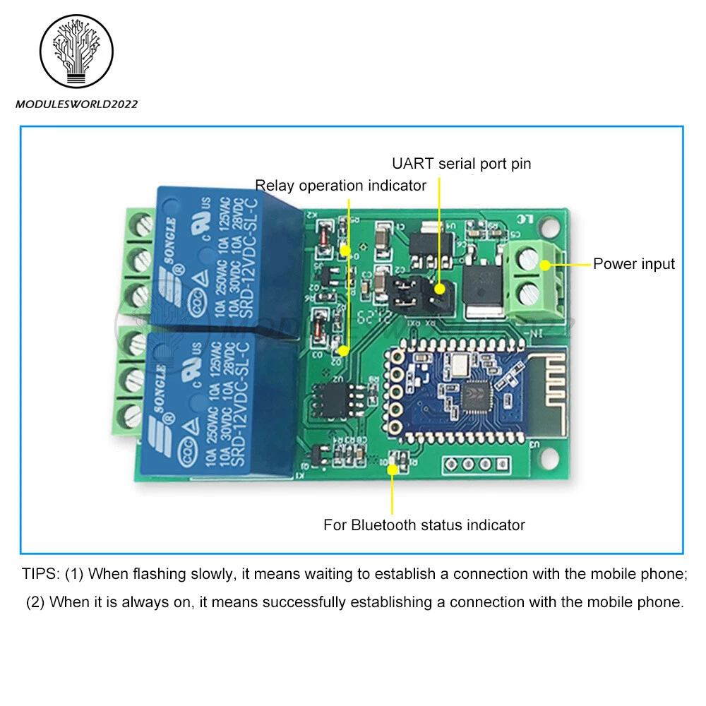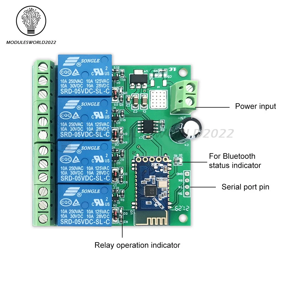 Store Categories Store Categories Other Product View Details Single-Channel: 1: Widely used 2: Control distance: 10M (open environment) 3: Provide Bluetooth relay control app 4: Stable performance 5: Easy to understand The single channel Bluetooth relay module includes one channel 5V / 10A or one channel 12V / 10A relay module and spp-c Bluetooth serial port slave module. The switch of the relay can be controlled by sending instructions through the mobile phone app. It is a new and modified version, which is more practical and more stable. Function description: 1. Onboard high-performance MCU and spp-c Bluetooth 2.1 slave module; 2. Provide Bluetooth relay control app; 3. Control distance: 10M (open environment); 4. Working voltage: DC12V; 5. On board 1-way 12V, 10a / 250V AC, 10a / 30V DC relay, which can be pulled in for 100000 times continuously, with diode leakage protection and short response time; 6. Onboard Bluetooth status indicator and relay indicator; 7. UART debugging interface is reserved, which can be used to modify Bluetooth pairing password, etc. 8. Board size: 62 * 20MM 1. Connect the power supply: the in + and in - of the module are respectively connected to the positive and negative poles of 5V / 12V (subject to the actual purchase) power supply. 2. Use app to control 1-way relay. There are two apps available: one is a special app for Bluetooth relay developed by LC electronics, and the other is a general app downloaded from Android application mall 2.1. Instructions for use of special app for Bluetooth relay: 2.1.1. Install the "lcbs test program" app and Bluetooth serial port transmission tool on the Android mobile terminal. Open the app and click "search Bluetooth". The default Bluetooth names are generally bta-04, jdy-30, spp-c, etc. connect the mobile phone to the Bluetooth module, enter the password and click OK (the initial password is 1234). After the connection is successful, the blue light changes from slow flashing to constant on, and then click the box to control the switch of the relay. detailed list: 1 * Relay module 2 Channel: 1. Description: The 5V dual circuit Bluetooth relay module consists of 2 5V//10A relay modules and a SPP-C Bluetooth serial slave module. The switch of the relay can be controlled by sending instructions from the mobile APP. 2. Functions: 1>. On-board loaded STM8S high performance MCU and SPP-C Bluetooth 2.1 slave module 2>. Provide Bluetooth relay control APP 3>. Control distance: 10M (open environment) 4>.Operating voltage: DC5V/12V(Optional) 5>. On-board 2 way 5V, 10A/250V AC 10A/30V DC relay, can be continuously absorbed 100 thousand times. With diode purging protection, the response time is short. 6>. On-board Bluetooth status indicator and relay indicator 7>. Reserve UART debug interface and STM8 SWIM program download interface 8>. Board size: 40*64.5mm 3. Operation description: 1>. Connection power: the IN+ and IN- of the module are connected to the positive and negative poles of the 5V power supply 2>. Use APP to control 2 way relay Bluetooth Relay General APP Usage Description: 2.1>. Android mobile phone installation APP “BlueSPP-37”, Bluetooth serial port transmission tool, used to send relay control instructions. Click “switch”. Then press the gray square in the interface, and then input the name and content of the 2 relay control instructions (the instruction format is HEX) respectively. 2.2>. Open “BlueSPP-37”, APP, click "connect". The mobile phone is connected to the Bluetooth module. After the connection, the blue light turns from slow flash to steady light. Click on the gray square can send instructions to control the switch of the relay. 3>. Additional functions (as USB relay) instructions: Prepare a USB to TT serial module, TTL module GND, TX, RX respectively relay module GND, TX, RX. On the computer, open the serial port debugging software (such as SSCOM32, select baud rate is 9600, send sixteen A0 (HEX) form A0 0101 A2 and A0 0201 A3, you can turn on the first, second way relay separately. The A0 0100 A1 and A0 0200 A2 are sent in the form of sixteen (HEX), and the first, second road relay can be closed respectively. Take the example of opening the relay as an example: 4 Channel: Description: Usage: Telecommunication Voltage: 5V Power Source: DC Theory: bluetooth relay LC 12V Bluetooth 4-channel relay module equip with SPP-C Bluetooth 2.1 slave module and 8 bit high performance MCU, you can control the relay with cellphone APP directly. Protect Feature: Epoxy Contact Load: Low Power Model Number: bluetooth relay module The function and characteristics: 1, On-board N76E003/STM8S003 and SPP-C Bluetooth 2.1 module 2, The relay can be controlled with APP 3, Effective control distance(on open area): 10m 4, Power supply: 12V 5, On-board 12V, 10 A / 250 v AC 10 A / 30 v DC relay, absorb 100000 times continuously, Module with diode effusion protection, short response time 6, On-board optocoupler isolation components, anti-interference ability is strongly 7, On-board Bluetooth indicator and relay indicator LED 8, On-board preserved UART debug interface(Baud rate is 9600) and MCU program interface Interface: IN+, IN-: 12V power input TX, RX: UART communication SWIM, NRST: MCU program interface LED D2/D3/D4/D5(red): Relay indicator LED D1(blue): Bluetooth state indicator, the description of D1 as below: (1)It's means wait for establishing connection with the APP when D1 blink slowly (2)It's means the Bluetooth connect with the APP successfully when D1 on all the time colour:blue Material:PCB size:62.7*63.2mm Package Contents: 1 * Module Shipping Policy Payment Method Returns Policy Shipping Policy Payment Method Returns Policy Home Payment Shipping About us Contact us Copyright©2018 datacaciques Home Payment Shipping About us Contact us Store Categories Store Categories Other Product View Details Single-Channel: 1: Widely used 2: Control distance: 10M (open environment) 3: Provide Bluetooth relay control app 4
