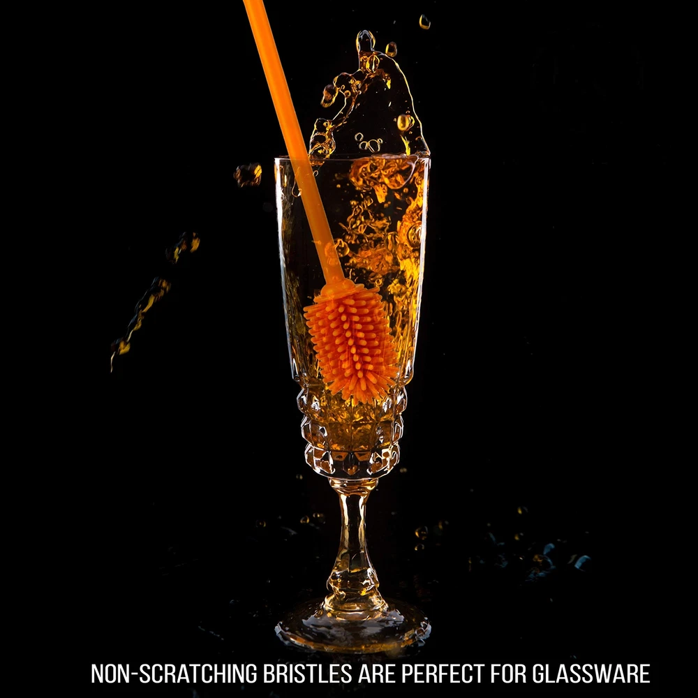 HOW TO USE: Be aware that silicone is non-absorbent, so it CANNOT hold soap, lather up or get sudsy like a sponge. For optimum cleaning results when using our bottle brush, first add warm, soapy water to your container, and then scrub away. The minimum diameter neck the brush will squeeze into is 1 1/8” wide, so it won't fit in beer, wine, swing-top or kombucha bottles. DEEP CLEANING POWER: With its 12.5” long, non-flexible steel shaft and rugged silicone bristle head, our water bottle brush gets deep down into tall, narrow containers such as insulated water bottles, flasks, thermoses, baby bottles, vases and skinny glassware. BETTER HYGIENE FOR YOU: Our silicone water bottle cleaner repels unpleasant odors and stains - unlike sponge and nylon brushes that fall apart, and get smelly after a few uses. This bottle scrubber prevents nasty grime build-up which is more hygienic and healthier for your family NO MORE SCRATCHES: The easy-clean, non-scratching silicone bristles of our 12.5” long bottle cleaning brush are tough on gunk, yet gentle enough to leave your favorite vase, glass water bottle, pitcher, blender and delicate glassware clean and scratch-free SAY GOODBYE TO GRUNGY CONTAINERS: It’s great as a sports bottle cleaner brush, for swishing slimy dregs from your flask, scrub soup from your thermos, or blitz residue in your baby bottle. Our 12.5” long bottle brush is perfect as a travel bottle brush too! LONG LASTING & DURABLE: The sturdy bristles of the rugged bottle brushes for cleaning will keep their shape, and won’t break off or fall apart. Our long bottle brush fits in 1 1/8” width bottle necks or larger, and heat-resistant up to 400°F.