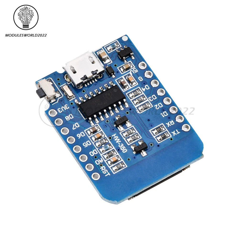 Store Categories Store Categories Other Product View Details Descriptions: This is D1 mini, it is a mini WIFI board based on ESP-8266EX. 11 digital input/output pins, all pins have interrupt/pwm/I2C/one-wire supported(except D0 ) 1 analog input(3.3V max input) a Type-C/Micro USB connection How to get started in Arduino: Setup driver Before you use miniD1 boards, you need setup CH340g driver. Python On Windows you need install Python 2.7.10. On Linux & MAC OSX, you don't need install it, comes preinstalled with OS. Installing Hardware package There is two ways to install hardware package, Boards Manager or GIT Installing with Boards Manager Starting with 1.6.4, Arduino allows installation of third-party platform packages using Boards Manager. We have packages available for Windows, Mac OS, and Linux (32 and 64 bit). <1>. Install Arduino 1.6.7 from the Arduino website. <2>. Start Arduino and open Preferences window. <3>.Enter http://arduino.esp8266.com/stable/package_esp8266com_index.json into Additional Boards Manager URLs field. You can add multiple URLs, separating them with commas. <4>. Open Tools→Board:xxx→Boards Manager and install esp8266 by ESP8266 Community (and don't forget to select your ESP8266 board from Tools > Board menu after installation). Installing with GIT (Recommend): We recommend using GIT to install Hardware package, you can always get the latest version of it. Packge Included : 1/2/5/10Pieces ESP8266 ESP-12 ESP12 WeMos D1 Mini WIFI Dev Kit Development Board NodeMCU Lua Shipping Policy Payment Method Returns Policy Shipping Policy Payment Method Returns Policy Home Payment Shipping About us Contact us Copyright©2018 datacaciques Home Payment Shipping About us Contact us Store Categories Store Categories Other Product View Details Descriptions: This is D1 mini, it is a mini WIFI board based on ESP-8266EX. 11 digital input/output pins, all pins have interrupt/pwm/I2C/one-wire supported(except D0 ) 1 analog input(3.3V max input) a Type-C/Micro USB connection How to get started in Arduino: Setup driver Before you use miniD1 boards, you need setup CH340g driver. Python On Windows you need install Python 2.7.10. On Linux & MAC OSX, you don't need install it, comes preinstalled with OS. Installing Hardware package There is two ways to install hardware package, Boards Manager or GIT Installing with Boards Manager Starting with 1.6.4, Arduino allows installation of third-party platform packages using Boards Manager. We have packages available for Windows, Mac OS, and Linux (32 and 64 bit). <1>. Install Arduino 1.6.7 from the Arduino website. <2>. Start Arduino and open Preferences window. <3>.Enter http://arduino.esp8266.com/stable/package_esp8266com_index.json into Additional Boards Manager URLs field. You can add multiple URLs, separating them with commas. <4>. Open Tools→Board:xxx→Boards Manager and install esp8266 by ESP8266 Community (and don't forget to select your ESP8266 board from Tools > Board menu after installation). Installing with GIT (Recommend): We recommend using GIT to install Hardware package, you can always get the latest version of it. Packge Included : 1/2/5/10Pieces ESP8266 ESP-12 ESP12 WeMos D1 Mini WIFI Dev Kit Development Board NodeMCU Lua Shipping Policy Payment Method Returns Policy Shipping Policy We will arrange shipping for you within 24 Hours after payment cleared except the holidays. -We ship items to Worldwide. Thank you! -we will ship out the order in 1-2 business days after payment cleared .Since it is international shipping ,delivery time is about 15--28 business days to arrive to most countries. Payment Method We accept PayPal payment ONLY, and must be received within 5 days from the date of purchase. 2. It is easy and safe for you to pay by credit cards, debit cards, bank transfers and PayPal account balances. 3.Buyers are responsible for import duties,custom fees and taxes, if any, please check your country. Returns Policy 1.We believe our items are so outstanding. We are convinced you will be happy with your Purchase. 2. If you do not satisfy with our items. Please simply return to us within 30 Days in original condition. Just pay for the returned postage. Then we can issue full refund or resend the item to you after the returned item arrived at our warehouse. 3. Please include your eBay ID and item number with any email requests.