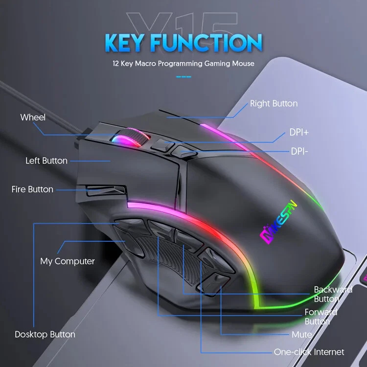 12800DPI Free Weight Macro RGB Gaming Mouse 12 Programmable Keys Game Mouse RGB Light Max to 6 levels For pc mac gun PUBG Laptop 13 kinds RGB backlight Equipped with 13 knids of RGB cool lighting effects of about 16.8 million colors. Between the illuminating of light and shadow, the trend becomes extraordinary. SKIN-LIKE FEEL COMFORTABLE Ergonomic design, the streamline curve fits the player's fingers better, Skin-like feel, comfortable grip, quicker operation. FREE WEIGHT ADJUST ABLE FEEL In order to adapt players with different hand feel, 5g-10g-15g counterweight irons are equipped. Give it a better feel and stability by customizing the weight. How To Macro 1.Click Macro 2.Build New Group 3. Build New macro 3. Define new name 4. Click the record button. 5. Type the keys you want to program. When finishing, please type Stop. 6. THIS IS VERY IMPORTANT. There are 2 ways to upload the macro, Macro and Convert K1. If you choose Macro, you only need type Programmed key on mouse. It will show the programmed information. Take an example, We take "hello" macro to key 6. If you press key 6,it will show "hello". Convert K1 like a switch. If you choose it, you type Programmed key on mouse,liking open switch, and than you press left button. It will show the programmed information. Finally, you type the Programmed key again, liking close switch. You press left button, there is no information out. It likes a switch. When you use, you open it. Take an example, We take "hello" macro to key 6. If you press key 6 and than type left button. it will show "hello". If you do not press left button, it will show nothing. You press key 6 again, meaning close switch. 7. Click √ to save. GUN GAME