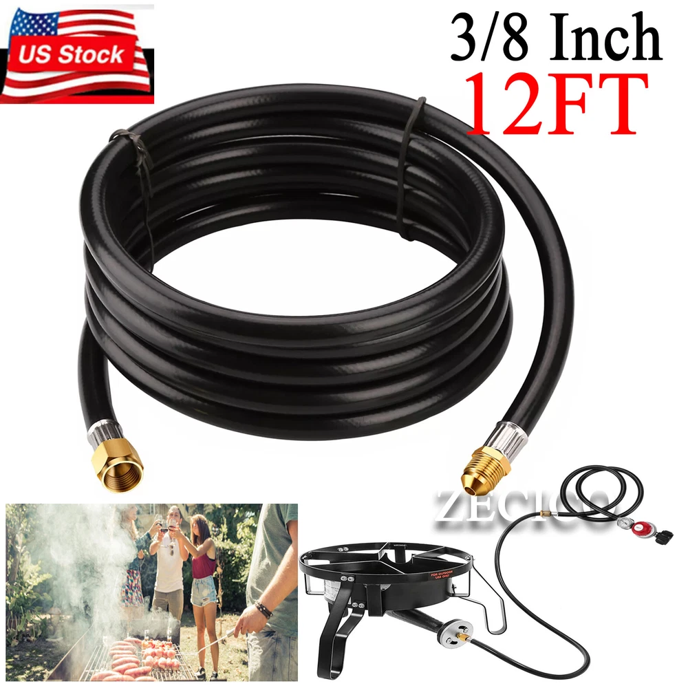 12FT Propane Extension Hose, 3/8 inch Female Flare Fitting x 3/8 inch Male Flare Fitting Propane Hose for Gas Grill, RV, Turkey Cooker, Propane Fire Pit, Heater, Generator, Gas Grill, and More Features and further details 12 Feet long propane hose, extended propane hose with 3/8'' Female Flare Fitting x 3/8'' Male Flare Fitting , can meet your BBQ needs. Convenience : 12FT propane appliance extension hose is convenient for you. You don't have to move your larger fuel tank. and it can be used in addition to the existing hose for more length between the propane tank and the gas appliances. Good Quality : Our propane extension hose is made of 100% solid brass end and high quality rubber hose construction withstands weather, scratching, denting and corroding, more flexible and durable. Application: WADEO propane extension hose can be used for BBQ Gas Grill, Turkey Cooker, Propane Fire Pit, Generator, BBQ Gas Grill, Heater and More. Attention: The propane hose is ONLY use for low pressure propane appliance. Please connect your low pressure regulator to a standard propane appliance. 12 FT Propane Extension Hose, 3/8 inch Female x Male Flare Fitting Propane Hose Specification Length: 12 Feet. 3/8'' Female Flare Fitting x 3/8'' Male Flare Fitting. Attention: ONLY use for low pressure propane appliance. Use for: Gas Grill, Turkey Cooker, Propane Fire Pit, Generator, BBQ Gas Grill, Heater and More.
