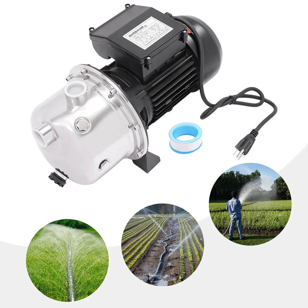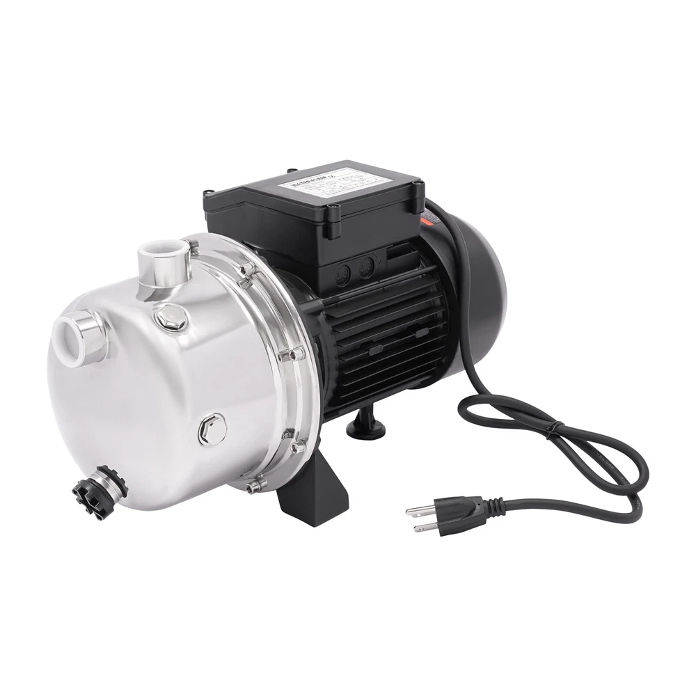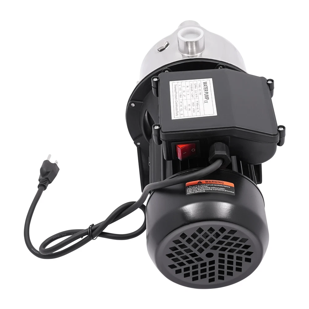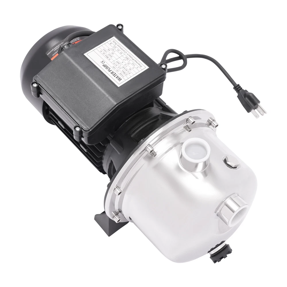 Specifications Material: Stainless Steel, Silicone Process: Painting and Polishing Motor: Pure Copper Motor Mounting Type: Floor Standing Power Source: Corded Electric IP Level: IP44 Waterproof Lever: IP68 Capacitance: 35μF Max Temperature: 55°C/131°F Voltage: 110V, 60Hz Input Current: 7.0A Power: 0.8KW(1.2hp) Rotating Speed: 3420rpm Water Pump Inlet: 2.54cm/1in Water Pump Outlet: 2.54cm/1in Max Sprinkler Volume: 3m³/h/792.52GPH Noise: 0-30db Maximum Lift Height: 45m/147.64ft Maximum Pressure: 4.5bar Maximum Suction: 8m/26.2ft Maximum Flow Rate: 3.2m³/h/845.35GPH Power Cord Length: 1m/3.28ft Gross Weight: 8.5kg/18.74lbs Product Size: 38*20*22cm/14.96*7.87*8.66in Package Included 1*Water Pump 1*Multilingual Manual 1*Sealing Tape 1.2HP 110V Shallow Well Jet Pump, Lawn Irrigation Pump for Home Farm Garden Lawn 1.2HP Portable Shallow Well Pump, Draining Irrigation Pump for Lawn, Water Pump Description If you are looking for efficient and simple irrigation methods, take a look at our water pump. Made of high-quality silicon and stainless steel with painting and polishing processes, this product provides quality assurance for your long-term use. Max 0.8kw power, 3420 rpm, and max.147.64ft lift make your work easier and more efficient. We believe it will be your assistant in agricultural production, breeding, or other work. Key Features Build to Last : The product is made of high-quality silicon and stainless steel, and adopts painting and polishing processes making it solid, and not prone to rust and corrosion, so it can remain beautiful and practical for a long time. High Efficiency: The 0.8KW pure copper motor, 3420rpm speed, 845.35GPH maximum flow rate, 26.2ft maximum suction, 4.5 bar maximum pressure, and tight bearing make your pumping and watering work faster and easier. Delivery Assistant: The maximum lift of the pump is 147.64ft, which allows you to irrigate farmland, fish ponds, and orchards for a long distance, saving the time and cost of manual transportation. Safety Guard: It has built-in thermal, IP68 waterproof level, overload protection, and is equipped with uniform heat dissipation holes and a fan, which can timely reduce the temperature during operation, and reduce potential safety hazards, thus extending the service life of the product. Good Sealing Performance: The product comes with a PTFE sealing tape, you can wrap it around the area that needs to be sealed to avoid water ingress or leakage, bringing you a better using experience. Low Noise: It runs very smoothly with little vibration and noise( 0-30db ), which can bring you a quiet working environment. Easy to Use: With a detailed instruction manual, you just need to follow the steps in the manual to pump, sprinkle, etc. Ideal Gift: Such a practical product is an ideal gift for family and friends who need garden watering and vegetable garden irrigation. Protective Package: To prevent damage to the product due to bumps in transit, we place air column bag and foam to protect the product as much as possible. Quality Service: We are honored that you have chosen our product. We have sufficient confidence in the quality of the product so that you can buy it confidently. But if you have any questions, you can contact our customer service, he will patiently answer and solve your problems . Details Standard Water Inlet and Outlet: The product adopts an NPT 1-inch large diameter water inlet and outlet, which can be matched with different types of water pipes and is very practical. Sealing Ring: The silicone sealing ring is used to avoid water leakage and reduce waste. Support Feet: They can better maintain the stability of the product and ensure smoother operation. Application It is suitable for sprinkler systems, irrigation, daily water delivery, and drawing water from shallow wells, ponds, lakes, rain barrels, tanks, and more. It can be used as a sprinkler pump, well pump, or booster pump and can pressurize your home for solar, washing machine, water heater, tap water, shower, etc. Specifications Material: Stainless Steel, Silicone Color: Black, Silver Process: Painting and Polishing Motor: Pure Copper Motor Assembly Required: Yes Mounting Type: Floor Standing Power Source: Corded Electric Plug Type: US Standard IP Level: IP44 Waterproof Lever: IP68 Capacitance: 35μF Max Temperature: 55°C/131°F Voltage: 110V, 60Hz Input Current: 7.0A Power: 0.8KW(1.2hp) Rotating Speed: 3420rpm Water Pump Inlet: 2.54cm/1in Water Pump Outlet: 2.54cm/1in Max Sprinkler Volume: 3m³/h/792.52GPH Noise: 0-30db Maximum Lift Height: 45m/147.64ft Maximum Pressure: 4.5bar Maximum Suction: 8m/26.2ft Maximum Flow Rate: 3.2m³/h/845.35GPH Power Cord Length: 1m/3.28ft Gross Weight: 8.5kg/18.74lbs Product Size: 38*20*22cm/14.96*7.87*8.66in Package Size: 46*30*26cm/18.11*11.81*10.24in Package Included 1*Water Pump 1*Multilingual Manual 1*Sealing Tape Notes Adding water to the pump head until it is full helps to speed up the inlet flow rate. The inlet pipe(not included) shall not be excessively bent and the end pipe (not included)shall be completely submerged. Please note that it is only suitable for clean water. Please read the operating manual completely before use, and pay particular attention to the safety instructions included. Please discharge the waste water if not used frequently and please do not run the pump without water. Please do not wet the motor before first use, and fill the pump head with water to wet the impeller. Please perform a water test after the installation is complete to check for leaks and other conditions. Please make sure that the air inlet joint or pipe is completely sealed and air-tight, and that hose used for the water inlet pipe is not sucked and deflated. Check the coupling to see if the internal drive is damaged. Please allow the slight color difference caused by the shooting light and 1-3cm error due to manual measurement, and make sure you do not mind before you order. Payment Delivery details Terms of sales About us Co