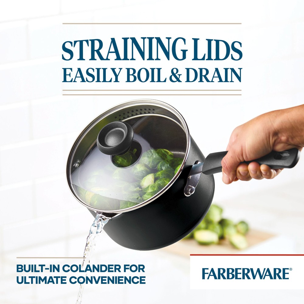 You may also like 28 Qt Clear Under Bed Plastic Storage Box Set of 4 Stackable Tote Bin With Lids 34.51 USD Free shipping 9-PCS Non-stick Cookware Set Pots & Pans Saute Pan Covered Dutch Oven with Lids 35.93 USD Free shipping High Back Ergonomic Mesh Office Chair W/ Adjustable Headrest & Armrests Chair US 164.96 USD Free shipping 10.5"x15" Flap Size Extra-Large Thermoplastic Pet Door with Telescoping Frame 80.37 USD Free shipping Automatic Pet Feeder 5 Meal Food Dispenser Wet/Dry Food w/Programmable Timer 83.06 USD Free shipping Laundry Hamper w/Lid 10L Wicker Laundry Baskets Foldable 2 Removable Liner Bags 61.03 USD Free shipping Outdoor Cat House with Insulated Liner Weatherproof Feral Cat Shelter for Winter 110.44 USD Free shipping Mini Reciprocating Sander USB Quick Charging Sanding Pen With 8pcs Sanding Head 55.83 USD Free shipping Medium 12" Black Metal Pillar Candle Holder Lantern Farmhouse Event Decoration 19.27 USD Free shipping Protector Series Single Scoped or Double Non-Scoped Rifle Case Range Gun Storage 68.69 USD Free shipping 40,000 BTU Pyramid Flame Glass Tube Propane Outdoor Patio Heater Tower w/Wheels 518.66 USD Free shipping Knife Sharpening Stone Set Dual Grit Whetstone Knife Sharpener w/Leather Strop 57.15 USD Free shipping The dishwasher-safe Farberware Easy Clean Aluminum Nonstick 12-Piece Pots and Pans/Cookware Set includes an essential assortment of pots and pans for everyday cooking. The set includes four Prestige nylon kitchen tools. Glass lids with easy-to-grasp knobs seal heat and moisture inside pots and pans during cooking. Oven safe to 350?F, the cookware is constructed from heavy-duty aluminum that heats quickly and evenly, reducing hot spots that can burn foods. Double-riveted handles help cooks move around the kitchen with confidence, and the nylon kitchen tools included are ideal for nonstick surfaces. The cookware set is dishwasher safe for the perfect combination of function and style. Hard Anodized Nonstick Cookware Set 17 Piece Oven Safe Pots and Pans with Lids 350.94 USD Free shipping 2 Pack Extra Strong Self-Sealing Bicycle Tube 16" X 1.75-2.125" Bike Inner Tube 21.54 USD Free shipping 650mAh Power 155 in 1 Mini Cordless Electric Screwdriver Set 3 Torque Settings 54.54 USD Free shipping Portrait Glass LED Aquarium Kit 5 Gallon Fish Tank Hidden Filtration Home Office 89.36 USD Free shipping 400-mm 5 x 18 magnification Telescope w/14-inch Aluminum Tripod Children Ages 8+ 41.92 USD Free shipping 3 Gal 3.5 Peak HP Wet/Dry Shop Vacuum Cleaner Carpet w/Swiveling Casters Blower 53.93 USD Free shipping Semi Automatic Espresso Machine Milk Frother WiFi Connected BuiltIn Bean Grinder 752.66 USD Free shipping Portable 25 QT Hard Sided Ice Chest Cooler Outdoor Camping Storage Coolers Green 73.7 USD Free shipping 20V 13" Brushless Variable Speeds String Trimmer with Rapid Reload Trimmer Head 129.57 USD Free shipping 25lbs Smart Stack Wide Handle Adjustable Kettlebell 40lb Strength Training Black 106.77 USD Free shipping Chrome Vanadium Steel 12-Piece Stubby Combination Wrench Set Mirror Polished US 19.37 USD Free shipping Electric Sausage & Brat Grill Hot Dog Roller Grill Cooker Warmer w/Oil Drip Tray 53.16 USD Free shipping