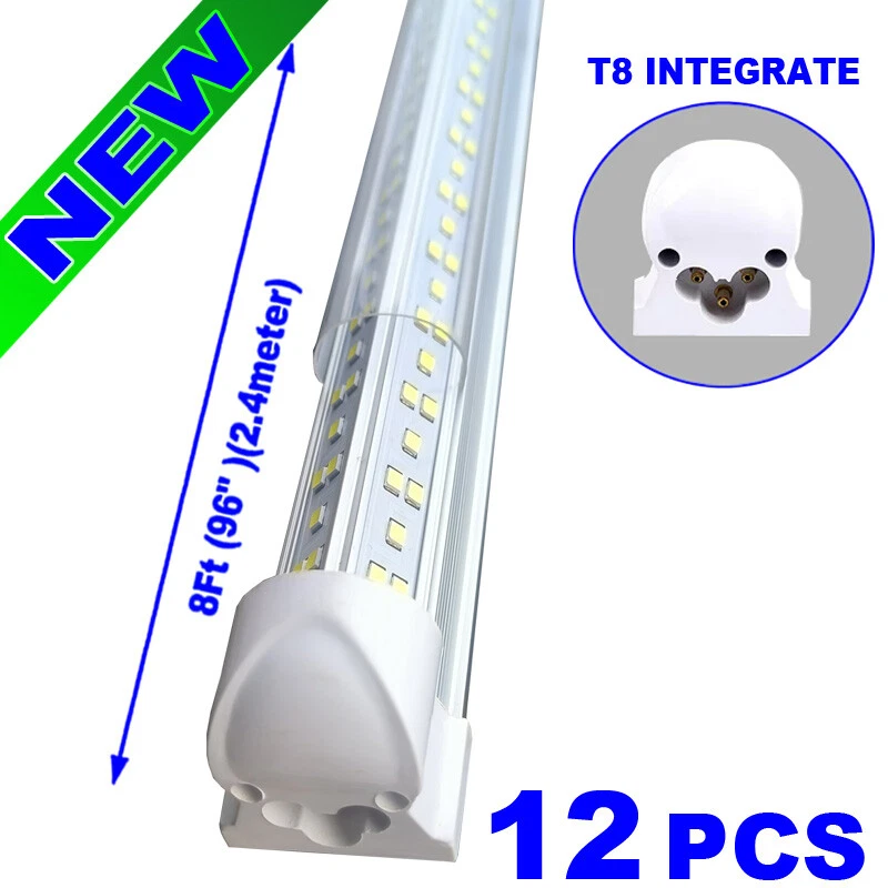 FAST DELIVERY - Ship from New Jersey or Los Angeles Warehouse via FedEx , 3-7 Days Delivered Your Door . SCIENTIFIC DESIGN - 8Ft LED Shop Lights Fixture is Made of 6500K Cold White SMD2835 LED Chip ,Plastic Clear Cover , Aluminum Bracket Housing ,and AC85-277V Constant Current Driver . It can work in -68F to 120F Temperature Conditions EASY INSTALLATION - The Integrated Tube Fixture Can be Install on Wall or Ceiling ,Easily Replace Traditional Fluorescent Tube Bulb . Plug and Play , Free Accessories (Power Cords, Connector , Extension Cords , Clip and Screw ) Come with Tube Lights Together WIDE APPLICATION - Linkable 8Ft Bulbs Widely Used in Garage Ceiling , Barbershop , Schools, Hospitals Basement , Factory Warehouses , Supermarkets Cooler Door , Offices, Shops,Hotels, etc 12/Pack 8ft LED Shop Light T8 144W Linkable Ceiling Tube Fixture Daylight 6500K FAST DELIVERY - Ship from New Jersey or Los Angeles Warehouse via FedEx , 3-7 Days Delivered Your Door . SCIENTIFIC DESIGN - 8Ft LED Shop Lights Fixture is Made of 6500K Cold White SMD2835 LED Chip ,Plastic Clear Cover , Aluminum Bracket Housing ,and AC85-277V Constant Current Driver . It can work in -68F to 120F Temperature Conditions EASY INSTALLATION - The Integrated Tube Fixture Can be Install on Wall or Ceiling ,Easily Replace Traditional Fluorescent Tube Bulb . Plug and Play , Free Accessories (Power Cords, Connector , Extension Cords , Clip and Screw ) Come with Tube Lights Together WIDE APPLICATION - Linkable 8Ft Bulbs Widely Used in Garage Ceiling , Barbershop , Schools, Hospitals Basement , Factory Warehouses , Supermarkets Cooler Door , Offices, Shops,Hotels, etc