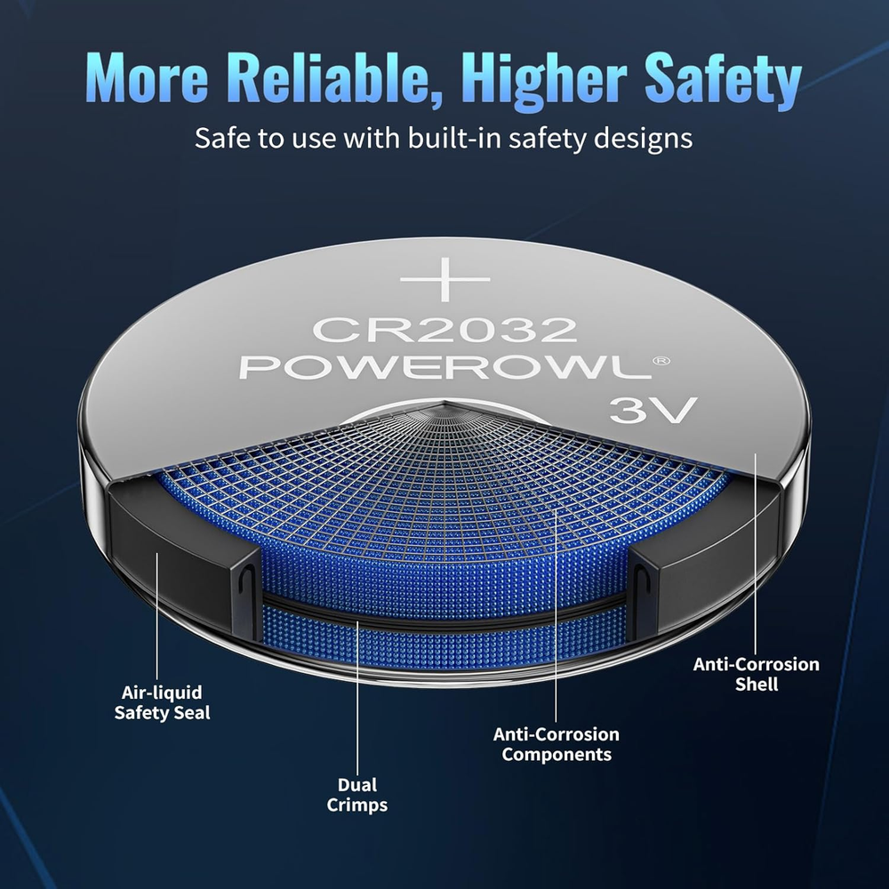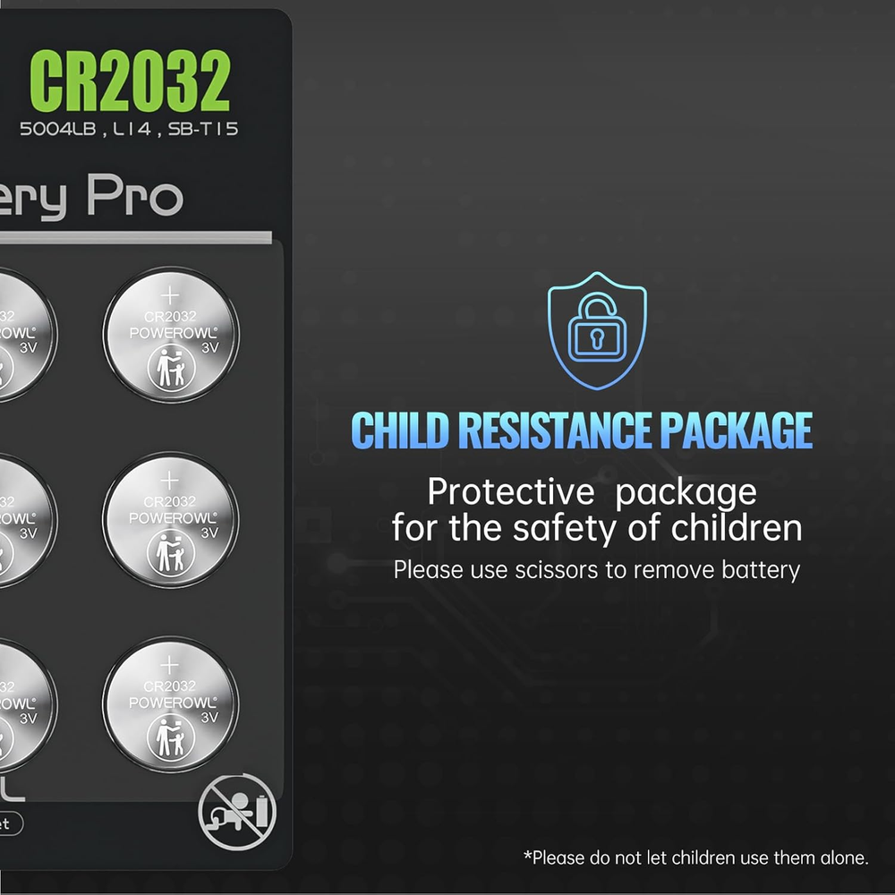 12X CR2032 3V Lithium Coin Round Batteries for Airtag, Key Fobs, Watches, Scales Compatible with Apple AirTag, key fobs, remotes, watches, scales, wearables, sensors, PDAs, garage openers, toys, LED lights, medical devices, and more. Applicable to CR2032, CR2032BP, DL2032, ECR2032, KCR2032, BR2032, LM2032, 5004LC, 5004LB, L14, SB-T15, EA2032C, KL2032, GPCR2032. Airtight seal keeps power locked in. 10% more power, 20% longer life. Safe, anti-corrosion materials. 12PCS Powerowl CR2032 batteries. Thank you for viewing our 12X CR2032 3V Lithium Coin Round Batteries for Airtag, Key Fobs, Watches, Scales.