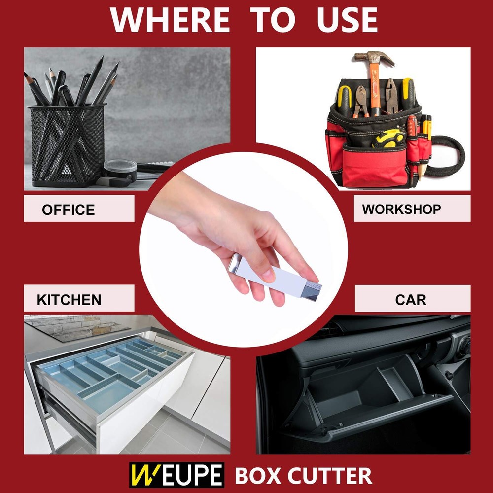Retractable Box Cutter, 12-Pack Metal Tap Knife Made in USA, Razor Blade Cardboard Opener, Lightweight Handy Utility Knife for Packages, Letters, Craft and Paper, Single Edge Razor Scraper GREAT QUALITY BOX CUTTER: Made in USA. Full metal, lightweight compact carton cutter. Thin and durable design creating a simple very useful utility cutter. Convenient and perfect well-made cutting tool in the office, home or warehouse. WHAT YOU GET: Packed 1 Dozen per box. Each box cutter with sharp carbon steel razor blades. Nice grip on the handle with the handy size. Use it also as a scraper. EASY TO USE & SAFETY BOX CUTTER: Tap open, tap close. Retractable and replaceable single edge razor blades provide safe use. Blades are easily replaceable and holds in place for easy and nice cutting ability. Each blade can be used from both sides for longer sharp use. Easily slips into pocket when not in use PERFECT FOR: Opening your gift packages during holiday or your moving boxes if you are moving. Opening your letters, envelopes or e-commerce packages. The blade is sharp enough removing packaging materials such as stretch wraps, tapes, shrink films, corrugated wraps and strapping. Great handy tool for warehouse or shipping departments, and laundry room for cutting tags and loose threads. It is also ideal for woodworking, carpentry, electrical repair, auto repair, crafting SATISFACTION GUARANTEED: You are protected with our 100% No Questions Asked Guarantee for either a replacement or refund. WELL BUILT BOX CUTTER Great box cutters for around the house, office or warehouse. These box cutters are super handy and easy to use. HOW TO USE: The "tap knife" wording comes from the act of holding the sleeve and just tapping the back on something sturdy to expose the blade. Then tap the flat part of the blade holder to close the knife SHIPPING Domestic Buyers - We ship within 3 business days of payment, usually sooner - We offer FREE shipping on all orders! - We only ship to the lower 48 states, no APO/FPO addresses or PO Boxes allowed - We have confidence in our products, but if you are not fully satisfied please contact us within 30 days of purchase and you will get full refund. International buyers – please note: Import duties, taxes, and charges aren't included in the item price or postage cost. These charges are the buyer's responsibility. - Please check with your country's customs office to determine what these additional costs will be prior to bidding or buying. Return Policy - This product comes with 30-Days Money Back Guarantee. - If you receive an item and it doesn't work properly or you don't like it because of any reason at all, - we have a 100% refund/return policy. We will ship you a new item or refund your money for the full sale amount. - For all returned products, buyers MUST contact us for the returning address. * Order Cancellation Policy ** You can return a product for up to 30 days from the date you purchased it. 1. The seller reserves the right to cancel the special case only due to eBay cancellation fee. 2. The decision of seller is the final. 3. The seller will respond to the cancellation request within 2 business days. Please wait for the result of cancellation. 4. In case the cancellation is not completed by some reasons, the buyer can follow the options below to get the refund. 4.1 The buyer can reject the item when it arrives. 4.2 The buyer can send the item back to the seller within 30 days If the buyer receives item (USA Shipment ONLY). The seller will provide the FREE return label to the buyer when the buyer opens " Return Item" case on eBay by using the reason as "Change my mind" ONLY. 5. When buyer has placed the order. The order will be processed and completed by automatic warehouse system within 5 minutes. In case that buyer sends the cancellation request after 5 minutes of placing the order, the request will be rejected. **Sending direct message to cancel the order is not allowed for every case.* Return Policy For the return case - If buyer would like to return the items for refund or replacement, please CONTACT SELLER to receive the free return label from seller. The refund or replacement will be processed with the tracking number of return label which is provided by seller only. The other ways of return which are not approved by seller will not be processed for the refund or replacement.